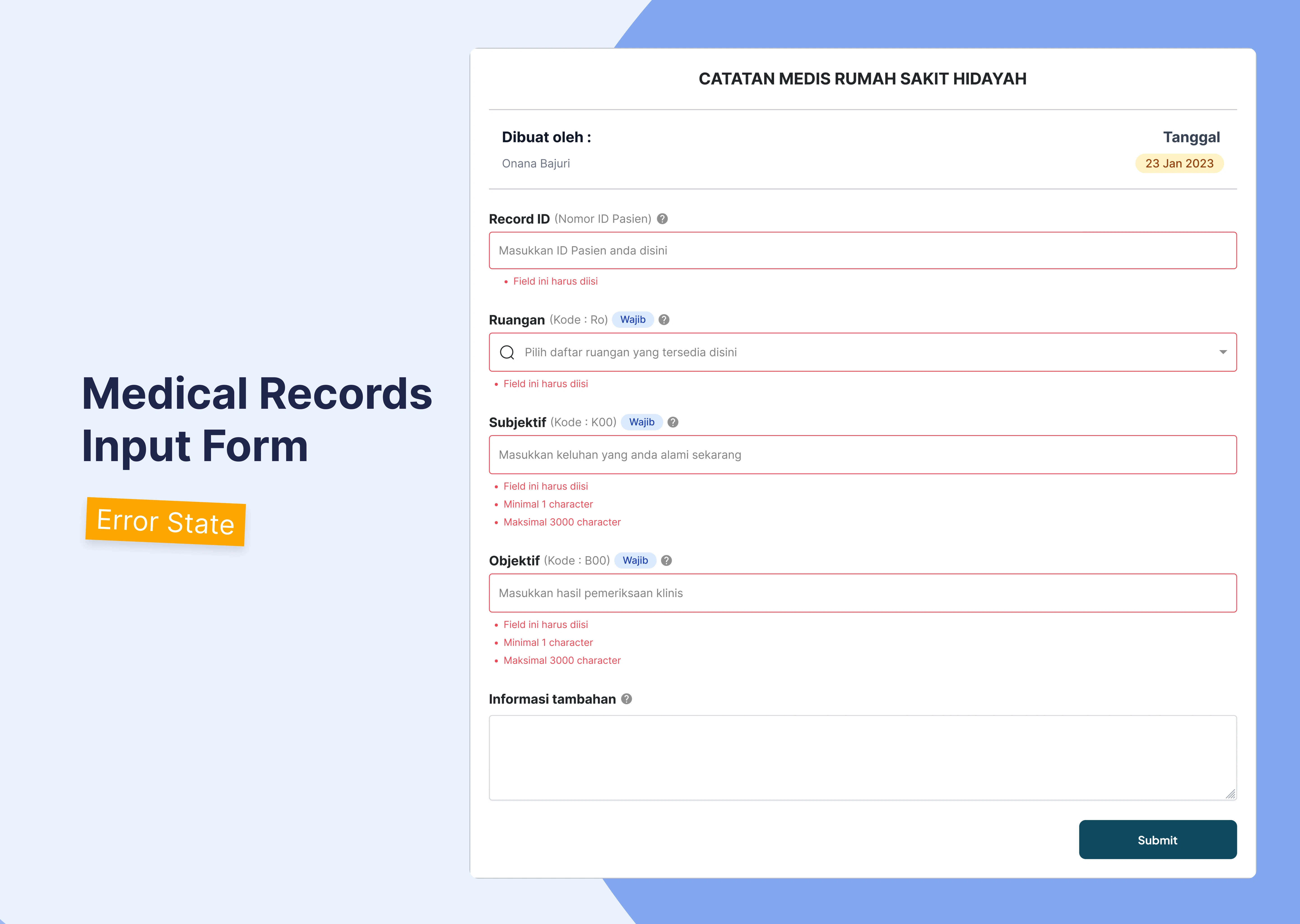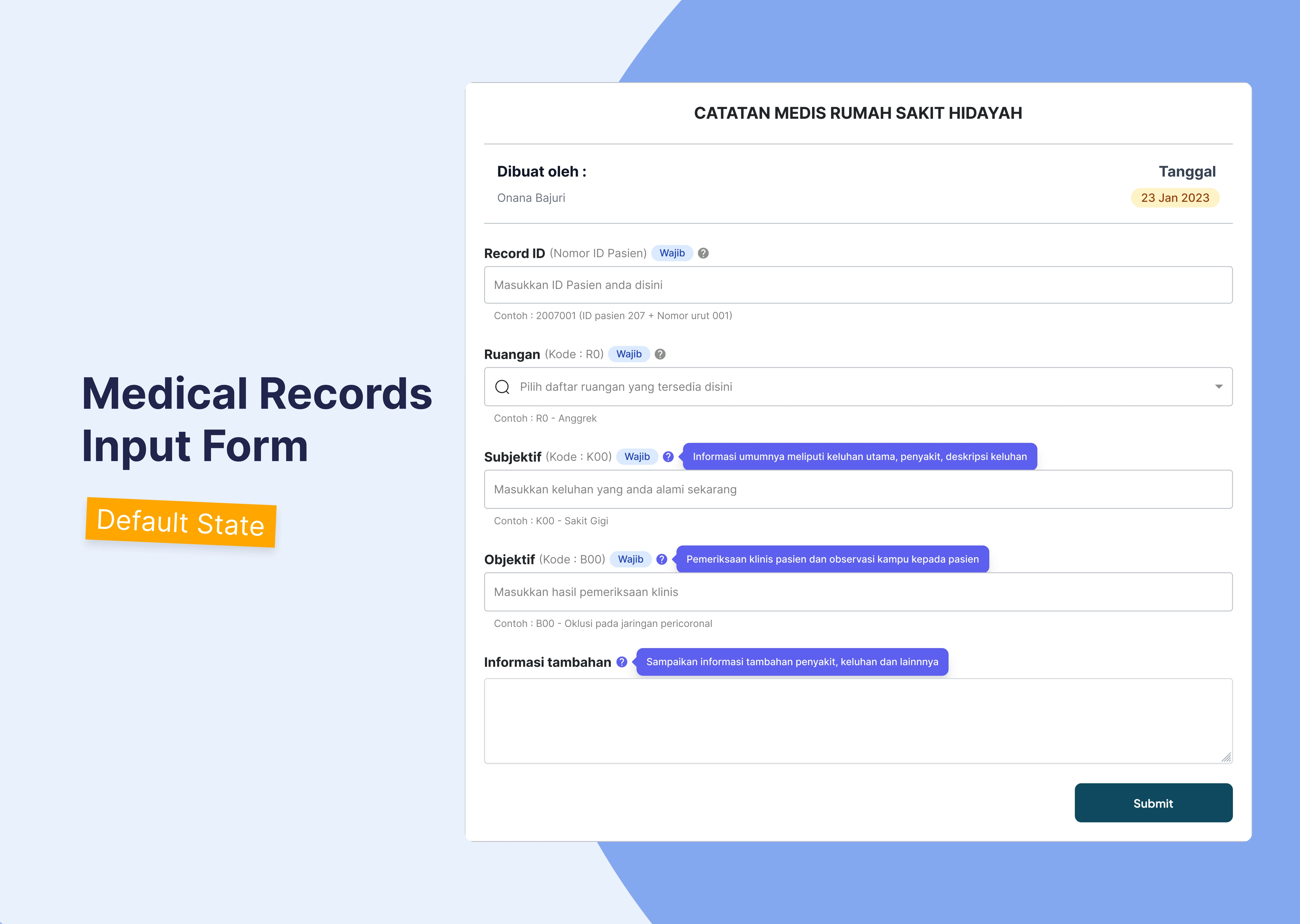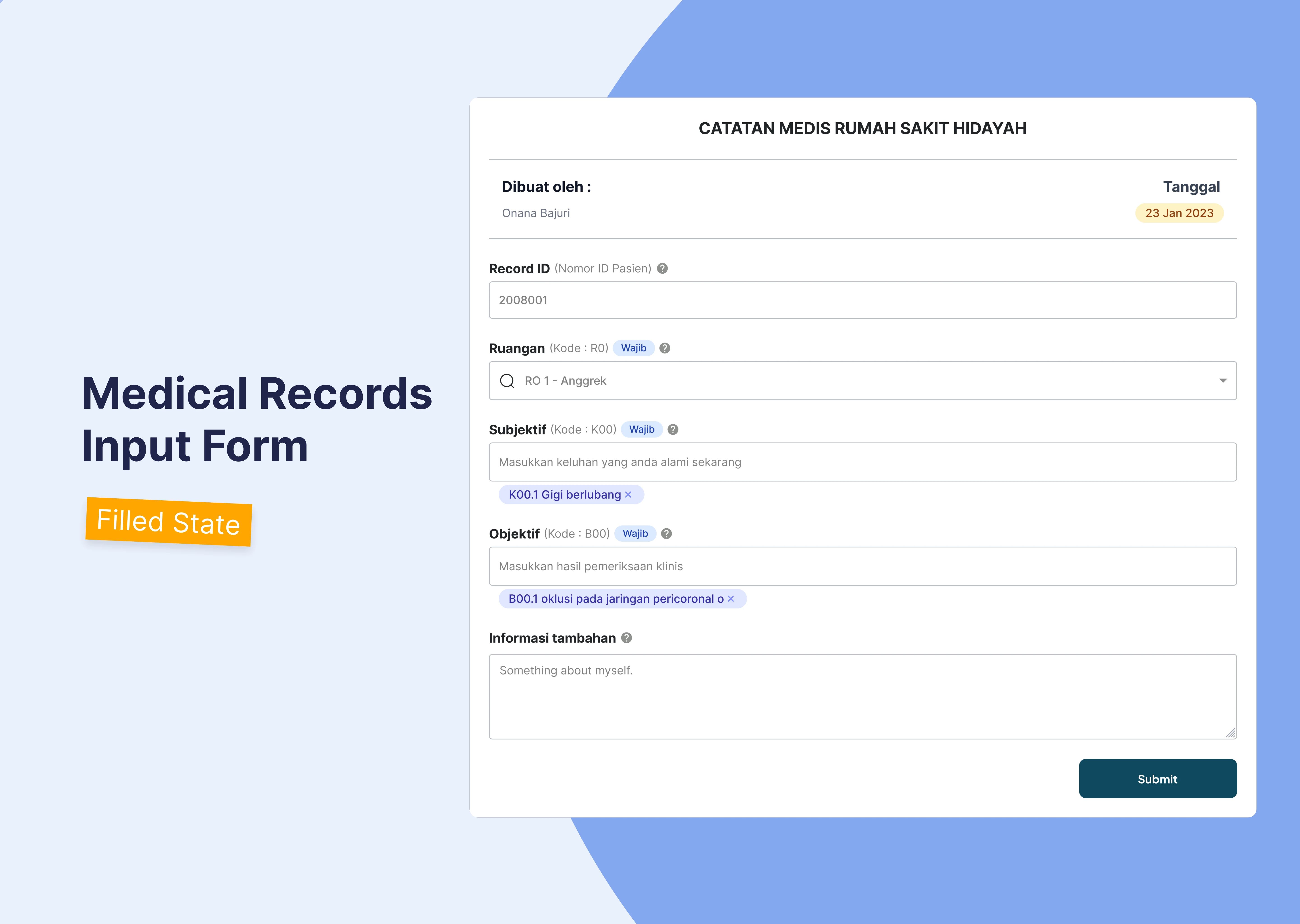 Medical Records | Input Form is a part of the medical record system designed to collect, store, and manage patient health information.