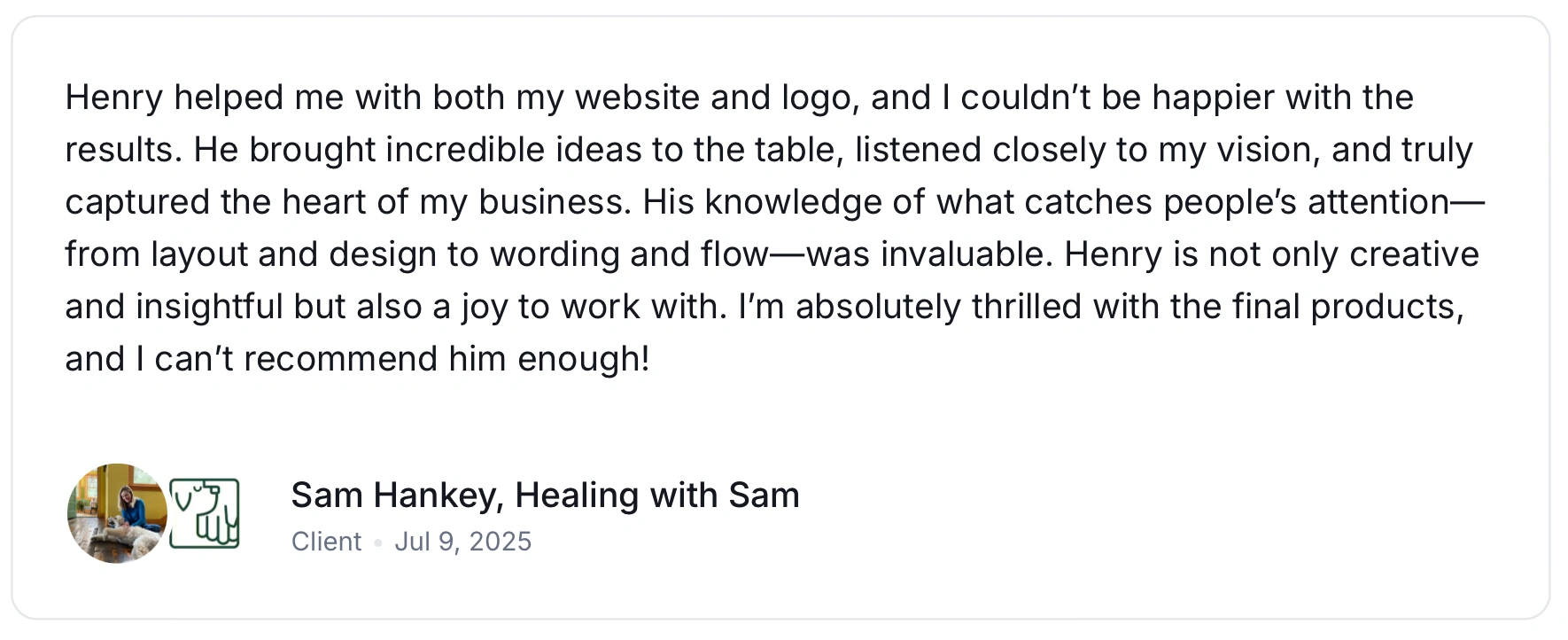 After designing the Healing with Sam logo, the next step was to design and launch her branded Squarespace Website. The page layouts for this brochure website were created in Figma and then developed using Squarespace. Each page was designed to be responsive, ensuring optimal performance across desktop and mobile devices.