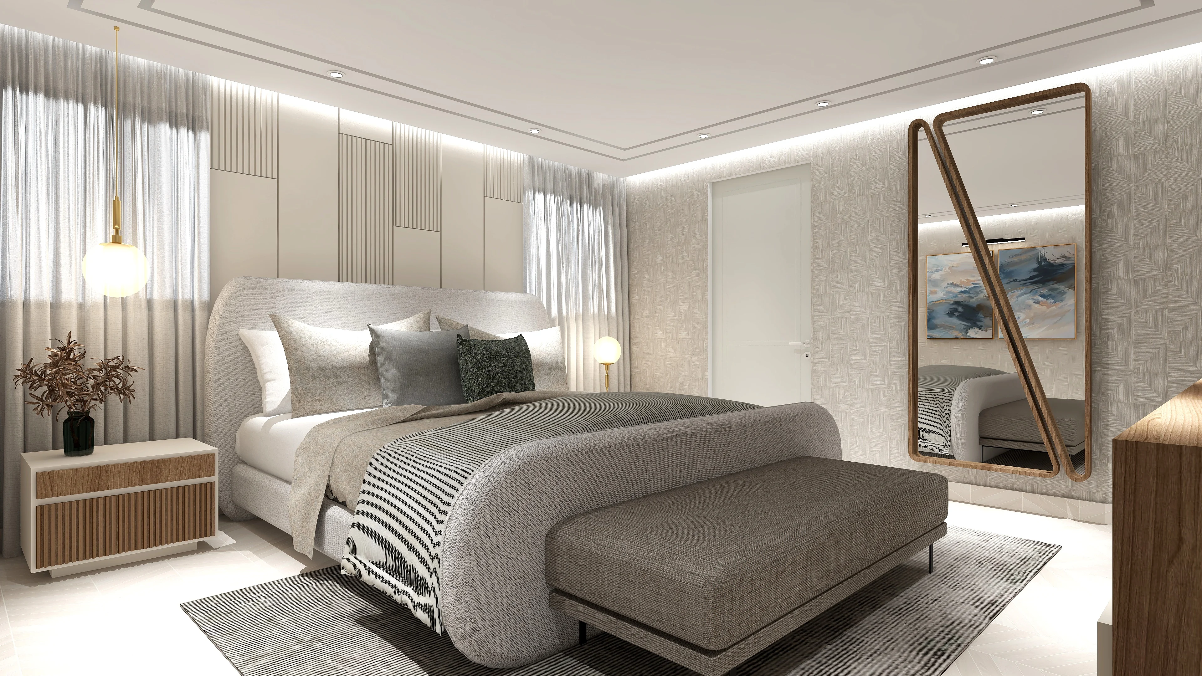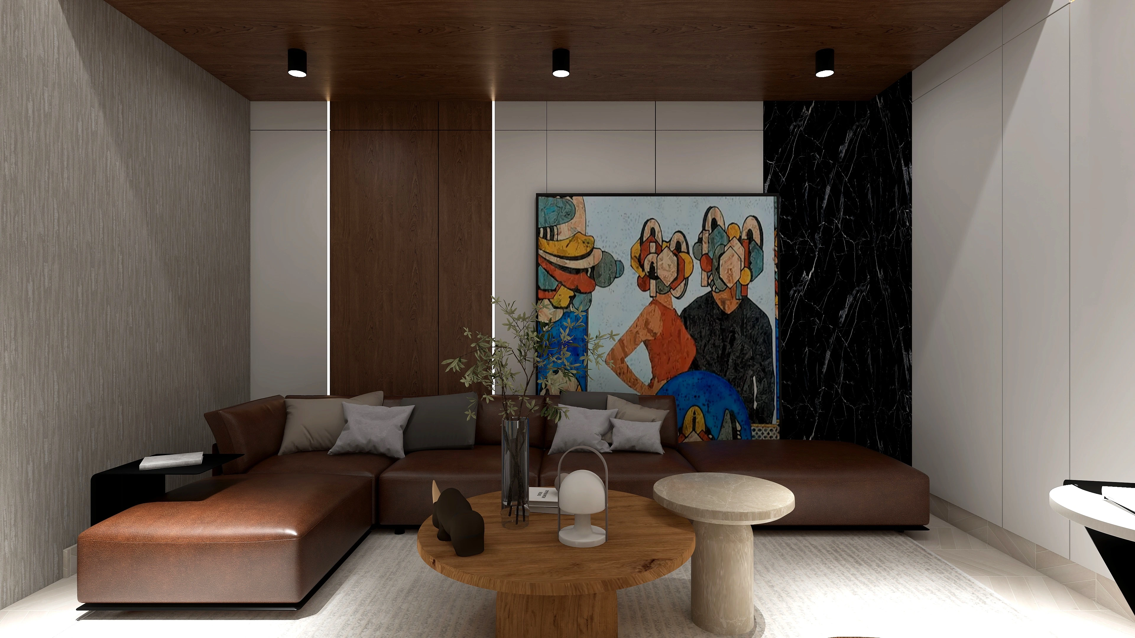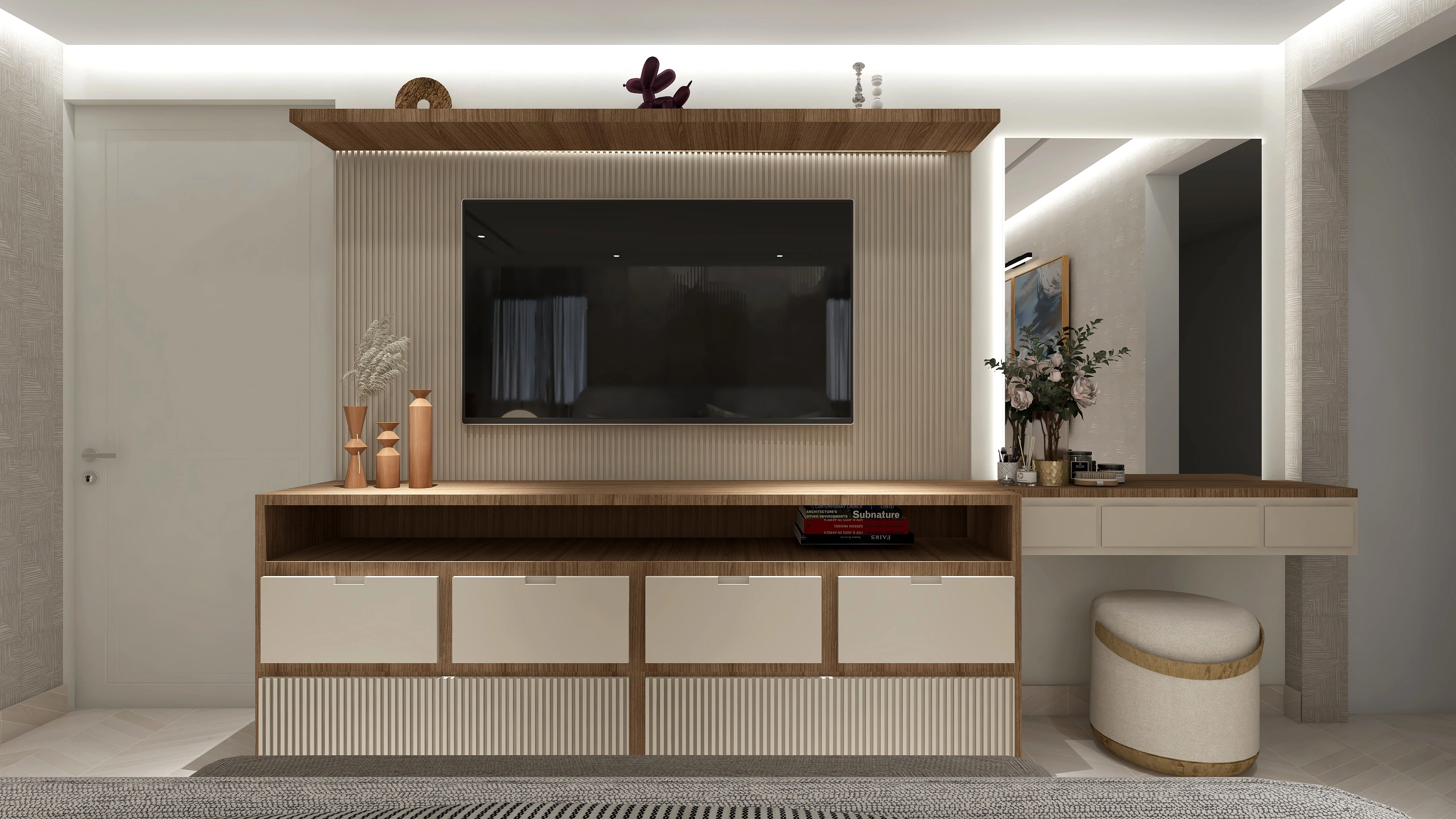 En este apartamento que se trabajó en varias áreas especificas, se queria recrear un espacio limpio y adaptado para un joven. El uso de materiales como madera, vidrio y mármol son muy resltadas y el uso de tonos prolijos y oscuros también. Las demás areas del video fueron trabajadas con la colaboración de otras diseñadoras.