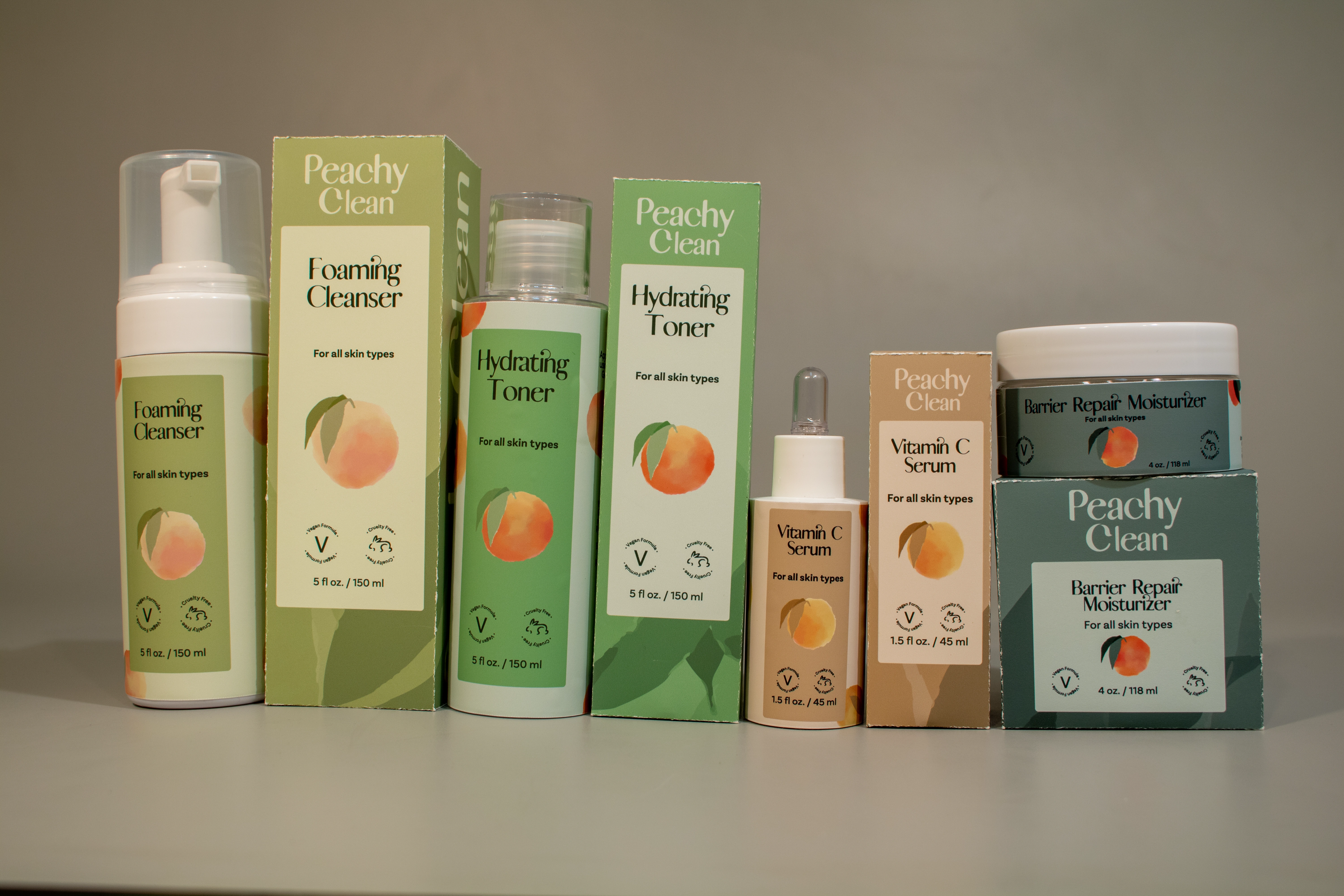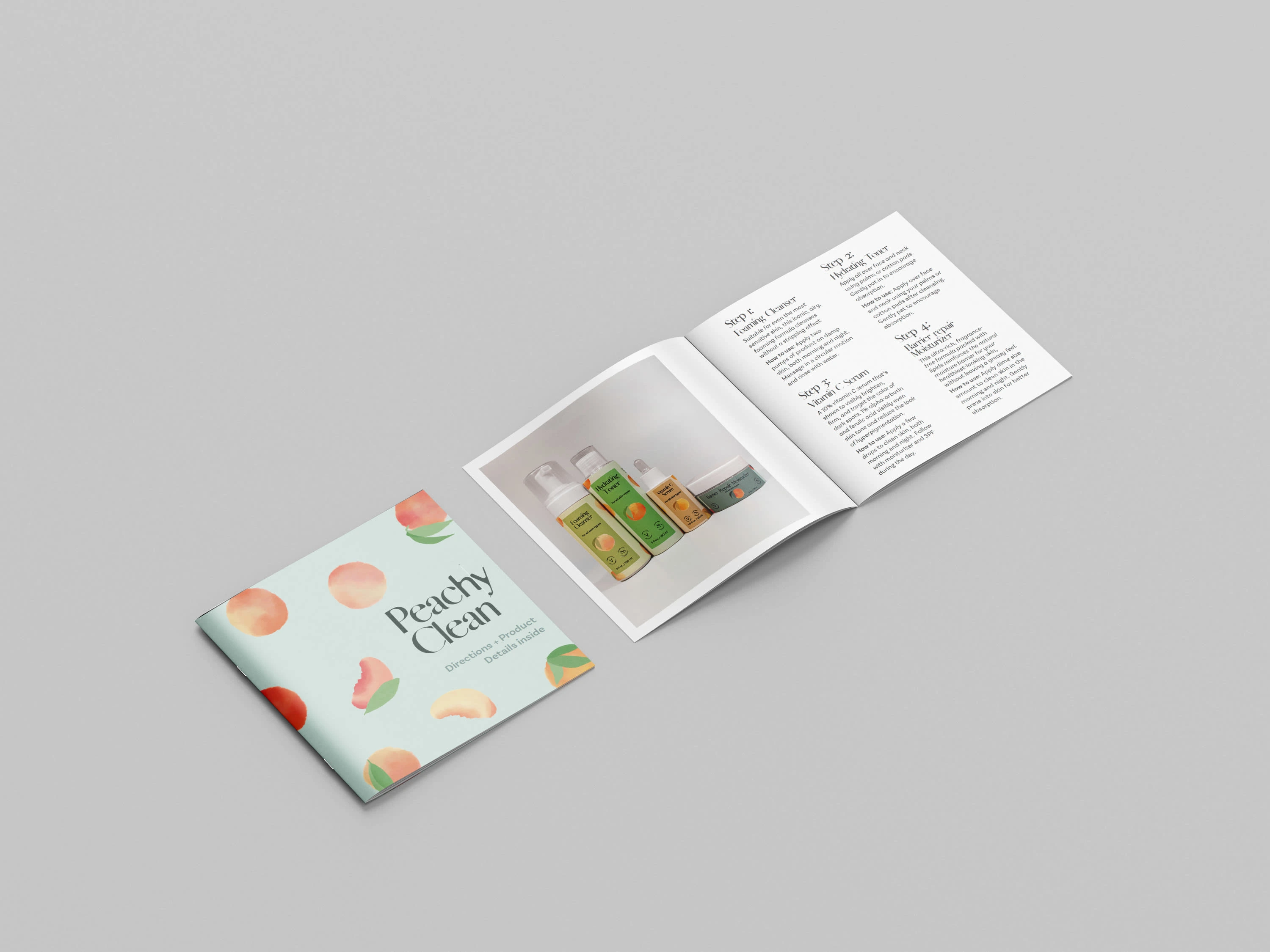 I conceptualized a fictional skincare brand: name, logo, colors, and theme. Designed labels, boxes, booklets, and posters for it.