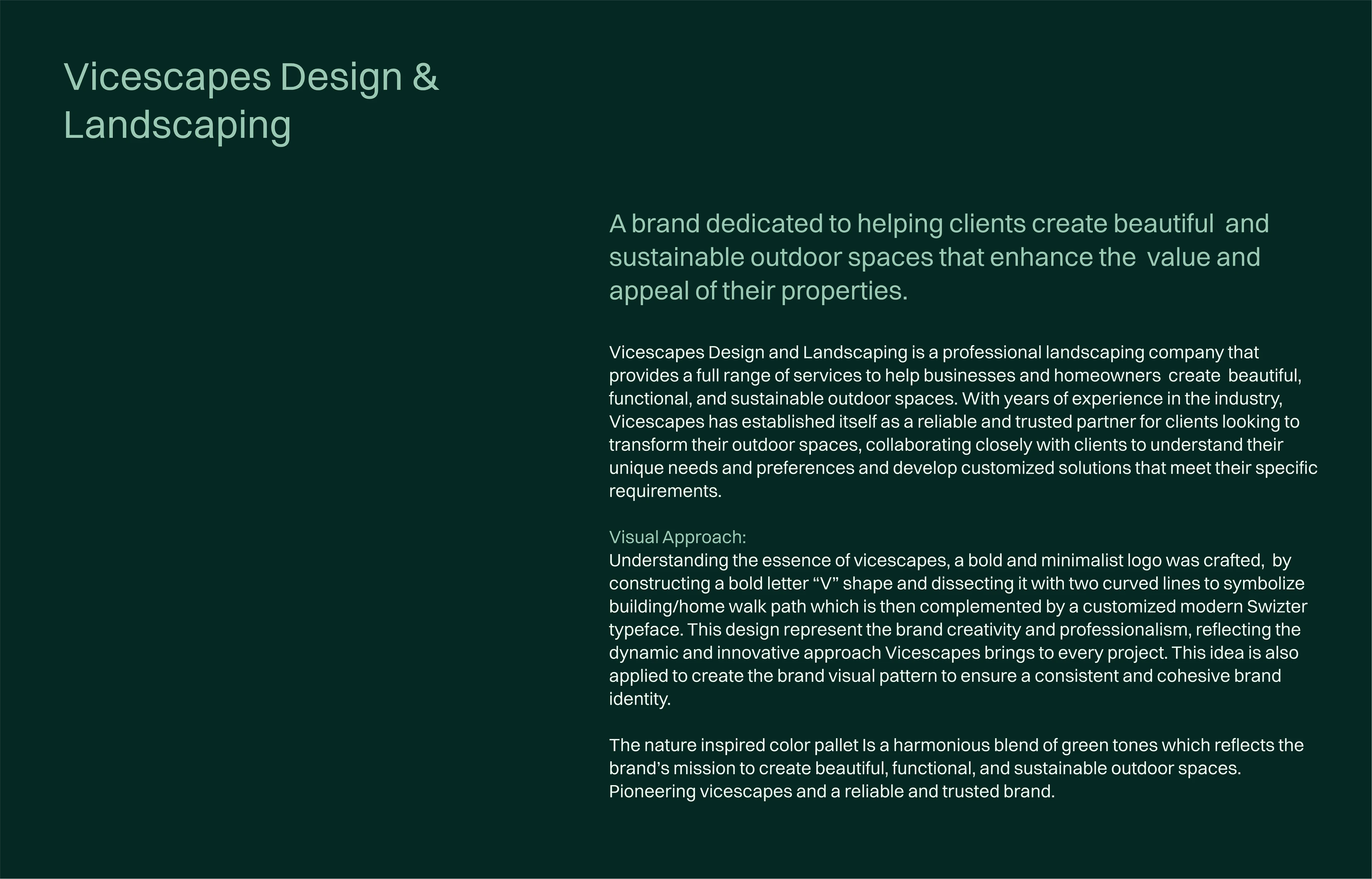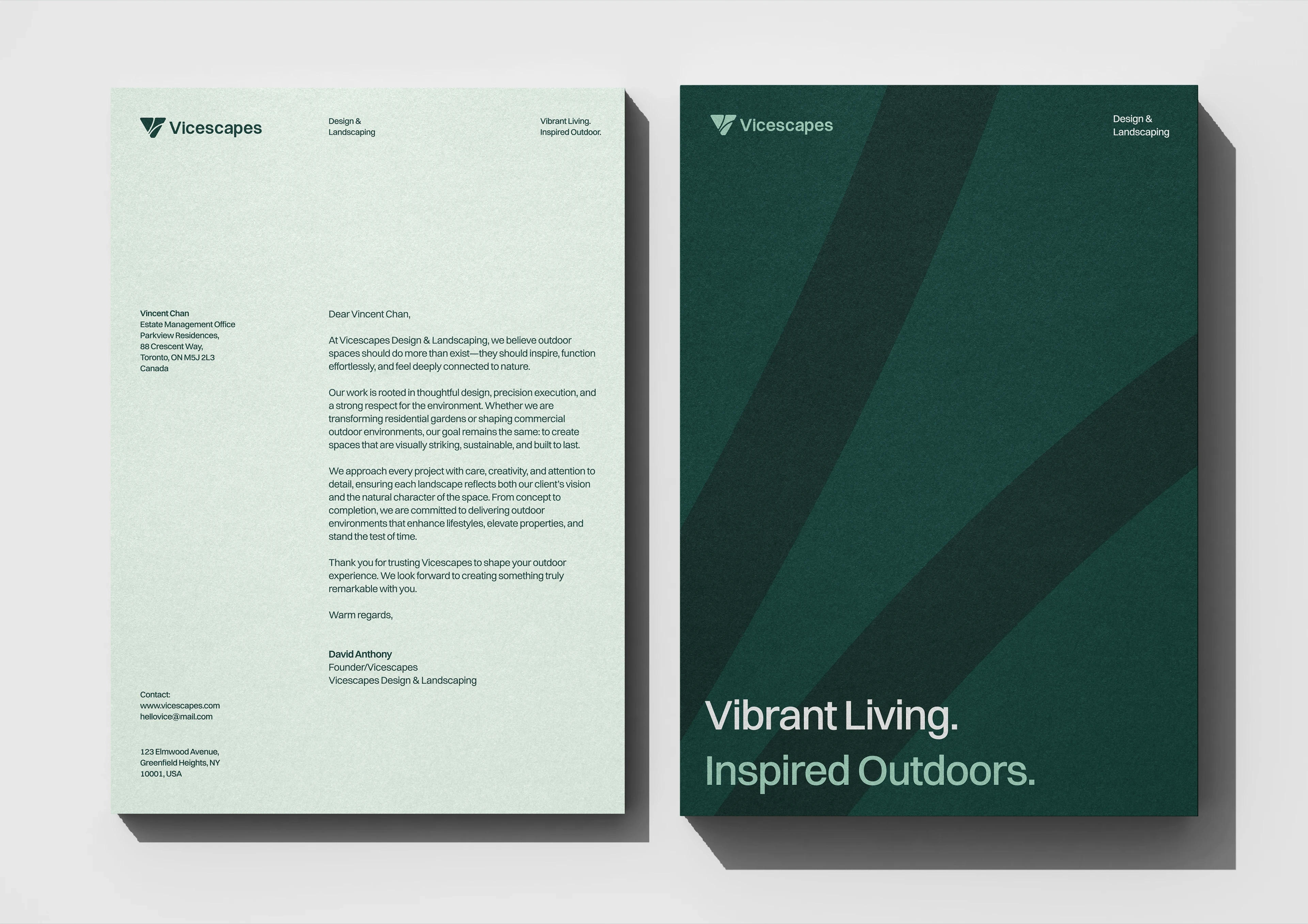 We developed a cohesive visual identity that speaks to their audience, positioning Vicescapes as a professional and trustworthy partner.