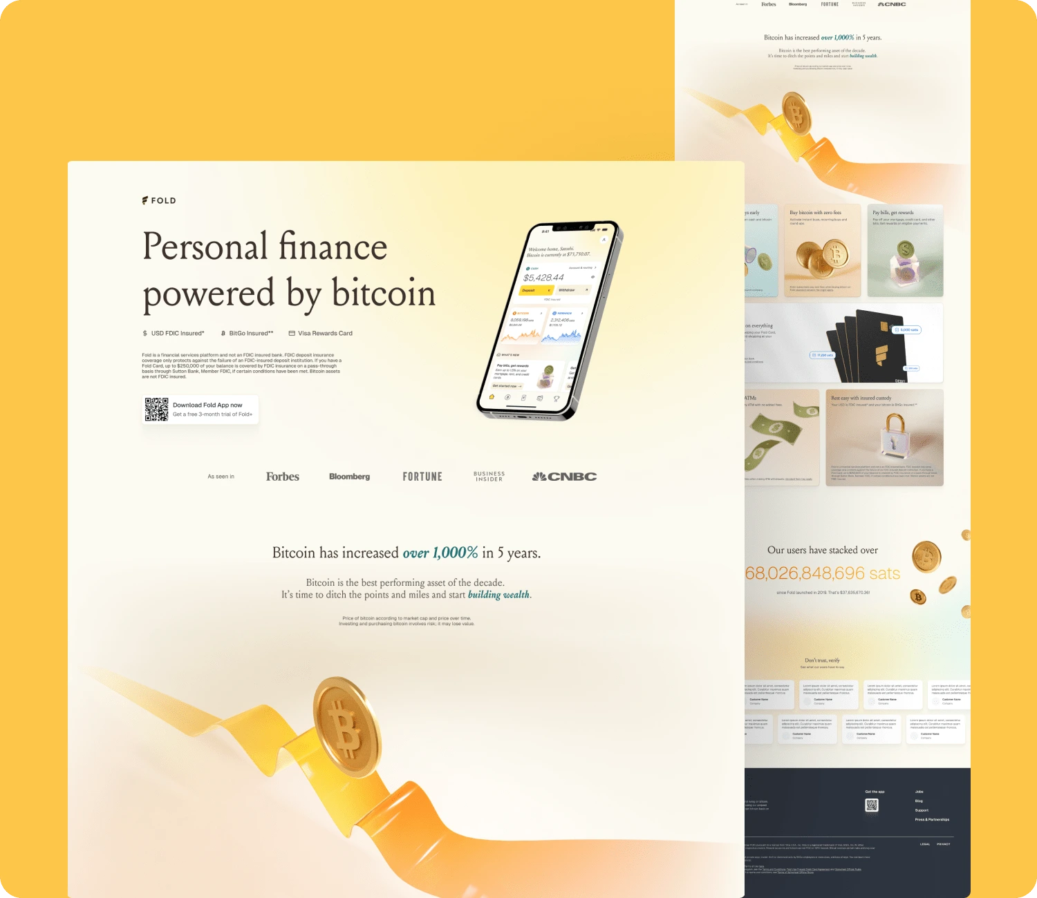 Redesigned landing page for Fold! ($16.3M raised) Fold is a leading financial platform where users can earn bitcoin back