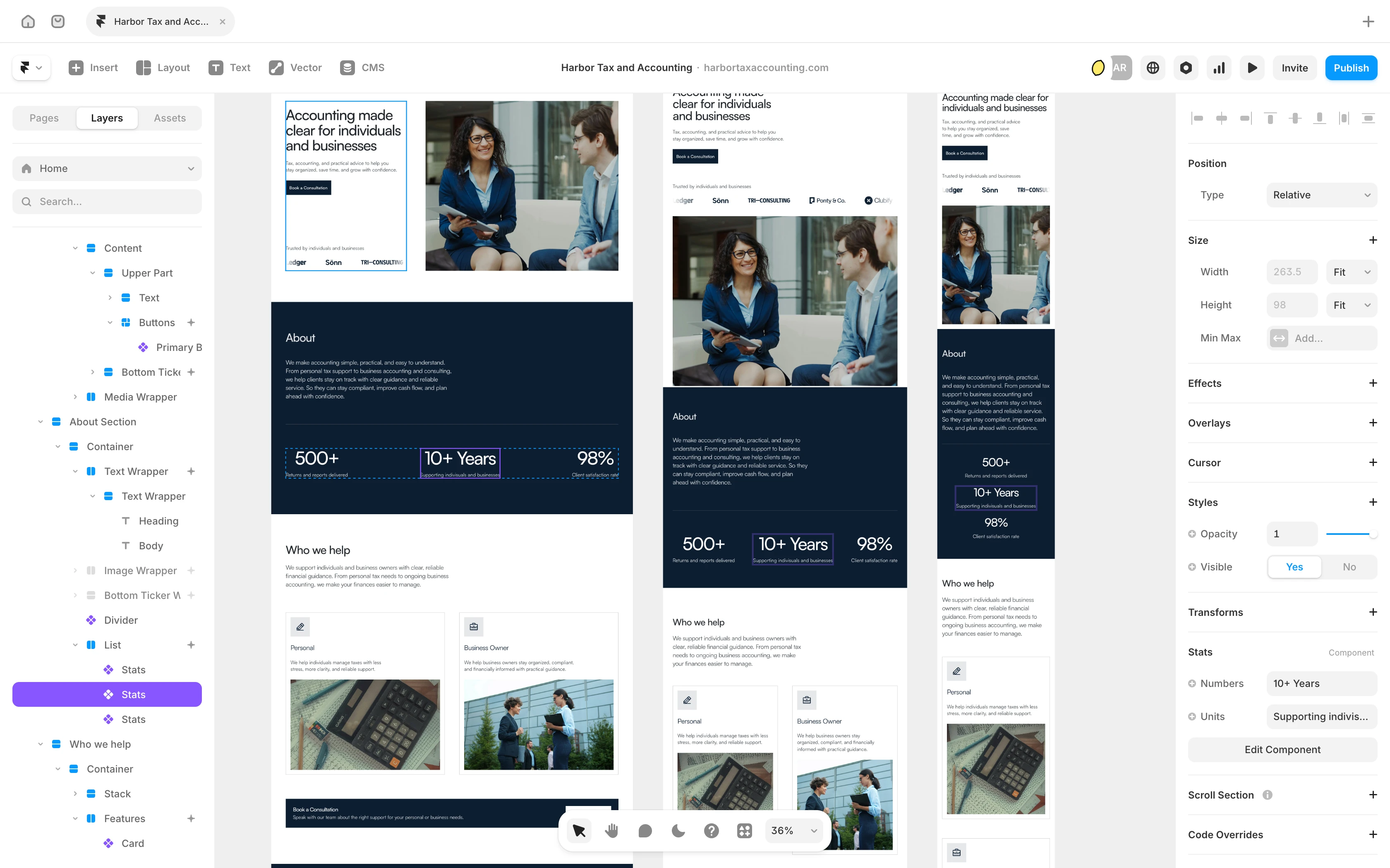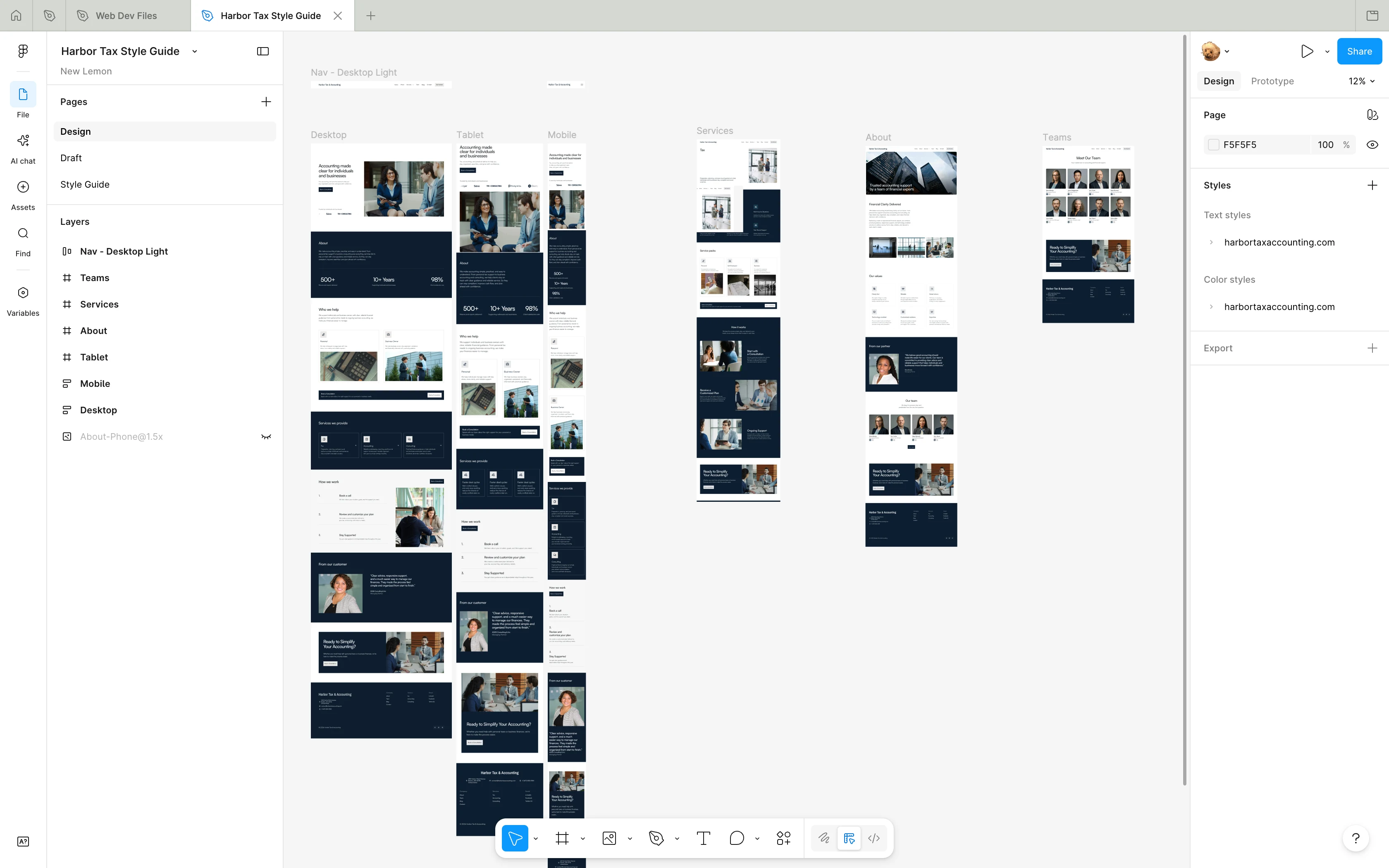 The full website was designed in Figma with a modular system to maintain consistency across pages and breakpoints.