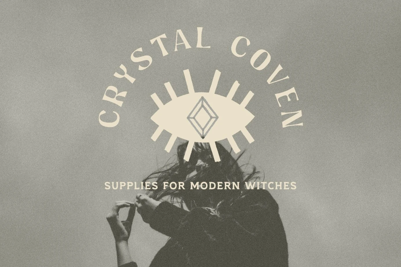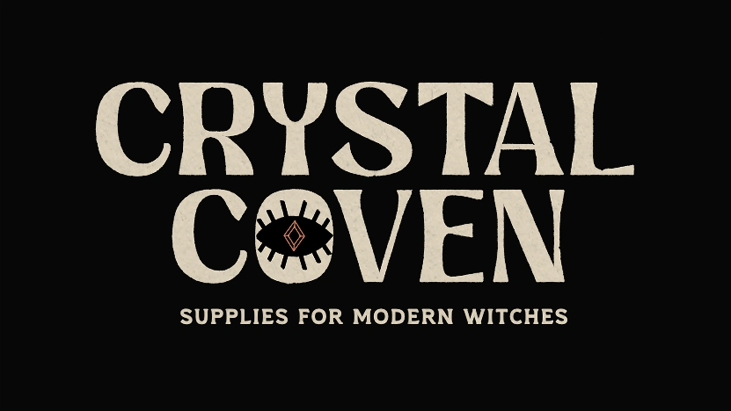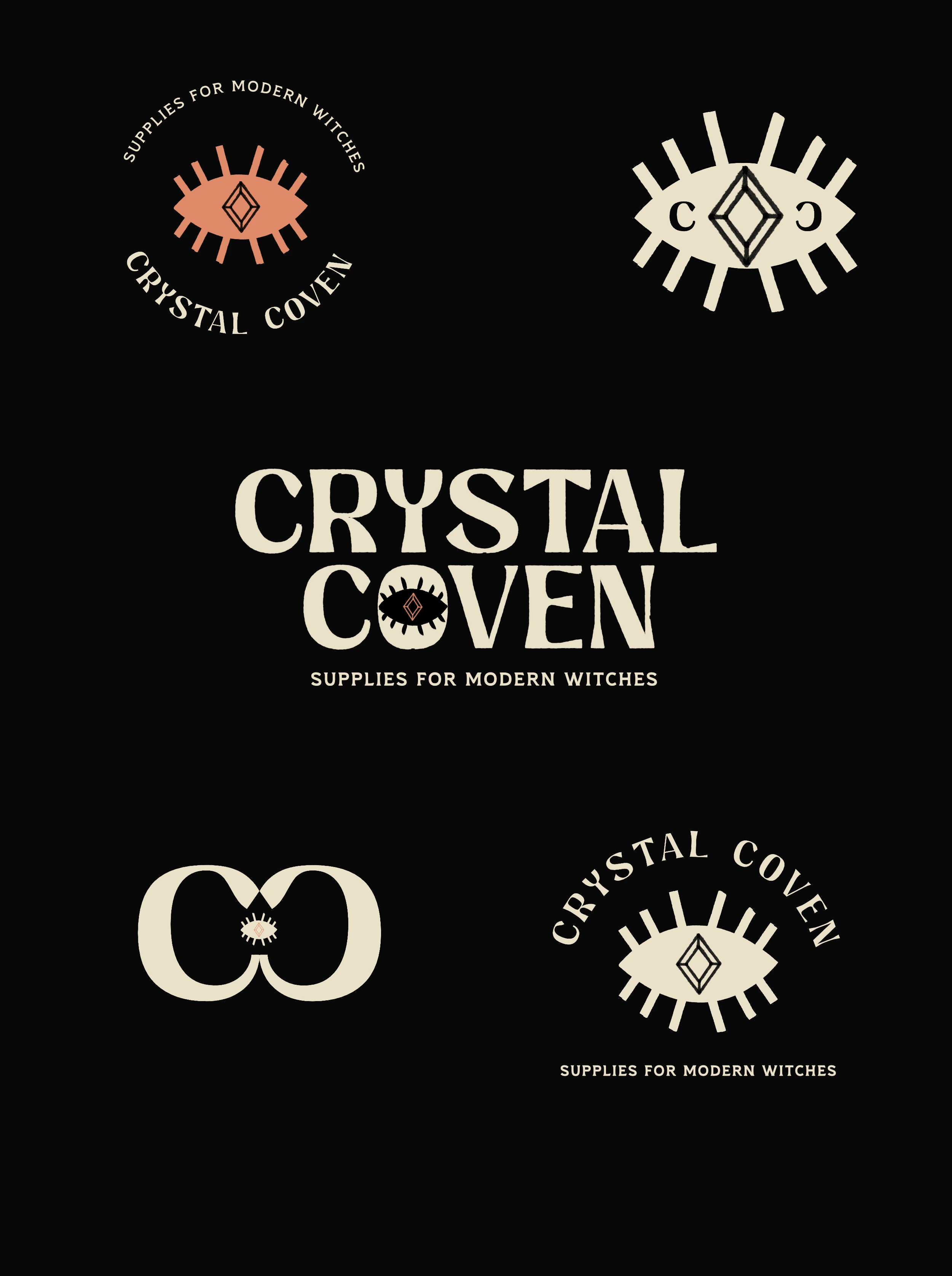 The main logo is based on vintage book covers, evoking the idea of a grimoire or spellbook. The eye is based on the evil eye talisman made to protect the wearer against any evil directed at them.