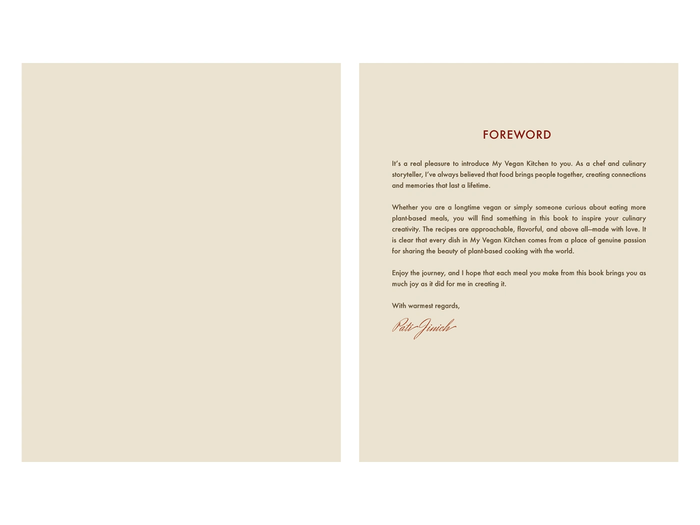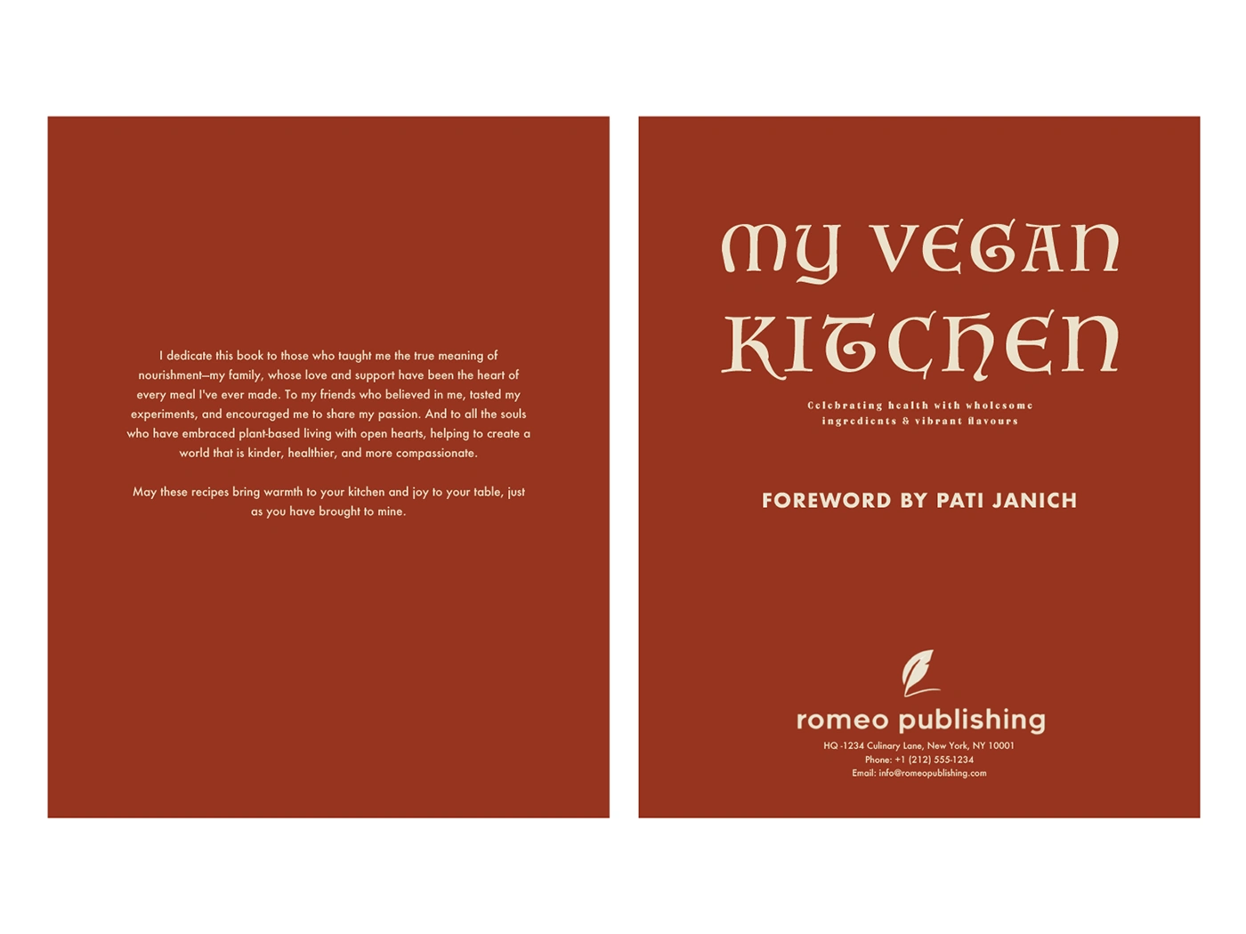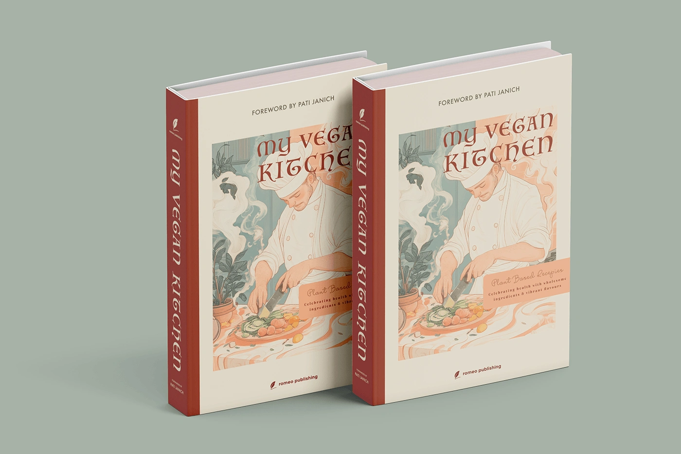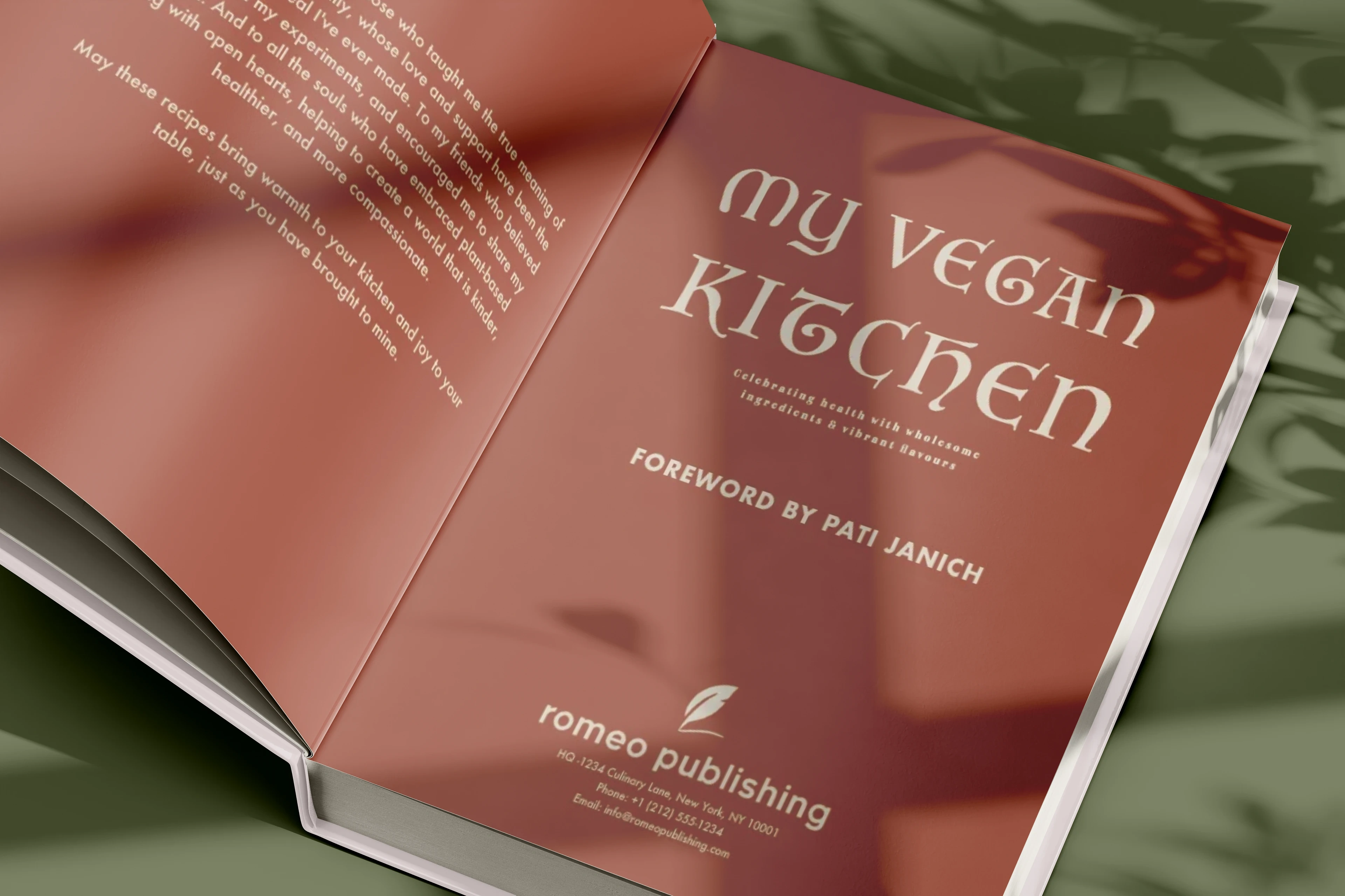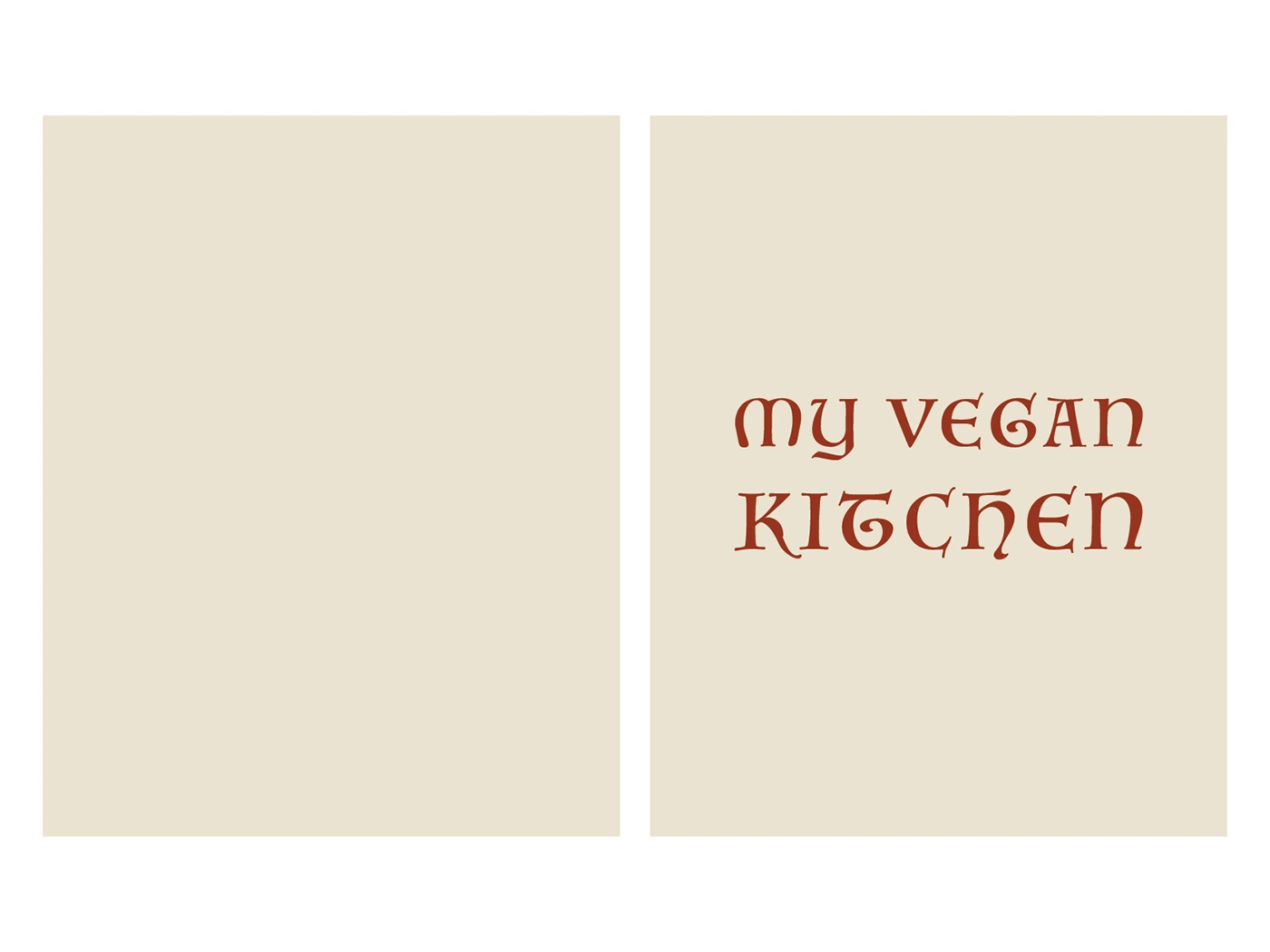 Editorial design for My Vegan Kitchen, a cookbook featuring clean layouts, warm visuals & easy typography for a fresh, modern and appetising reading experience.