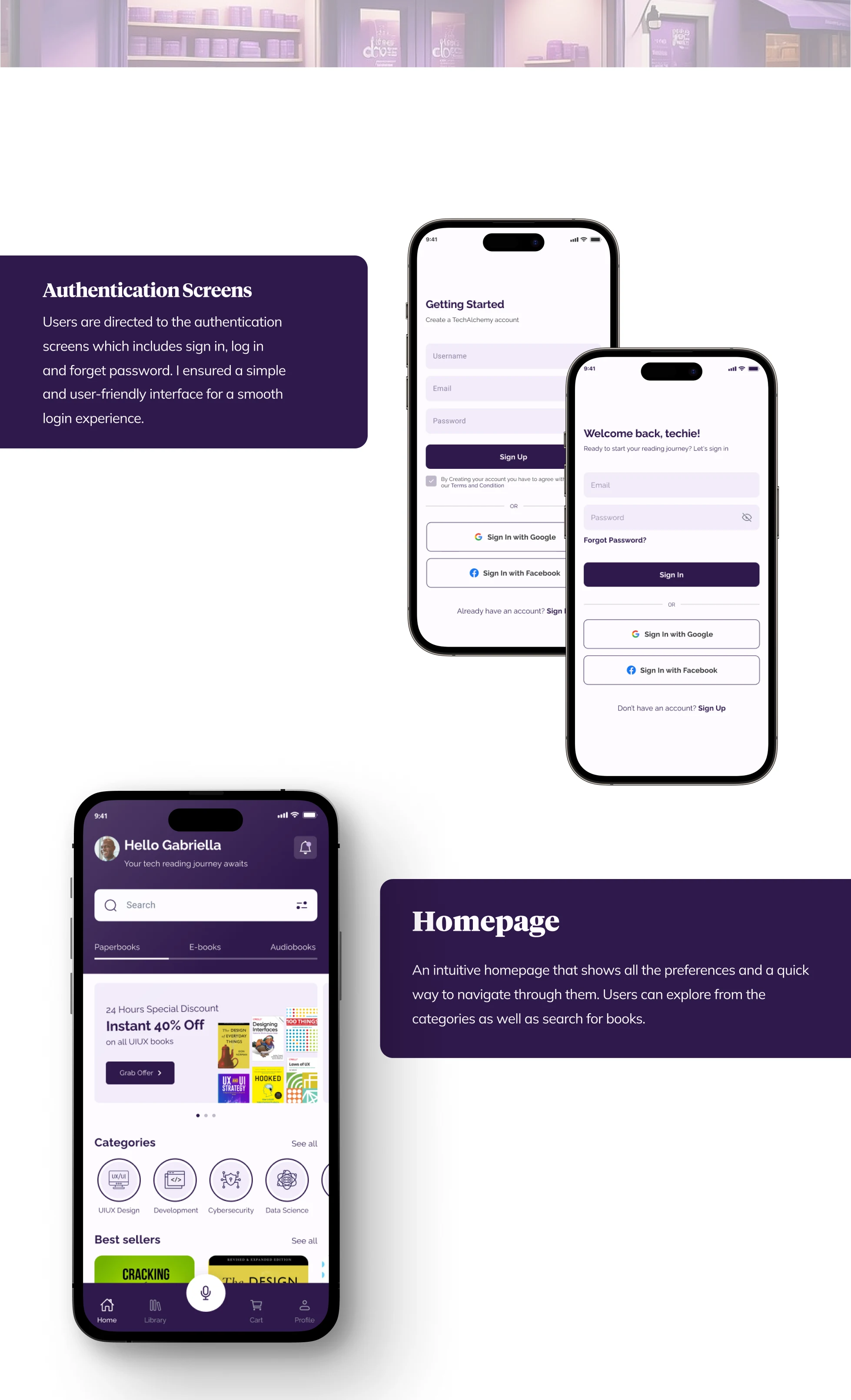 My design challenge: Create a mobile app that makes tech books accessible, engaging, and modern with features that go beyond basic e-commerce.