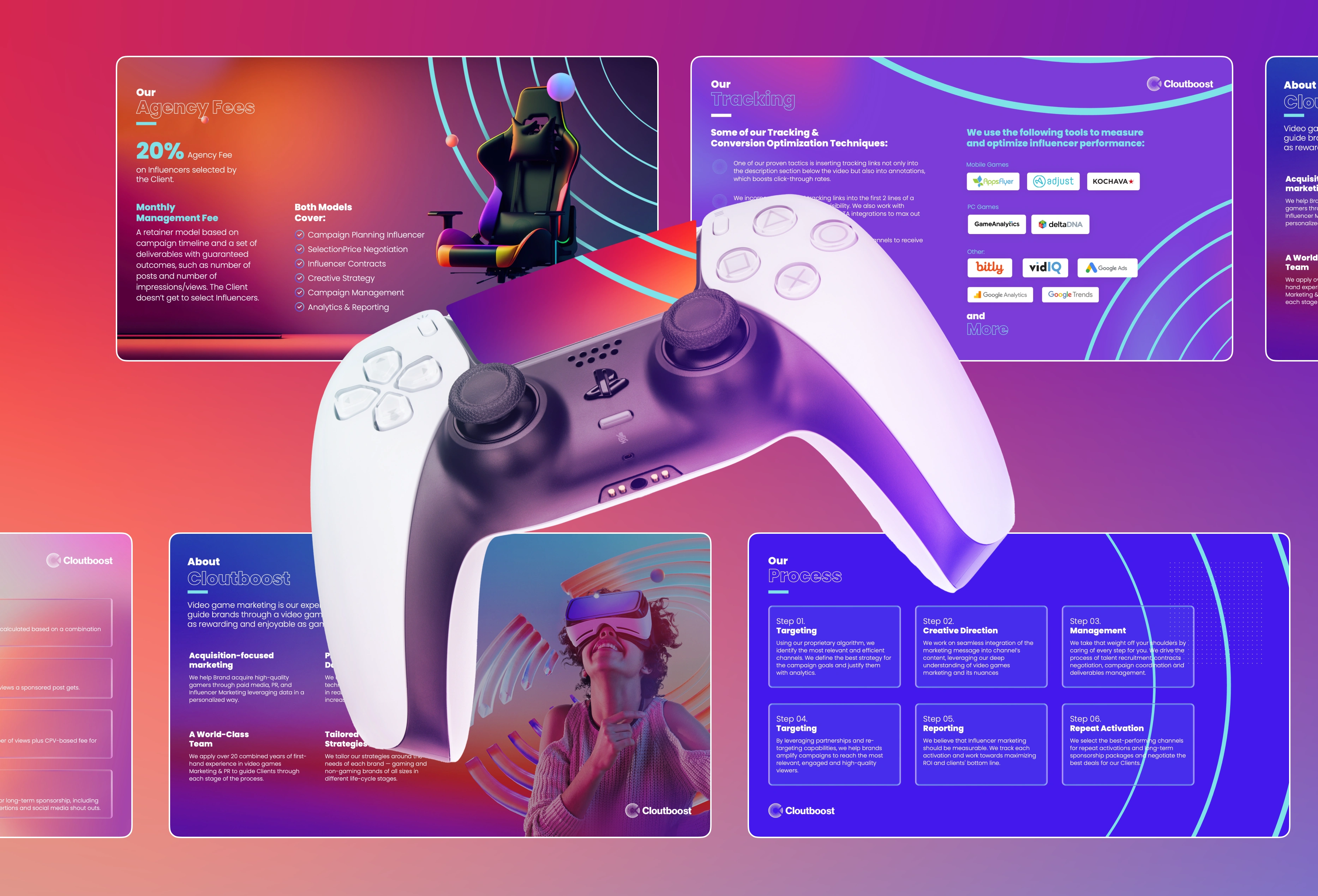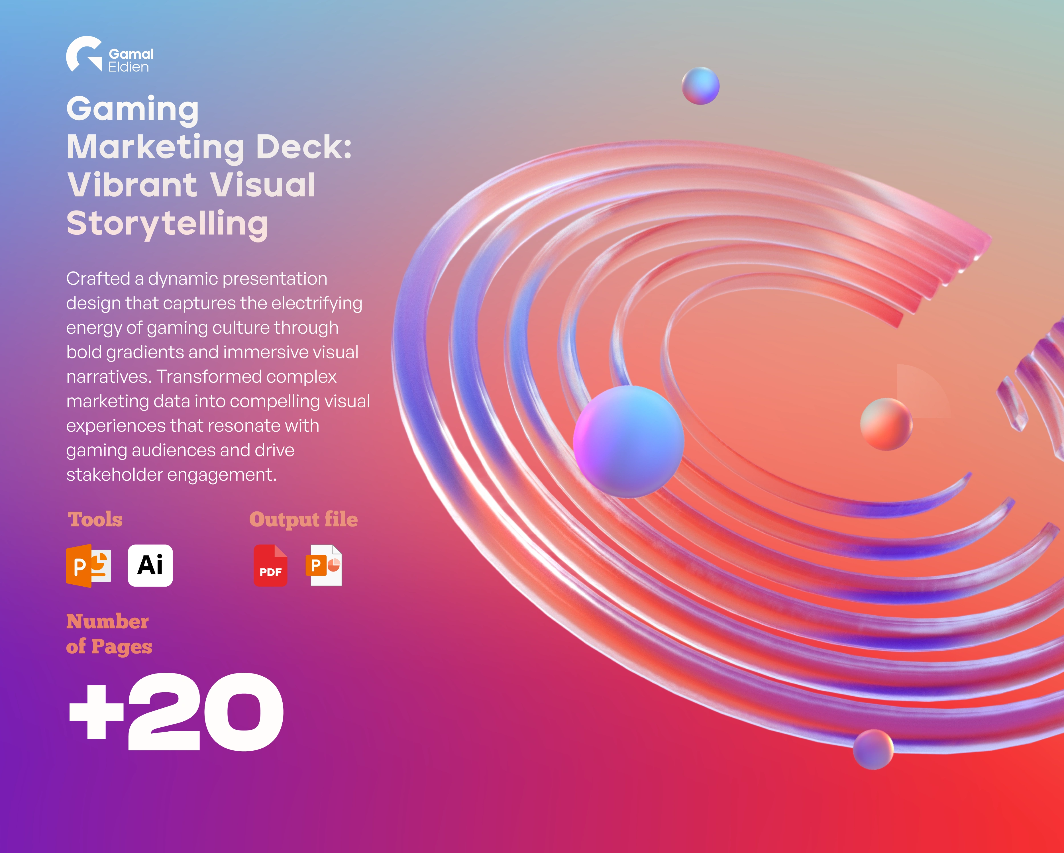 Gaming Marketing Deck: Vibrant visual storytelling with bold gradients and immersive narratives that transform data into compelling gaming experiences.