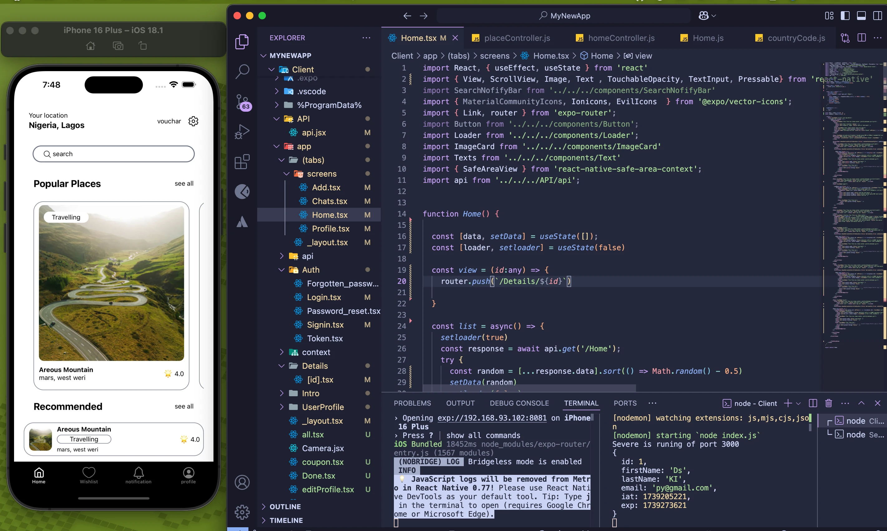 I built this Travel Booking Mobile Application as a personal project to improve my skills in React Native, Node.js, and PostgreSQL.