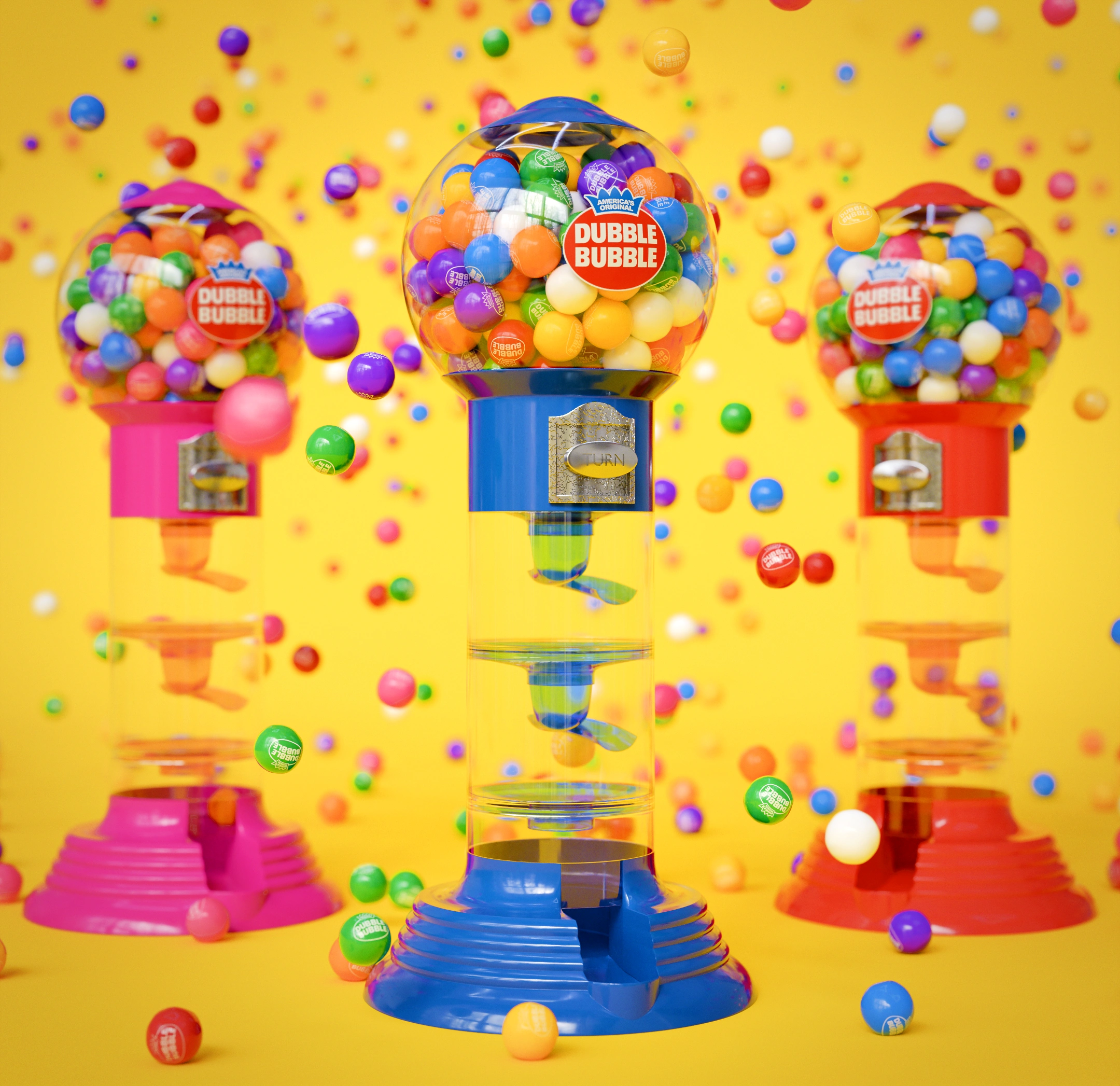 Achieved a highly photorealistic 3D model of a Dubble Bubble gumball machine for marketing, meticulously modeled, textured, and rendered from reference.