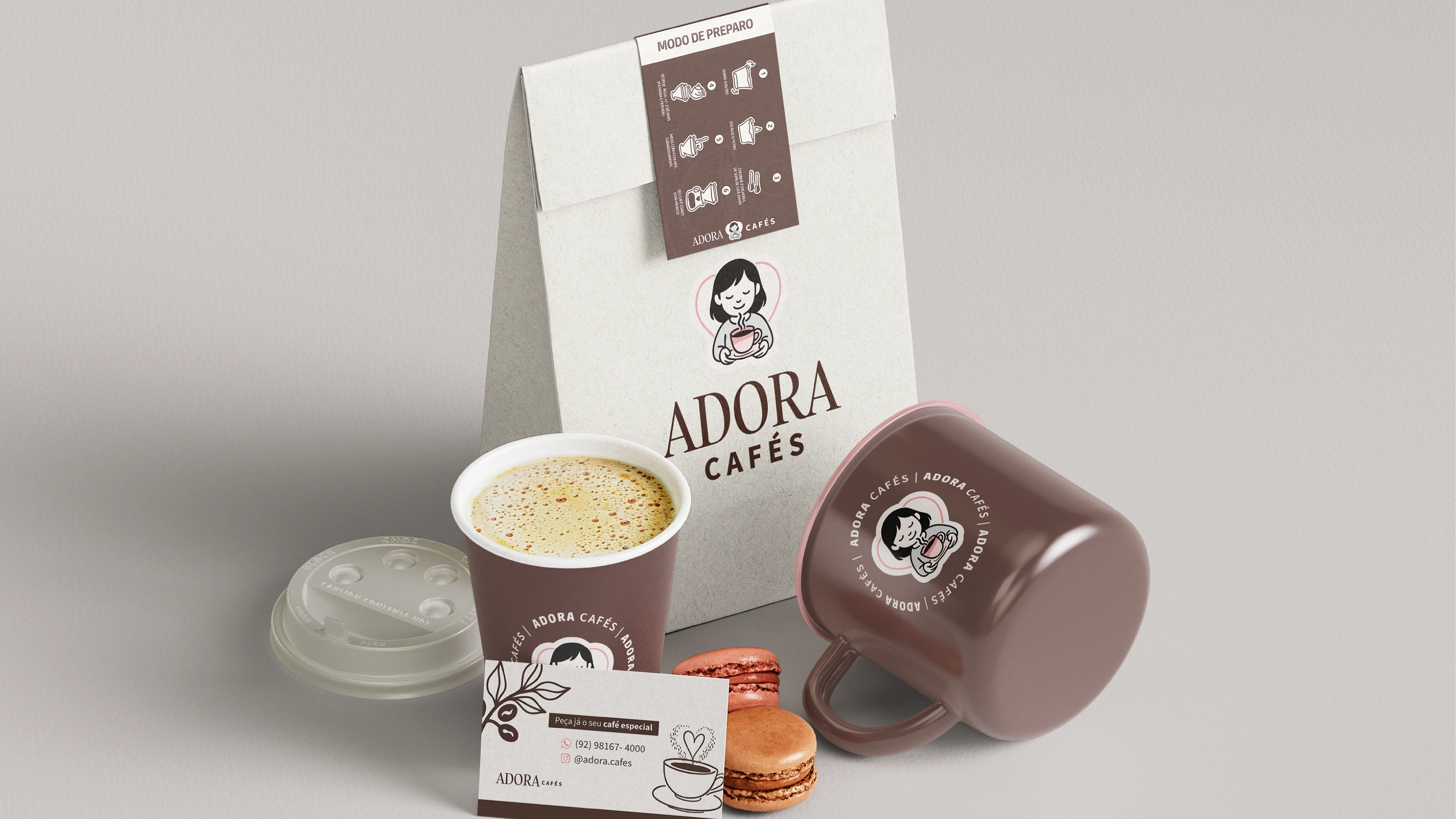 Adora Cafés visual identity was carefully crafted to reflect the essence of the brand: a sensory experience that inspires, and awakens. A truly Brazilian brand.
