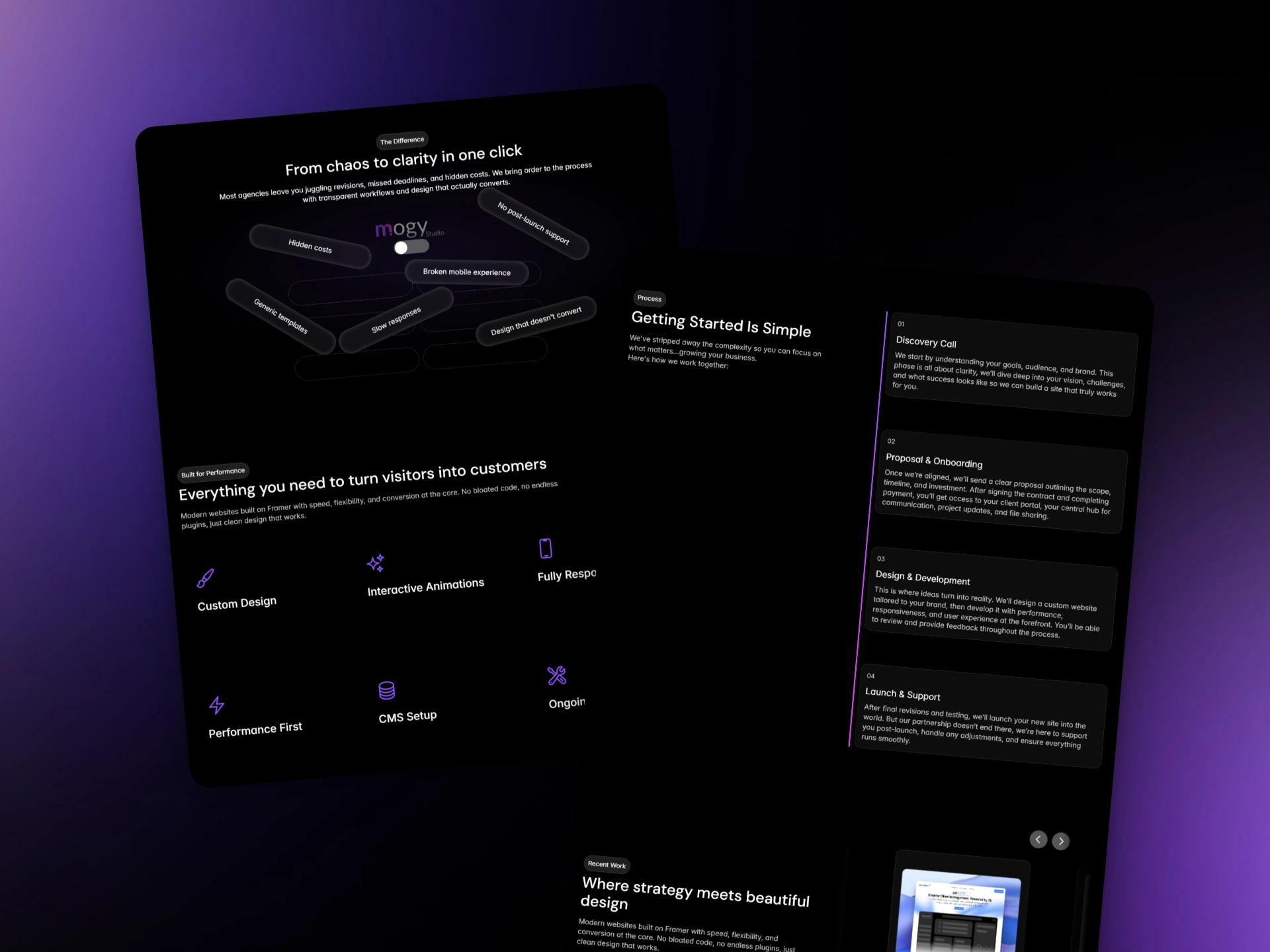 Rebranded Nyx Web Designs to Mogy Studio using Framer for a modern, UX-focused site.