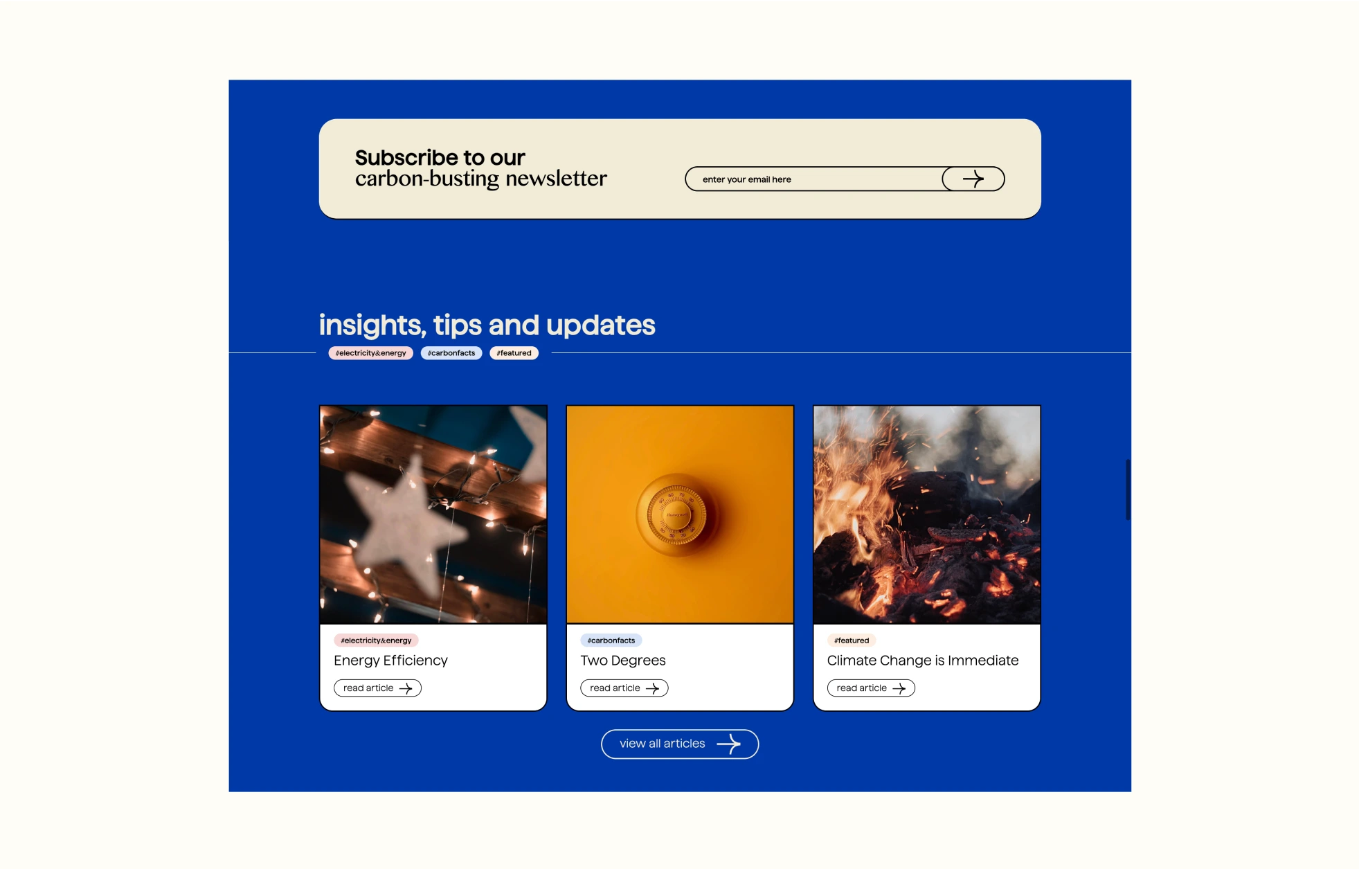 A youth-powered carbon offsetting service needed a fresh new look for their website. We created a bold new identity and website that felt professional, without loosing the youthful spirit of the team behind the brand.