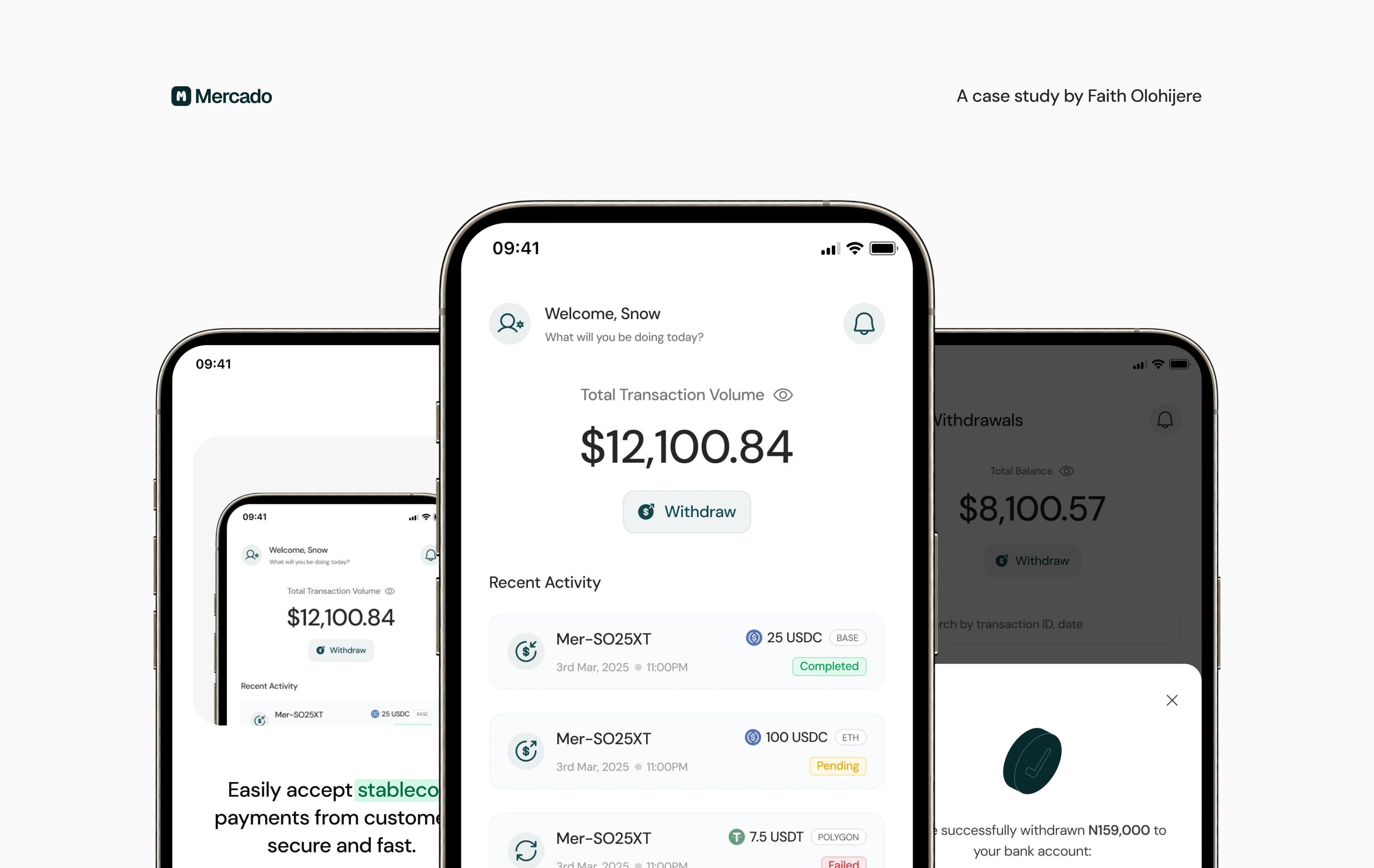 Developed a mobile app for merchants to accept and manage stablecoin payments easily, boosting adoption, cutting errors, & making crypto feel as simple as cash.