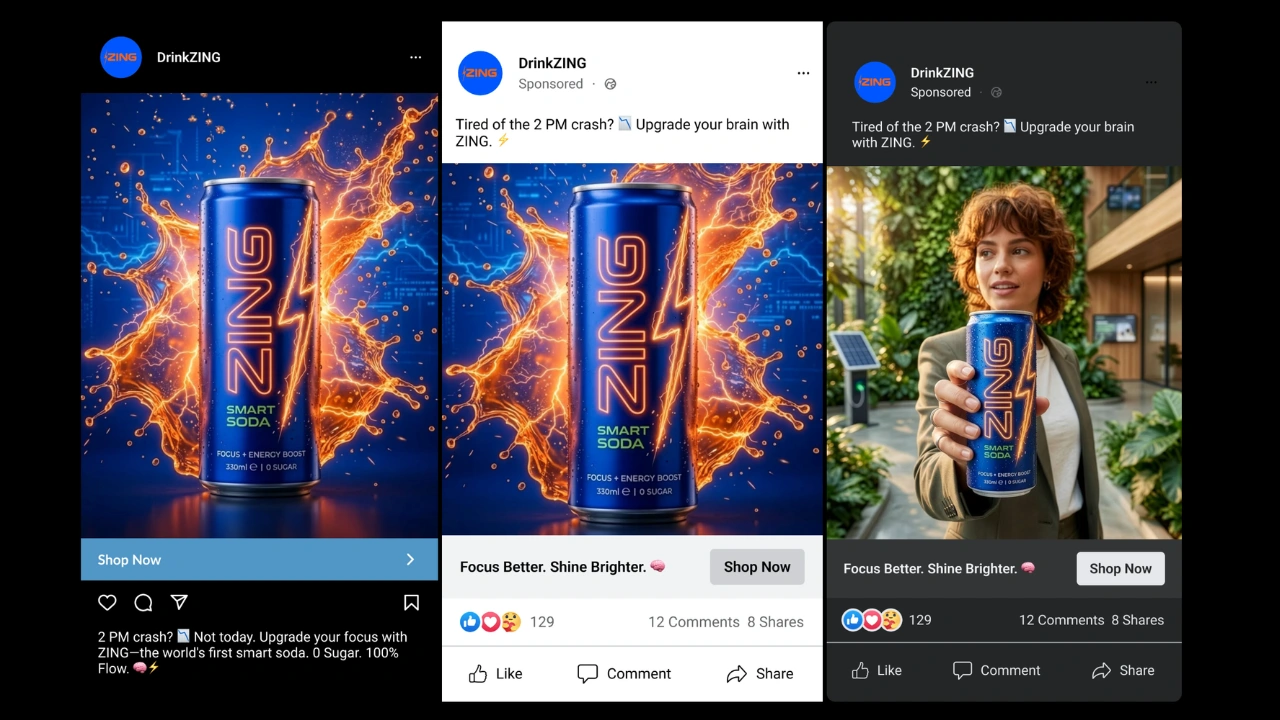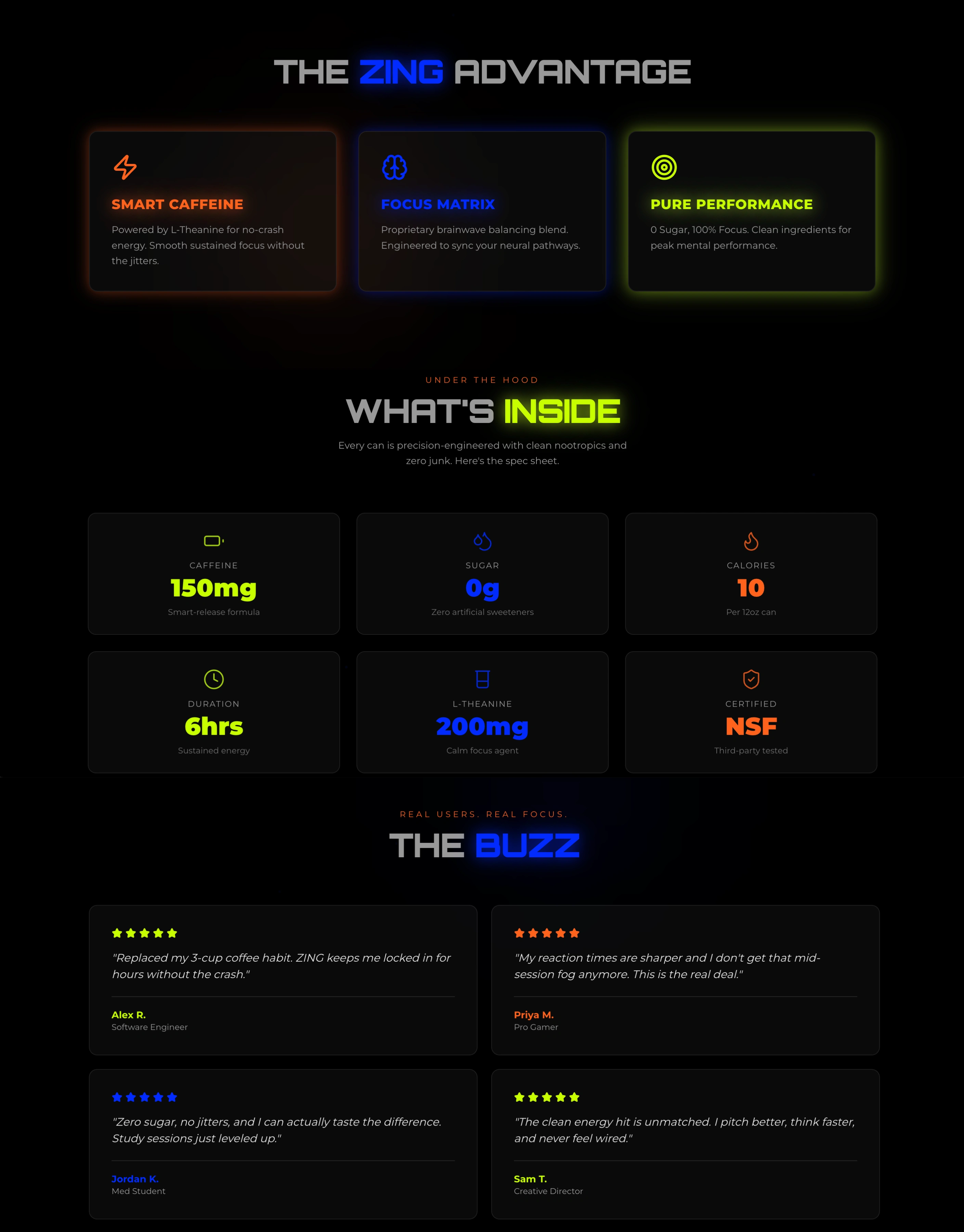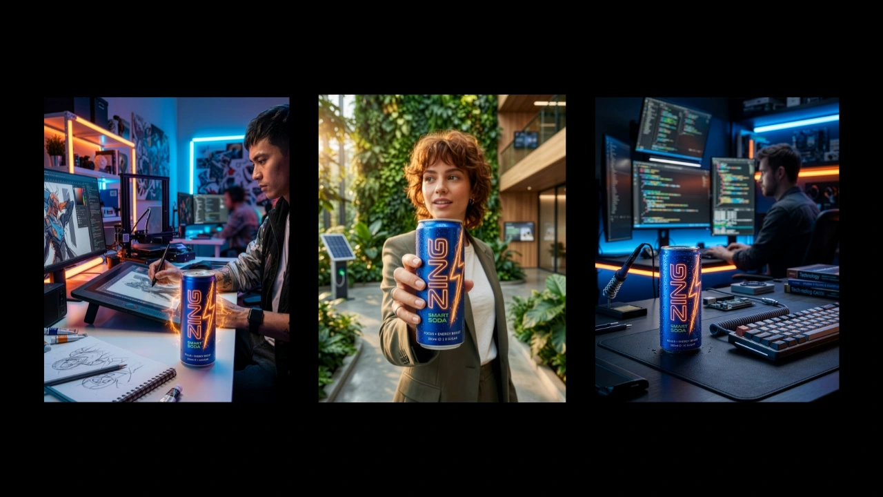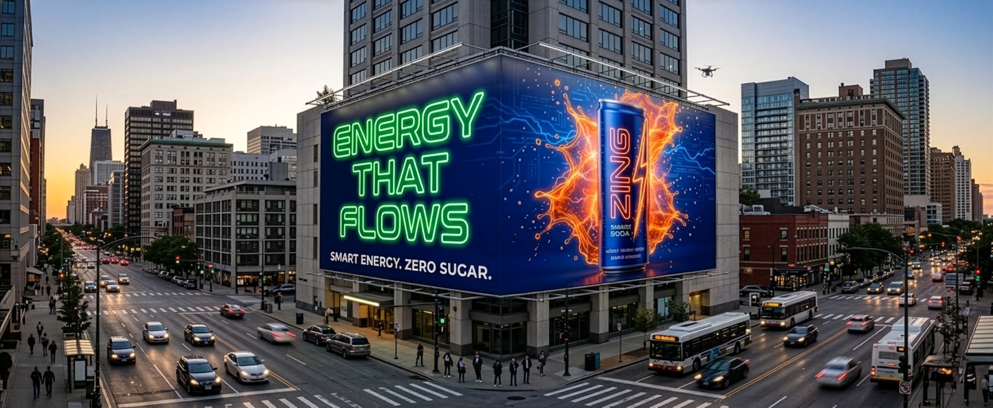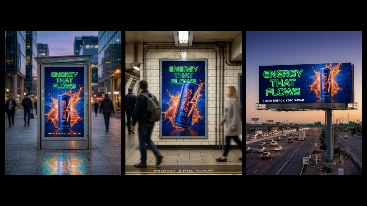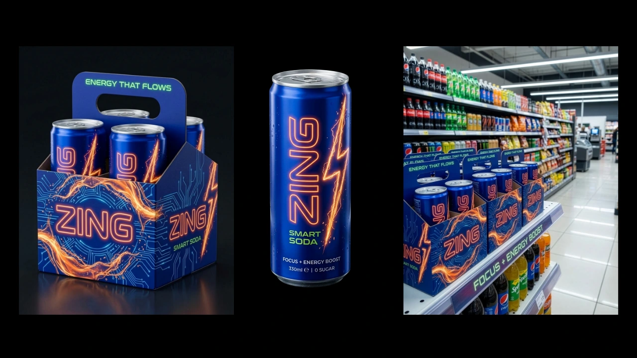 ZING is a conceptual smart soda engineered for the modern high-performer. My process involved building a 360° brand ecosystem from scratch—starting with a tech-centric visual identity, moving into a conversion-focused UX design, and expanding into a multi-channel campaign. By blending AI-assisted creative direction with rigorous design principles, I've crafted a brand that exists seamlessly in both digital interfaces and the urban landscape.
