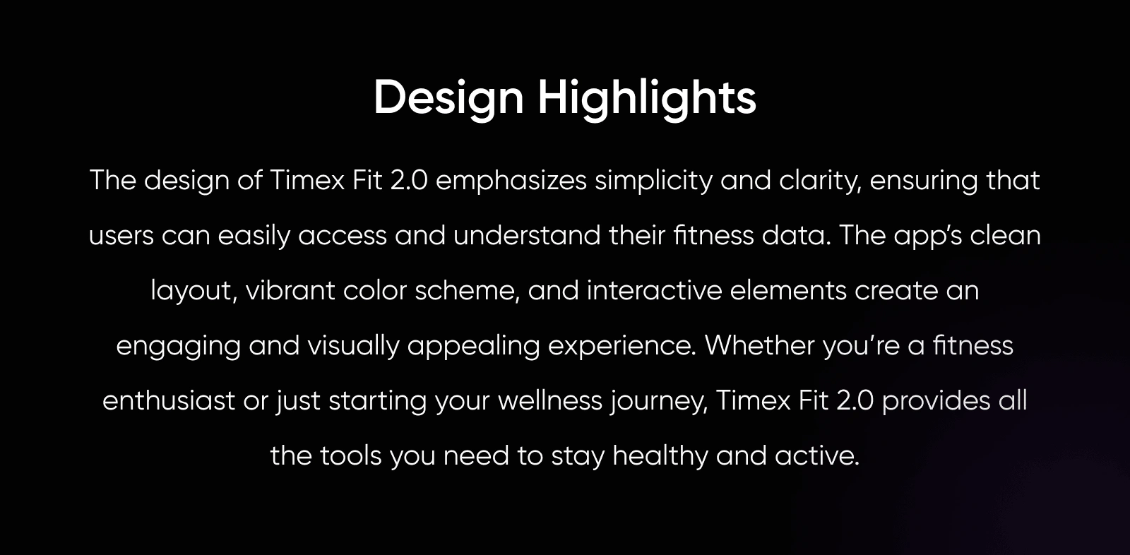 Timex Fit 2.0 is a comprehensive fitness companion app designed to integrate with Timex smartwatches.