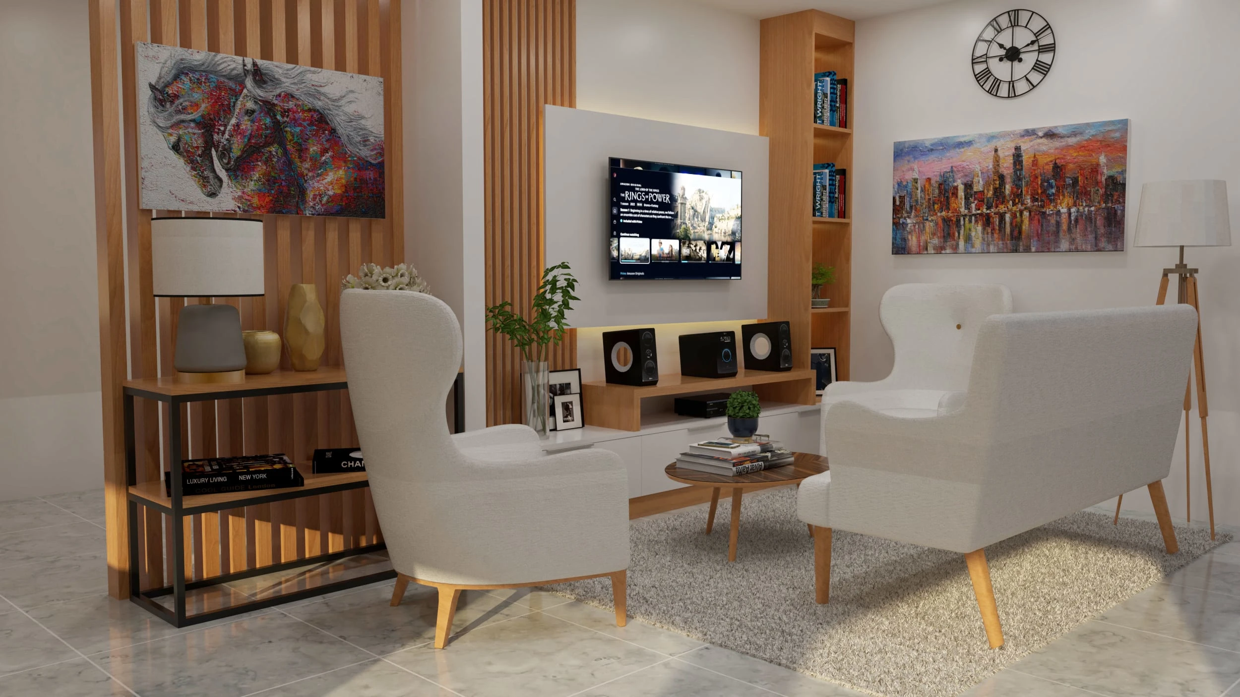 Created a realistic and immersive 3D rendering of a luxury apartment, showcasing attention to detail in textures, lighting, and furnishings.