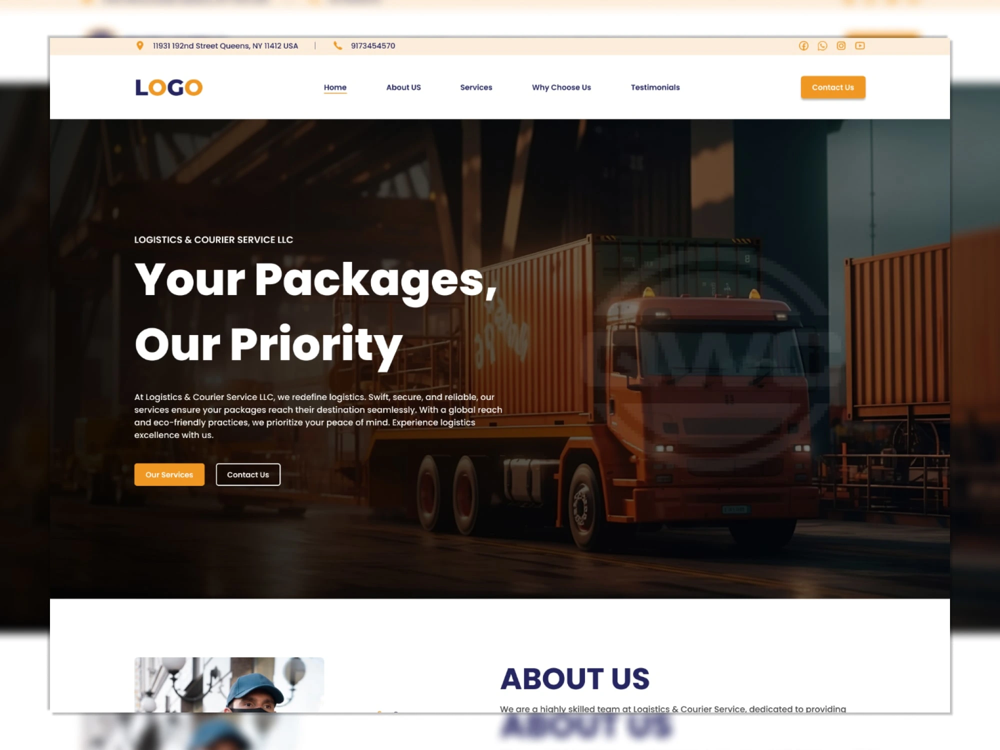 ๐ Dramatic full-width hero with a powerful truck & container backdrop โ raw, industrial & instantly credible
