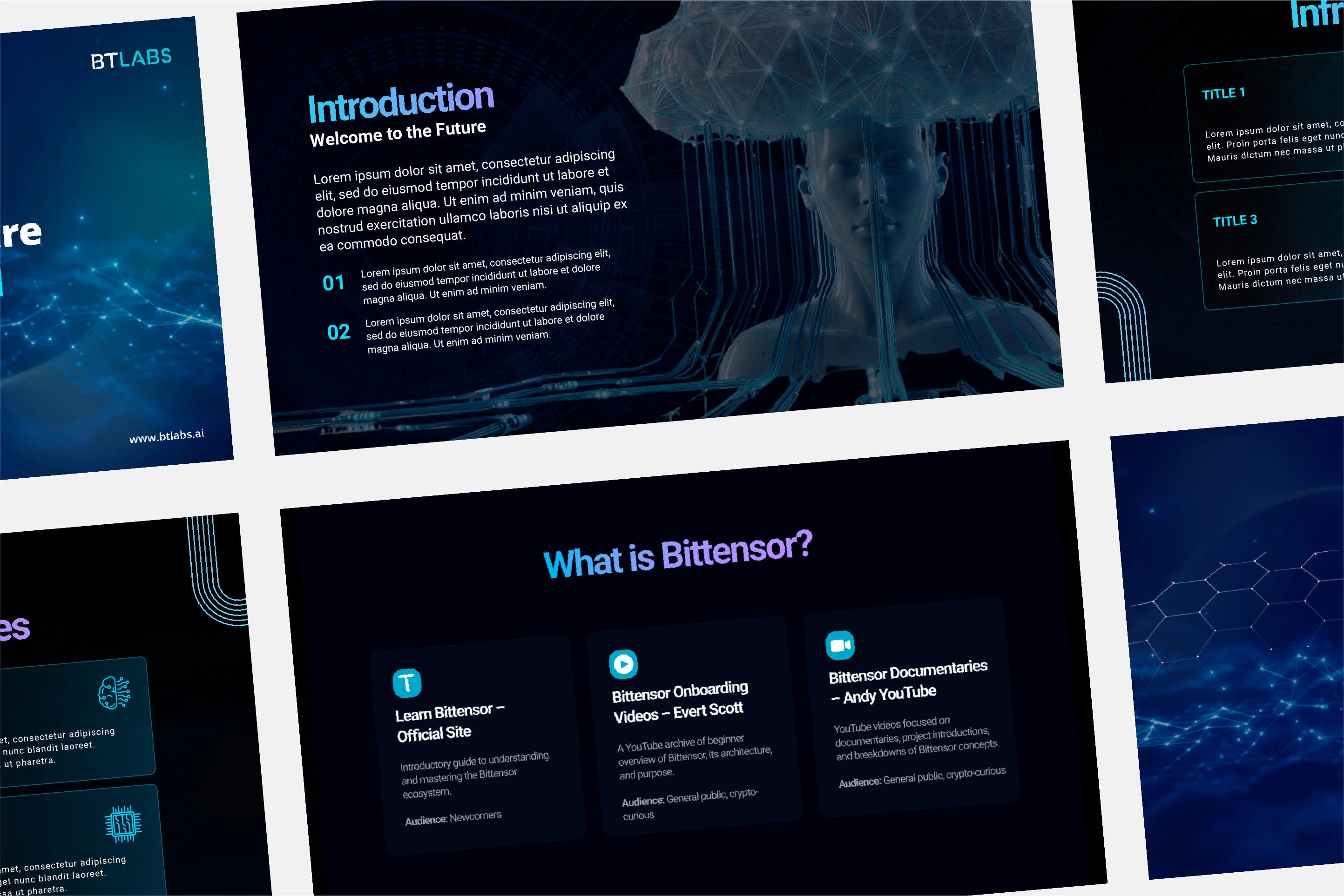 Designed BTLABS' deep-tech aesthetic presentation system.