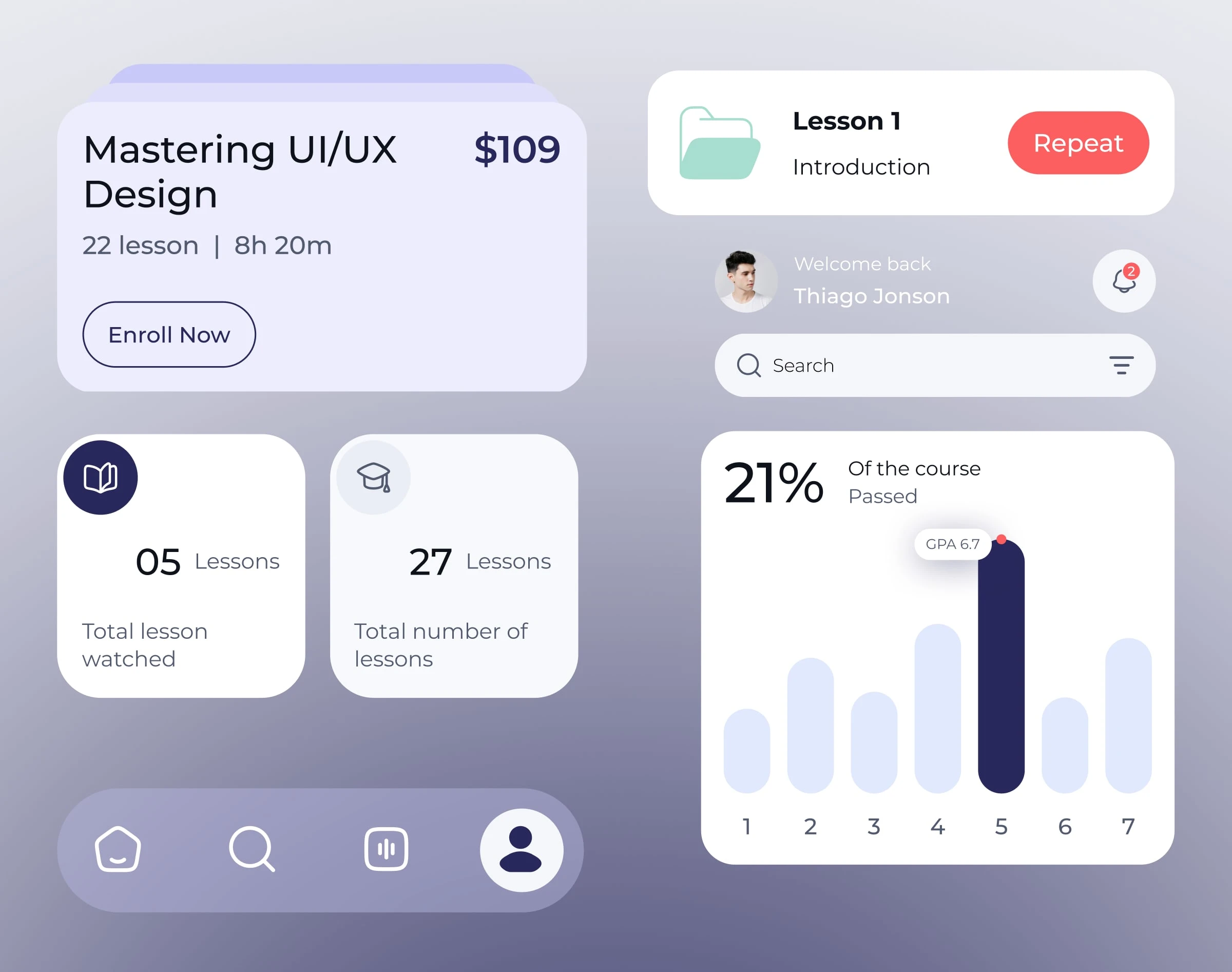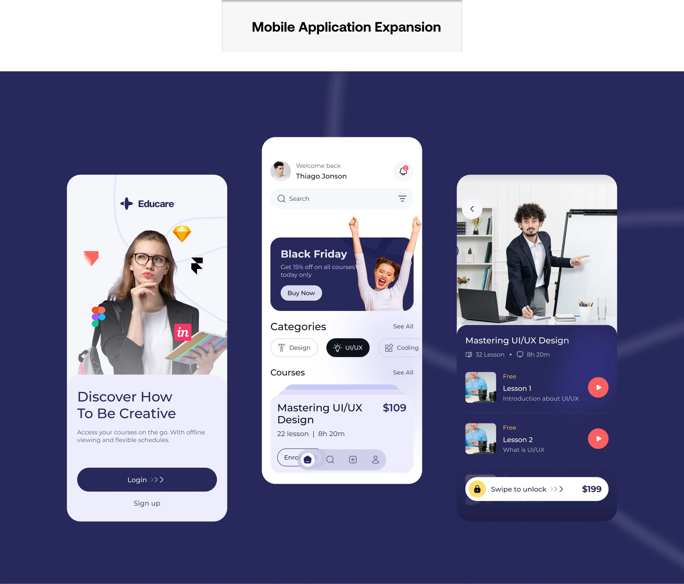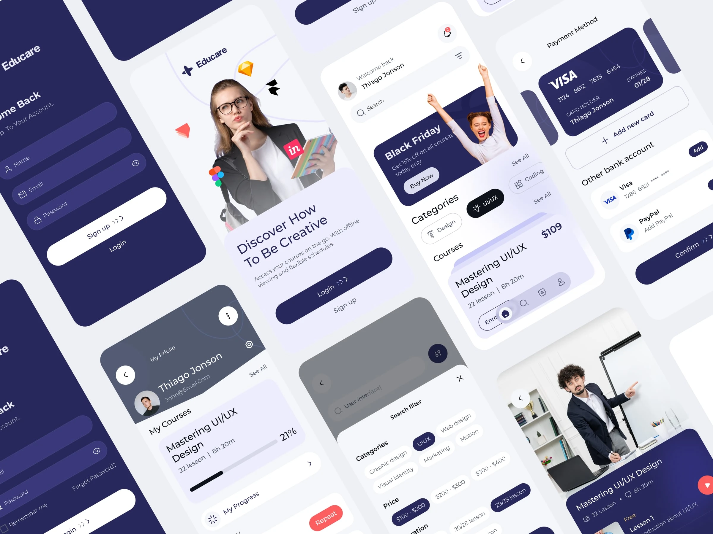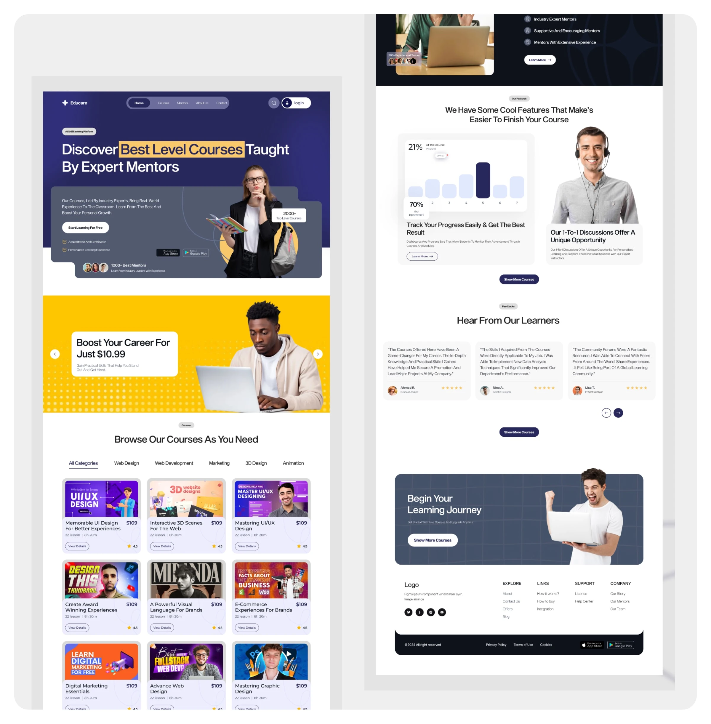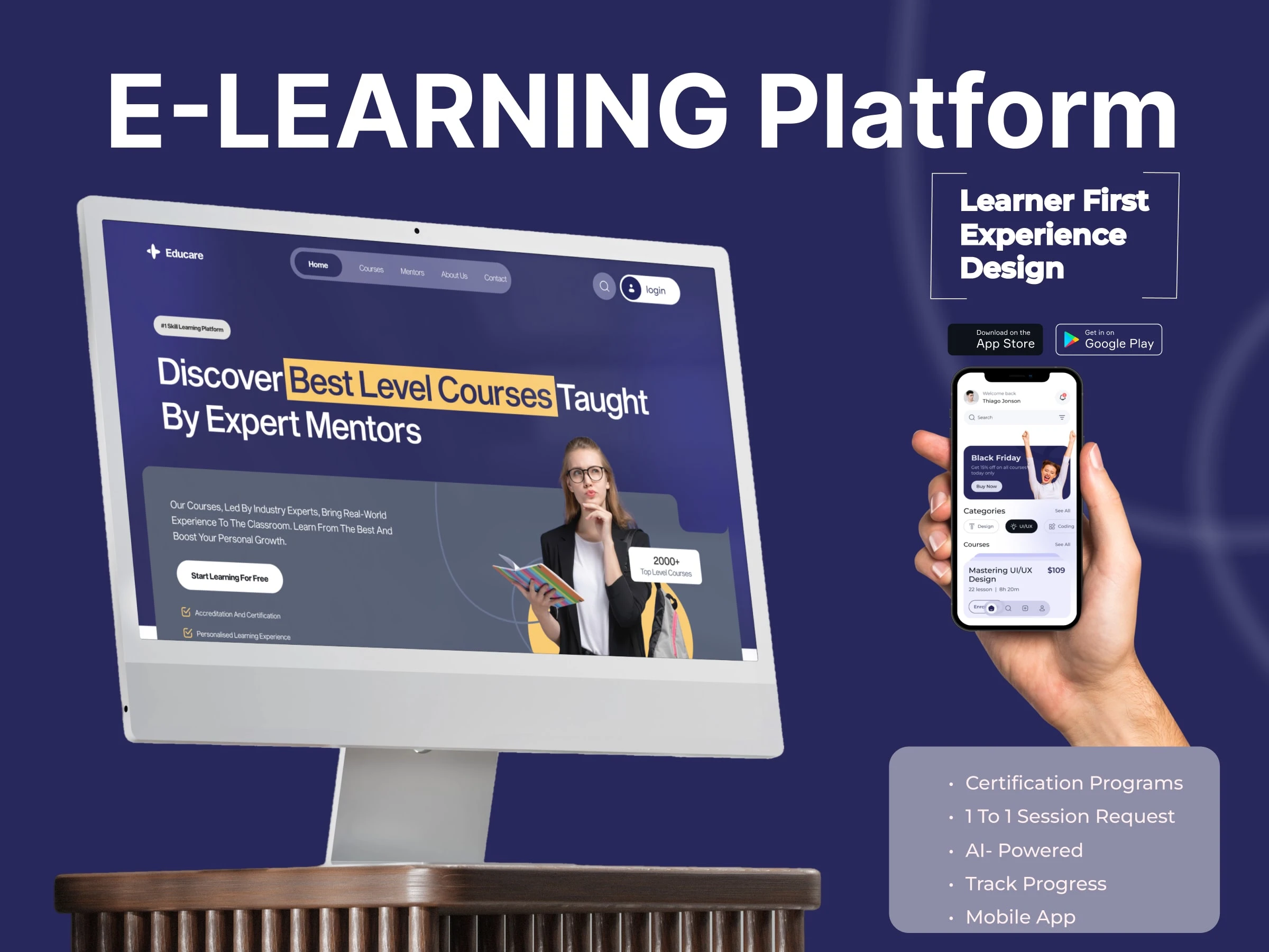 Educare UI/UX Case Study: A high-converting landing page, gamified learner dashboard, and native mobile app designed to boost course completion rates.