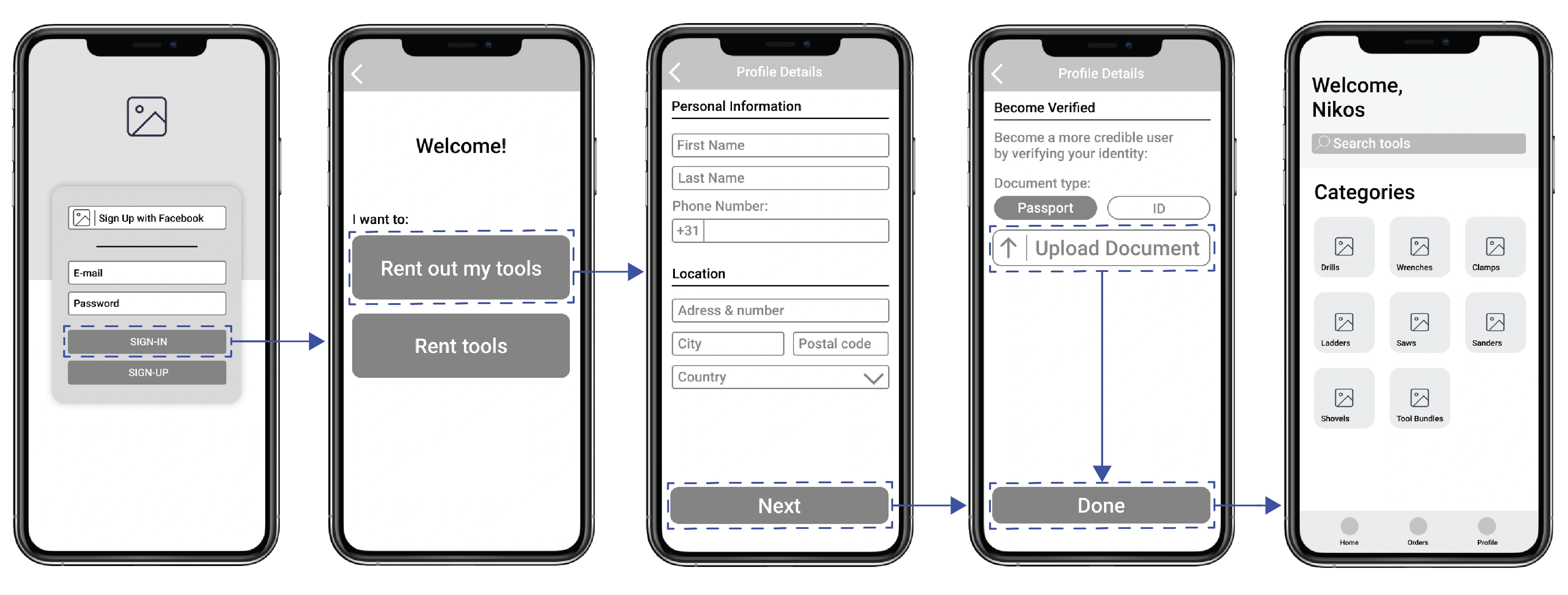 The use flow for a renter renting a tool