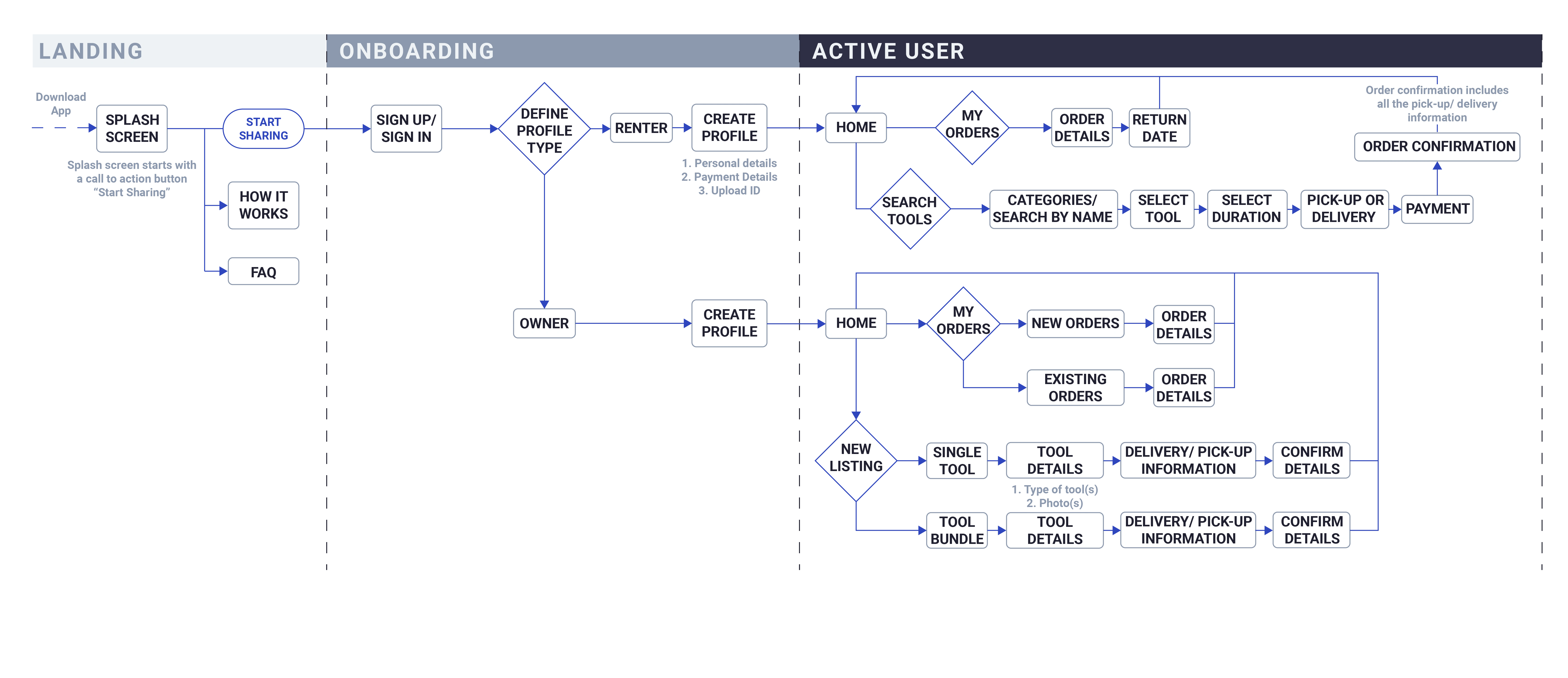 The use flow for an owner listing a tool