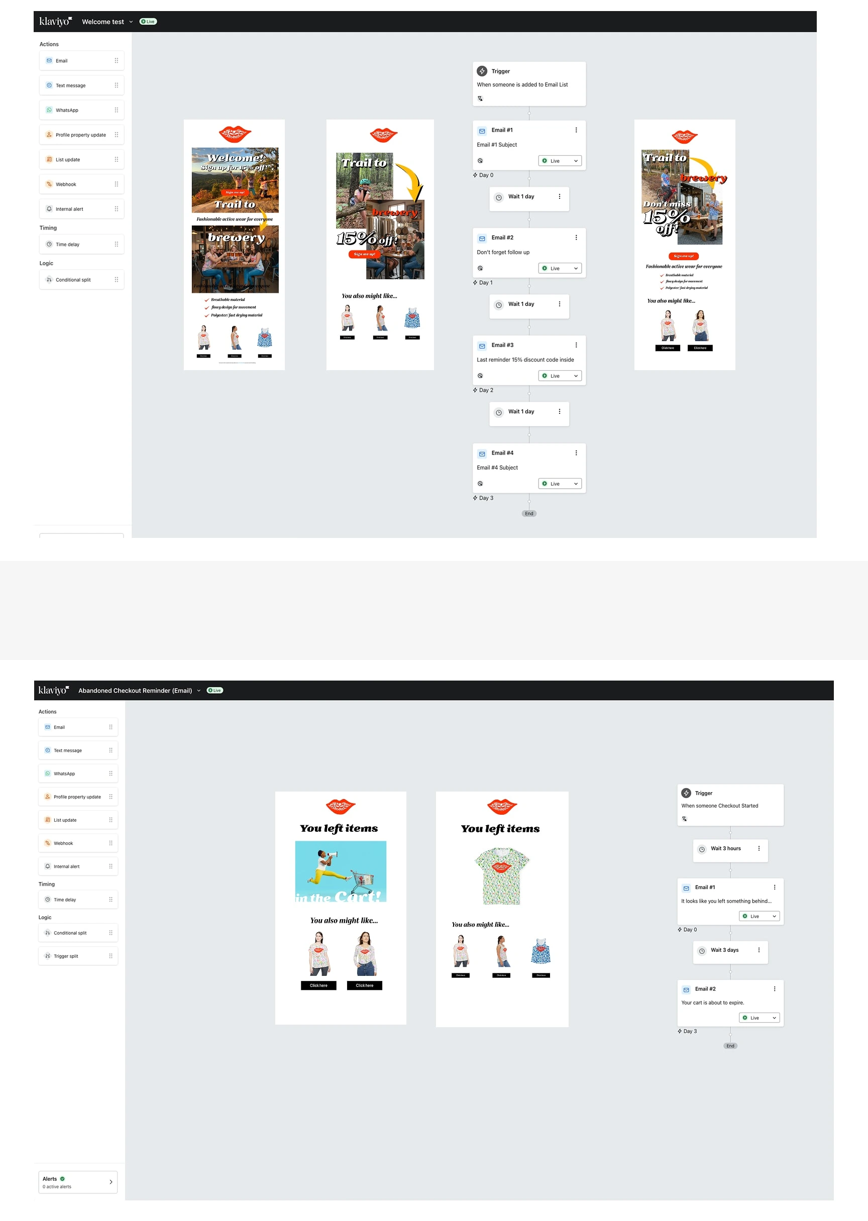 Setting up Welcome Flow and Abandon cart flow in Klaviyo.