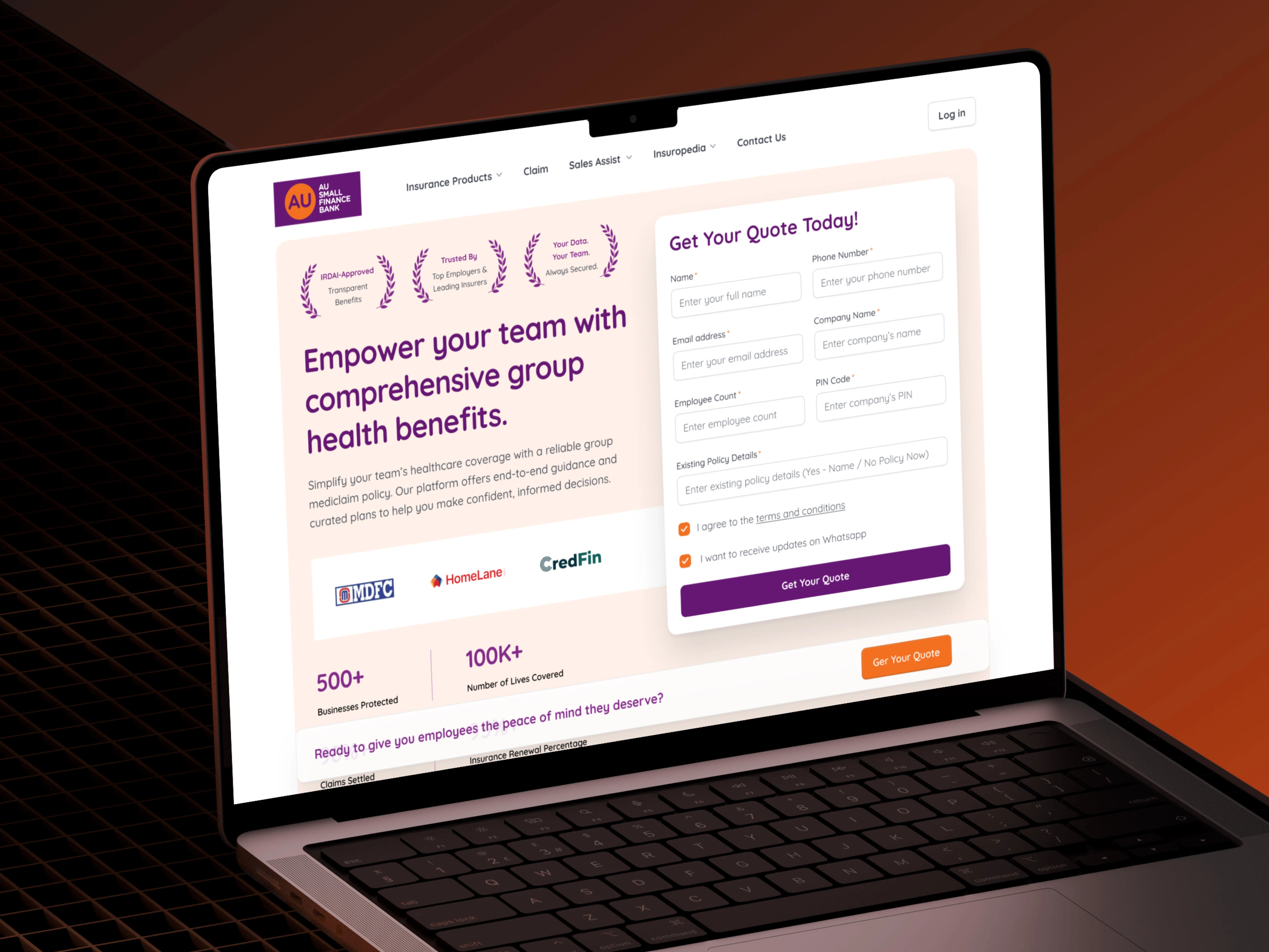 To bring these journeys to life, we restructured the primary landing page to highlight distribution strengths, partner insurers, and key benefits in an organized, visually engaging way. We introduced subtle micro-animations, auto-scrolling sections, and smooth transitions to make the experience feel more dynamic without distracting from the core information.