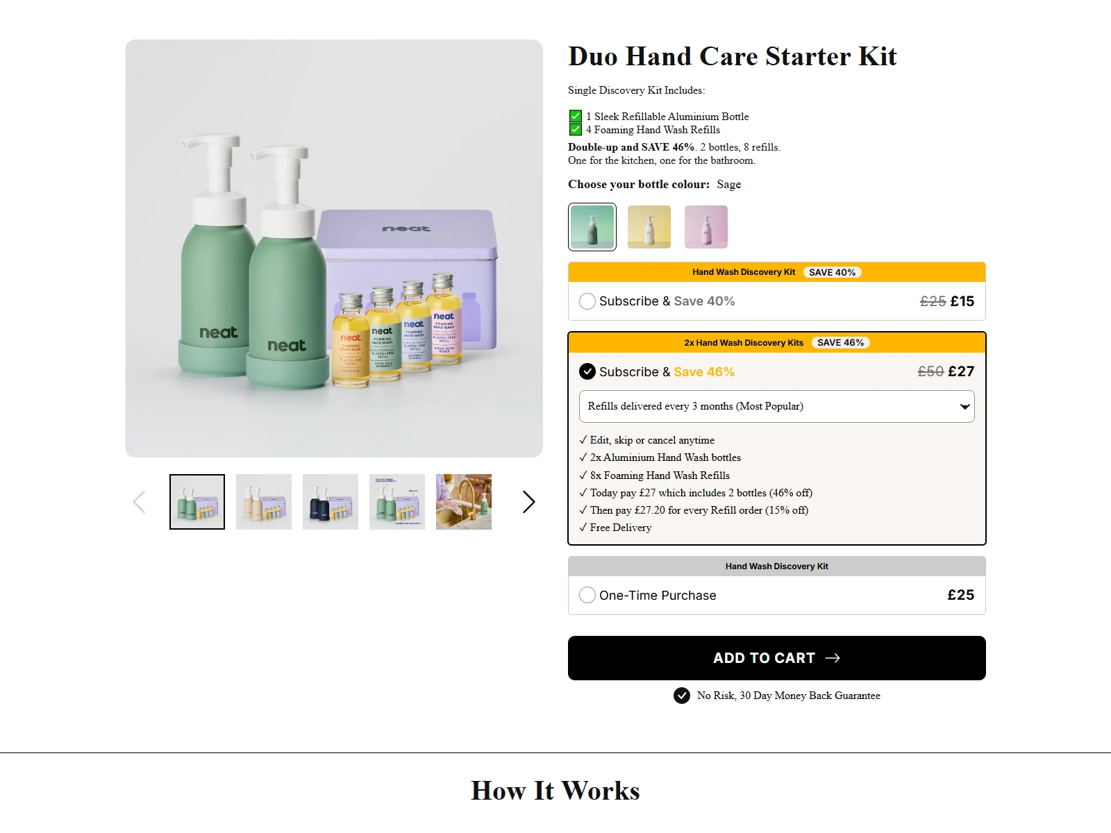 I translated the provided Figma design into a fully responsive Replo page with precise spacing, typography, and layout. The page was structured to clearly communicate product benefits, kit contents, scent options, and subscription savings to drive higher conversions.