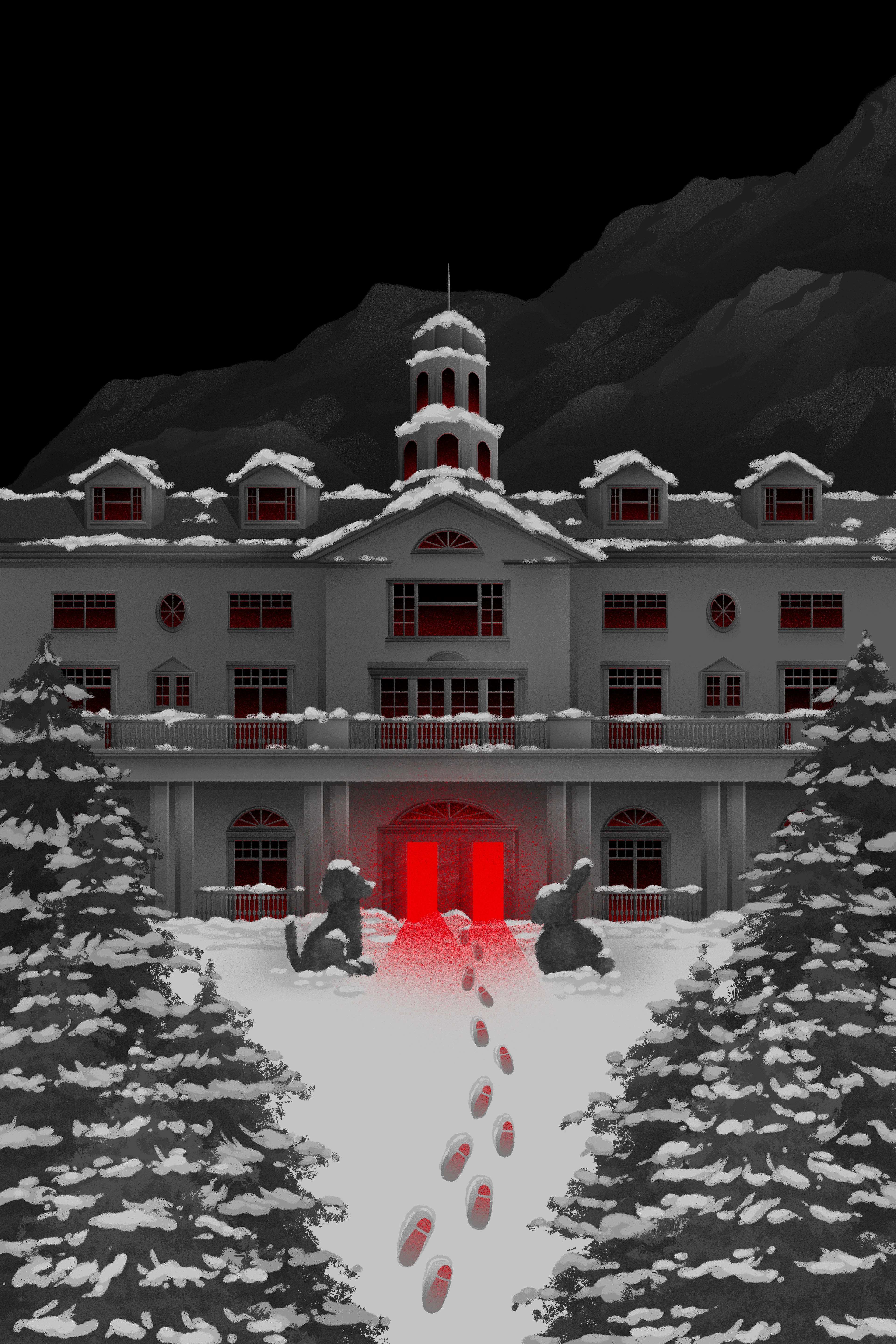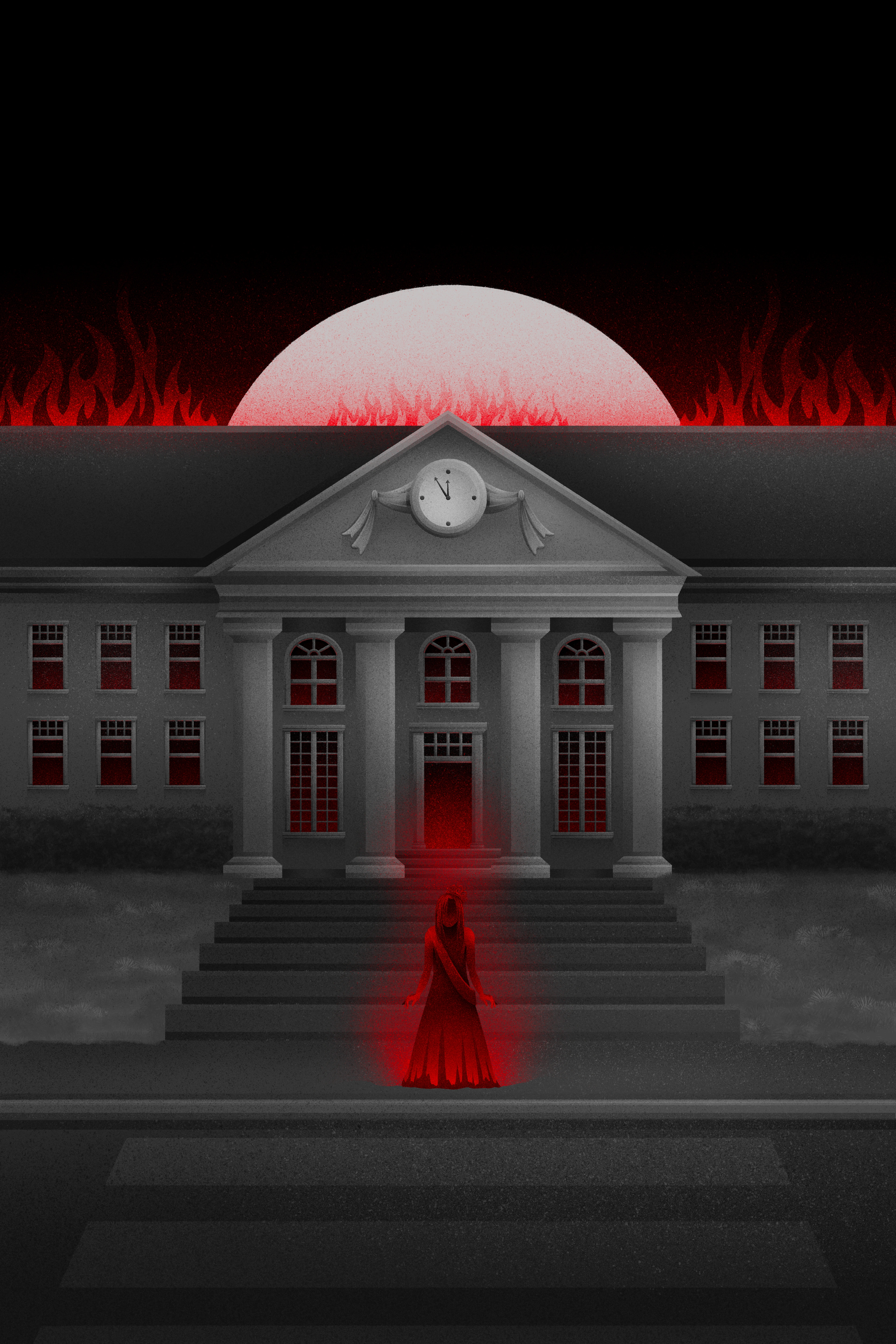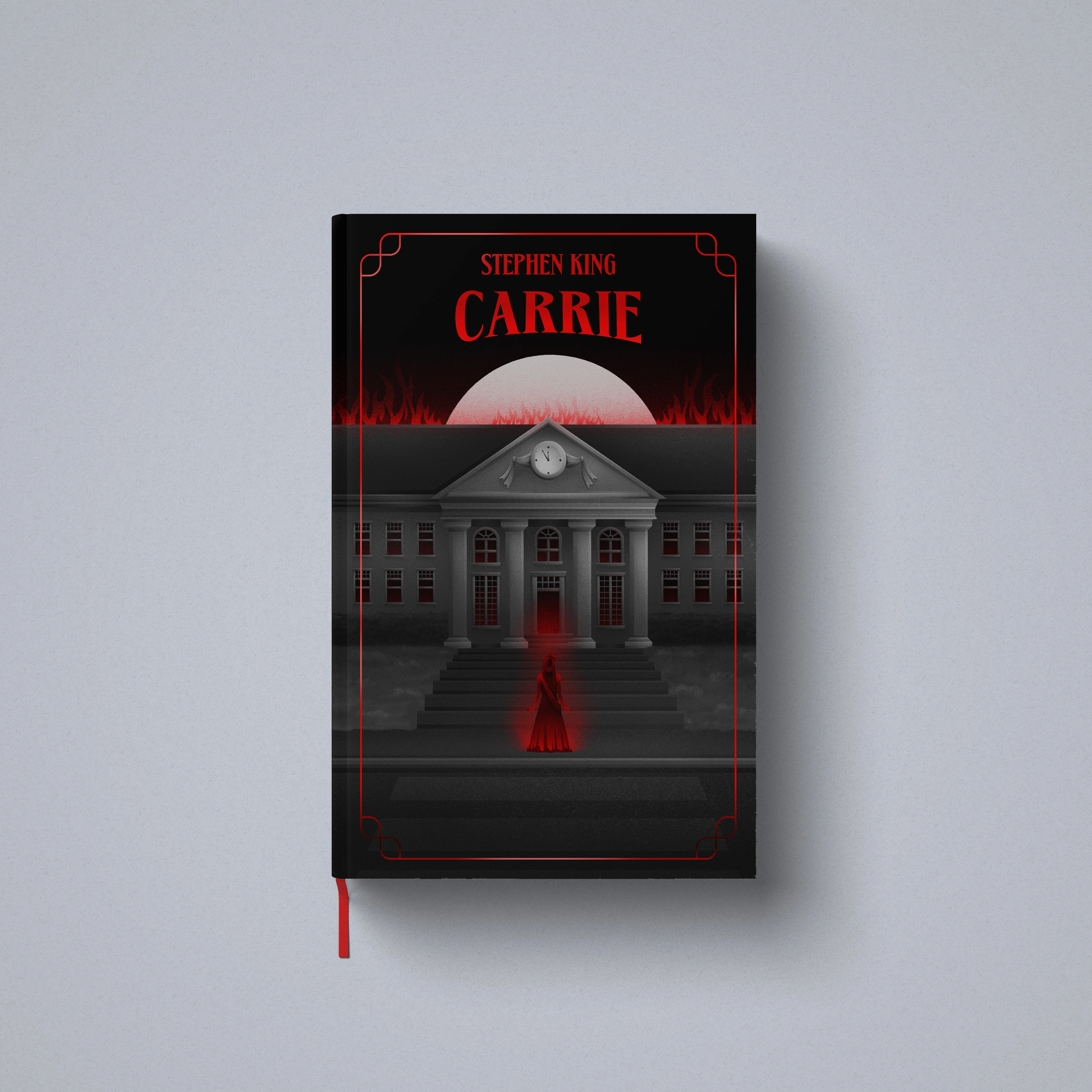 Illustrated book cover designs inspired by Stephen King classic novels Salem's Lot, Carrie and The Shining.