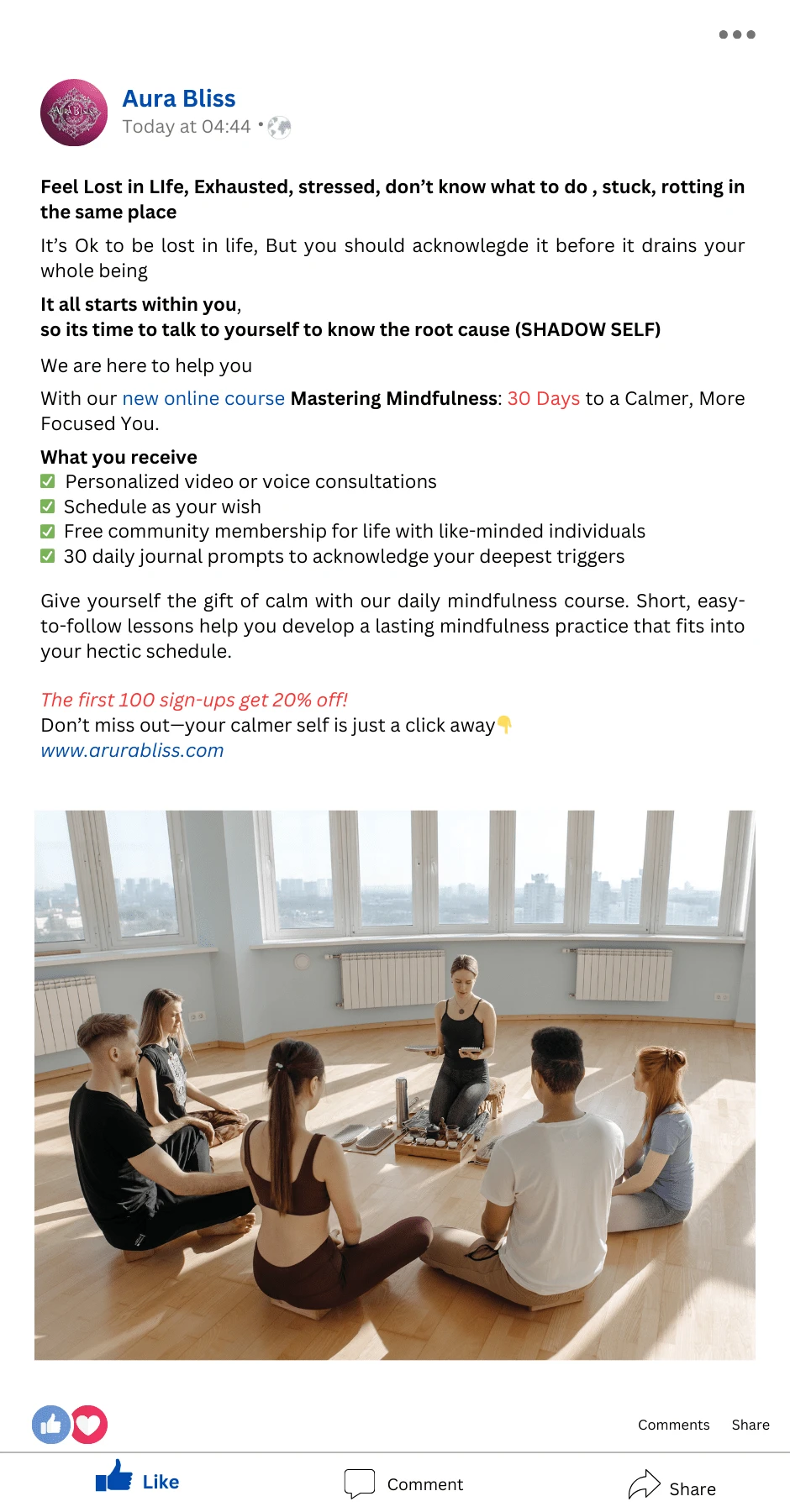 Objective: Promote a new online course titled āMastering Mindfulness: 30 Days to a Calmer, More Focused You.ā
