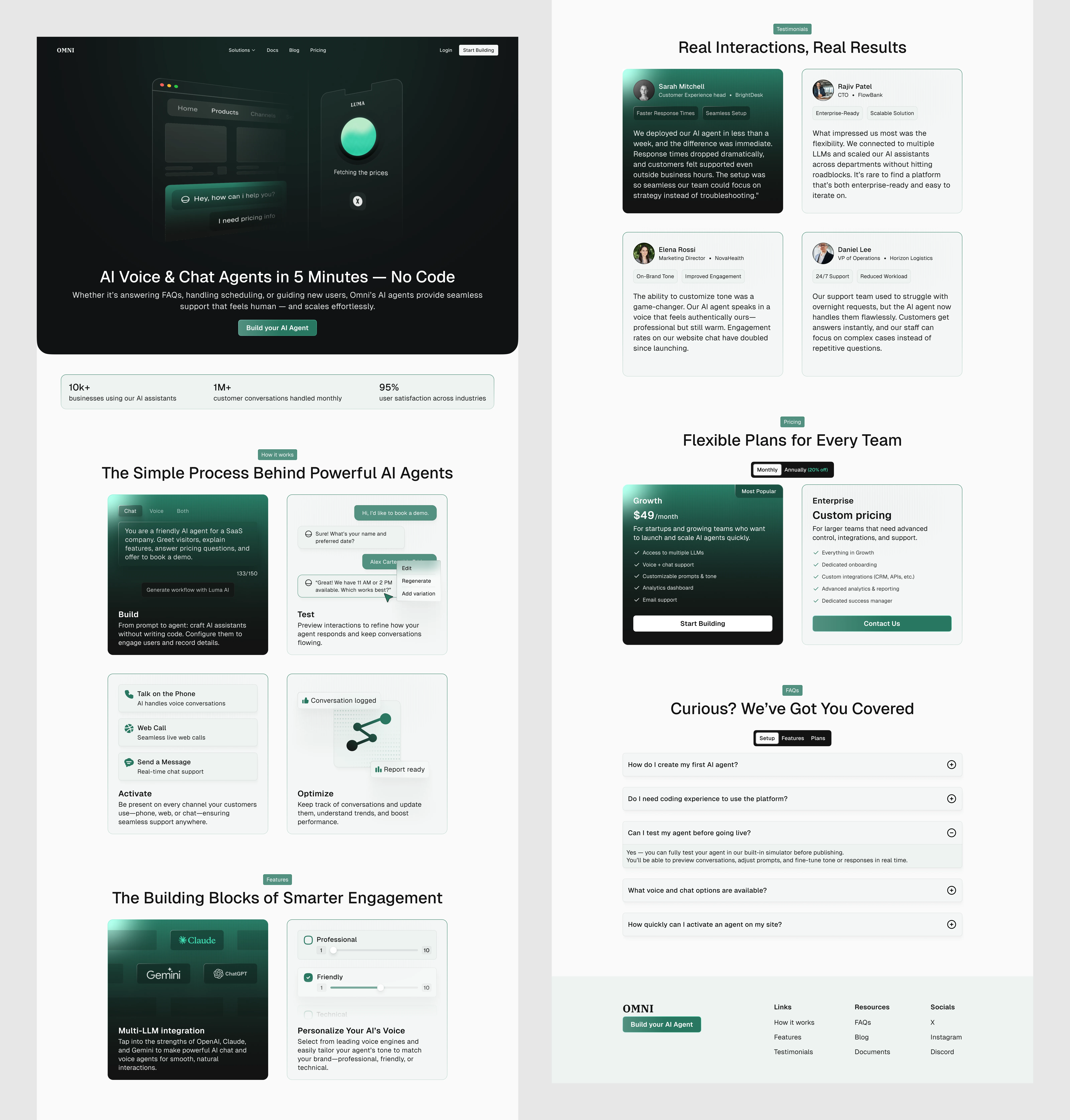 A structured landing page concept for Omni, with all key components of a modern AI SaaS landing page—from hero visuals to pricing and support.