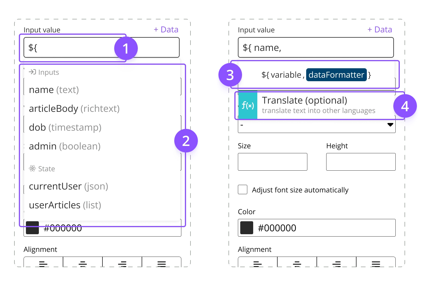Designing UIs was quite simple with Appspotr’s drag & drop UI builder. However, users faced the complexity of needing to utilize Appspotr’s custom syntax when accessing dynamic data(from databases, APIs, App Users, etc.) hindering the seamless design process.