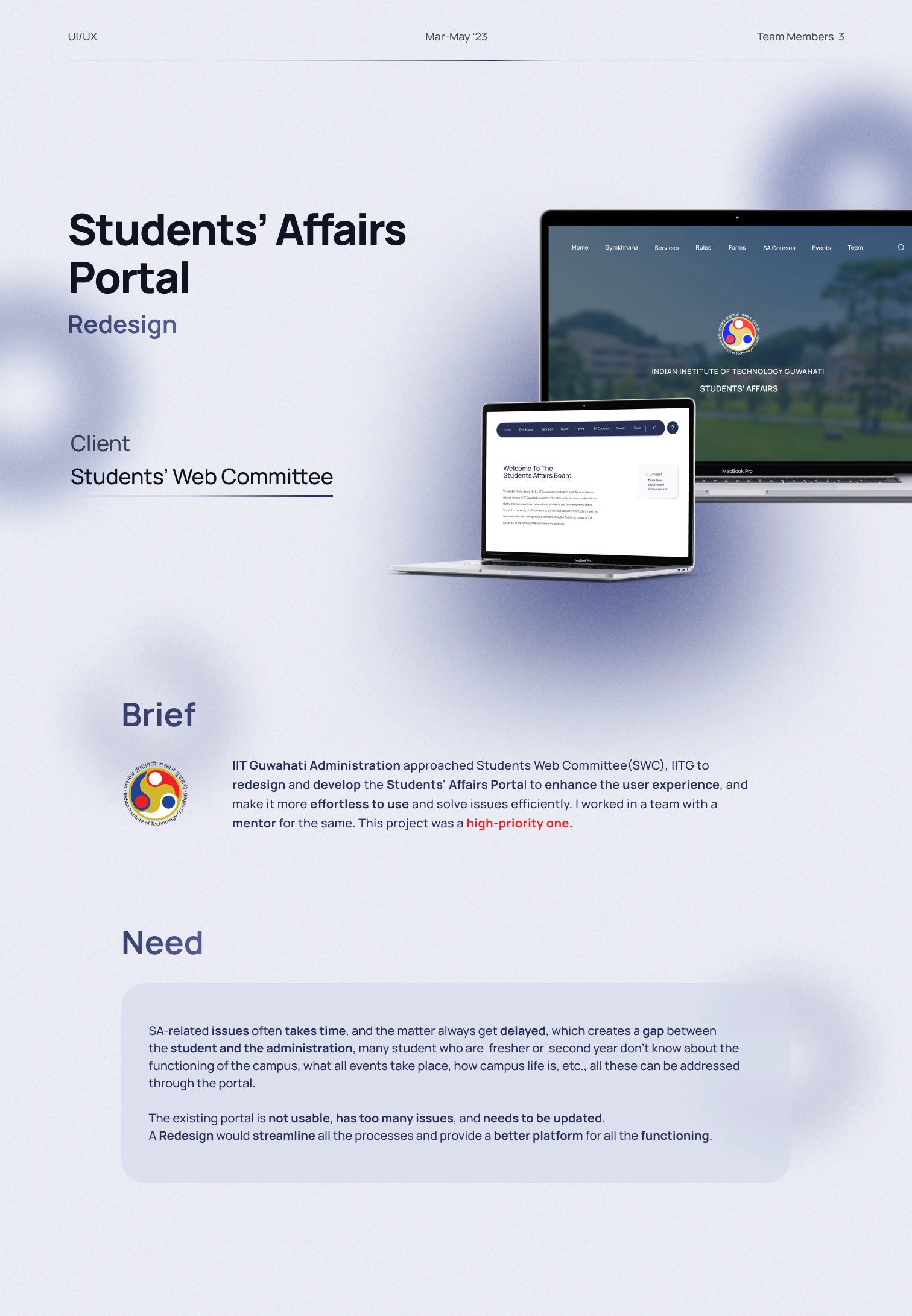 Redesigned the existing Student Affairs portal of IIT Guwahati
