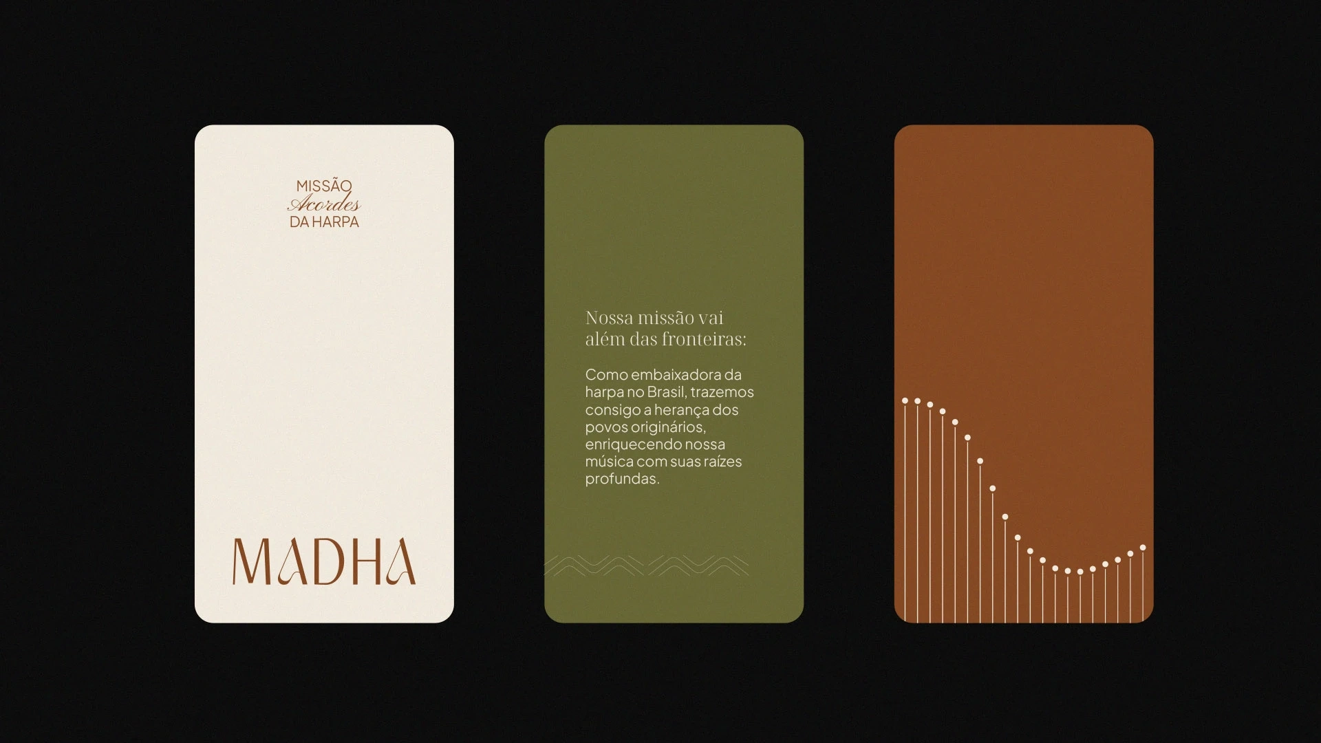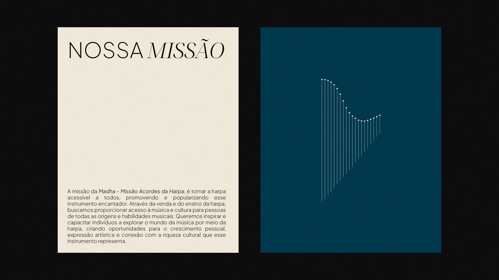 It's in this visual harmony that our brand comes to life. With a logo that exudes elegance and innovation, the clean typographic combination invites you to embark on a musical journey, where each letter tells a story. And at the center of this narrative, the letter A, inspired by the essence of the harp itself, where contrasts and curves come together in a perfect chord, conveying the duality of tradition and modernity. Thus, we present our logo: an expression of warmth, modernity, and passion for music