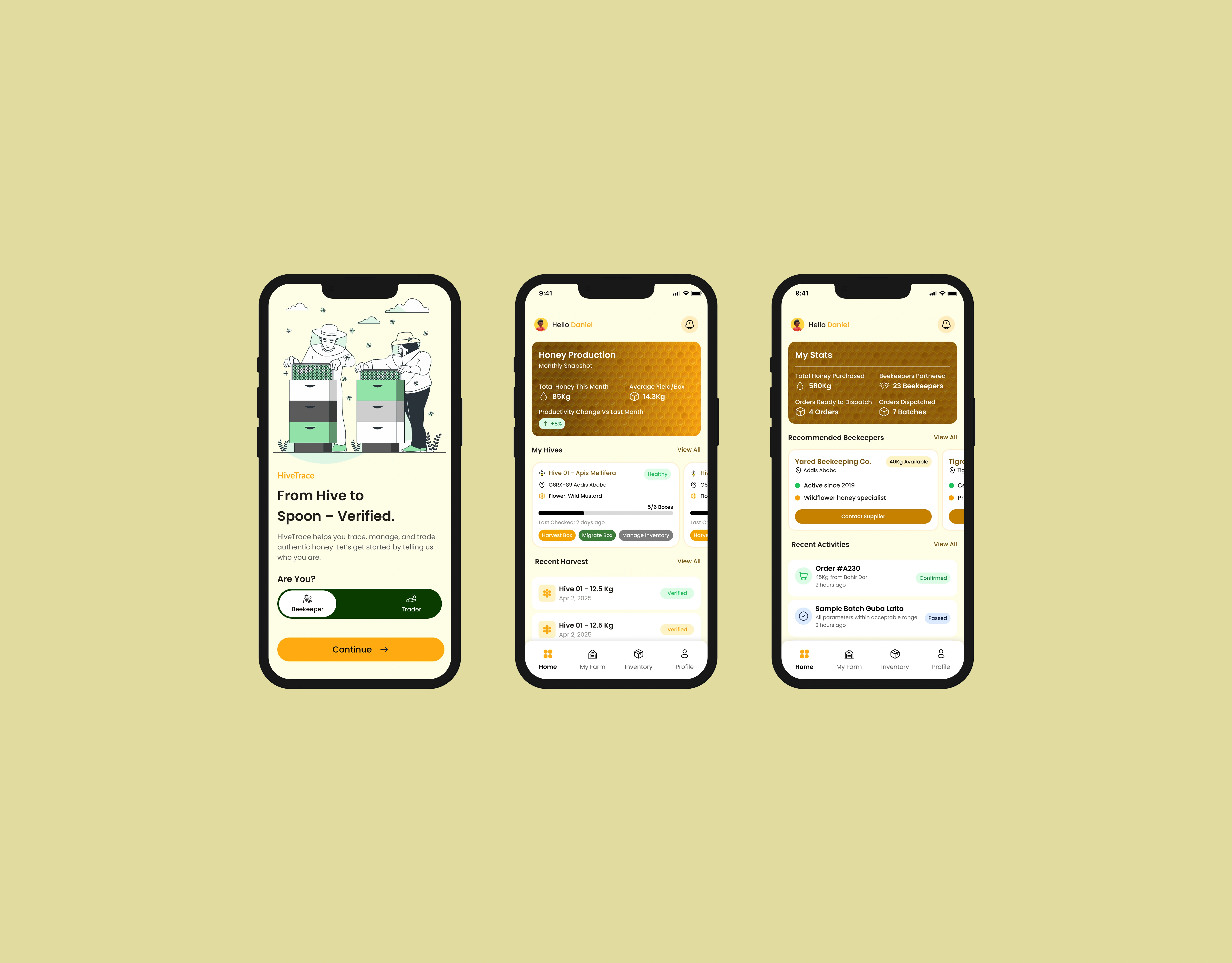 This mobile app is a honey traceability and trading platform designed to connect beekeepers with traders and buyers through transparent, data-driven ecosystem.