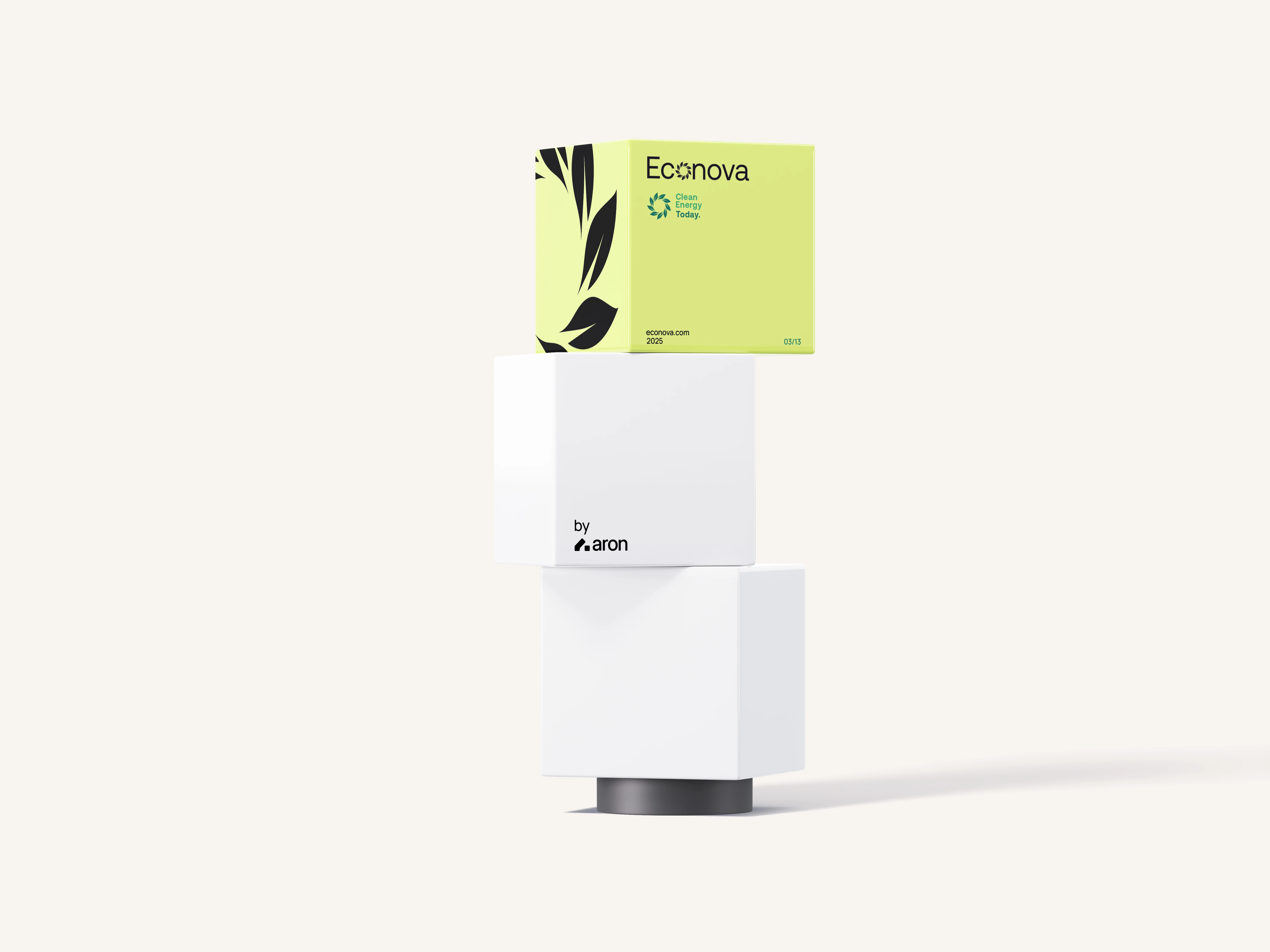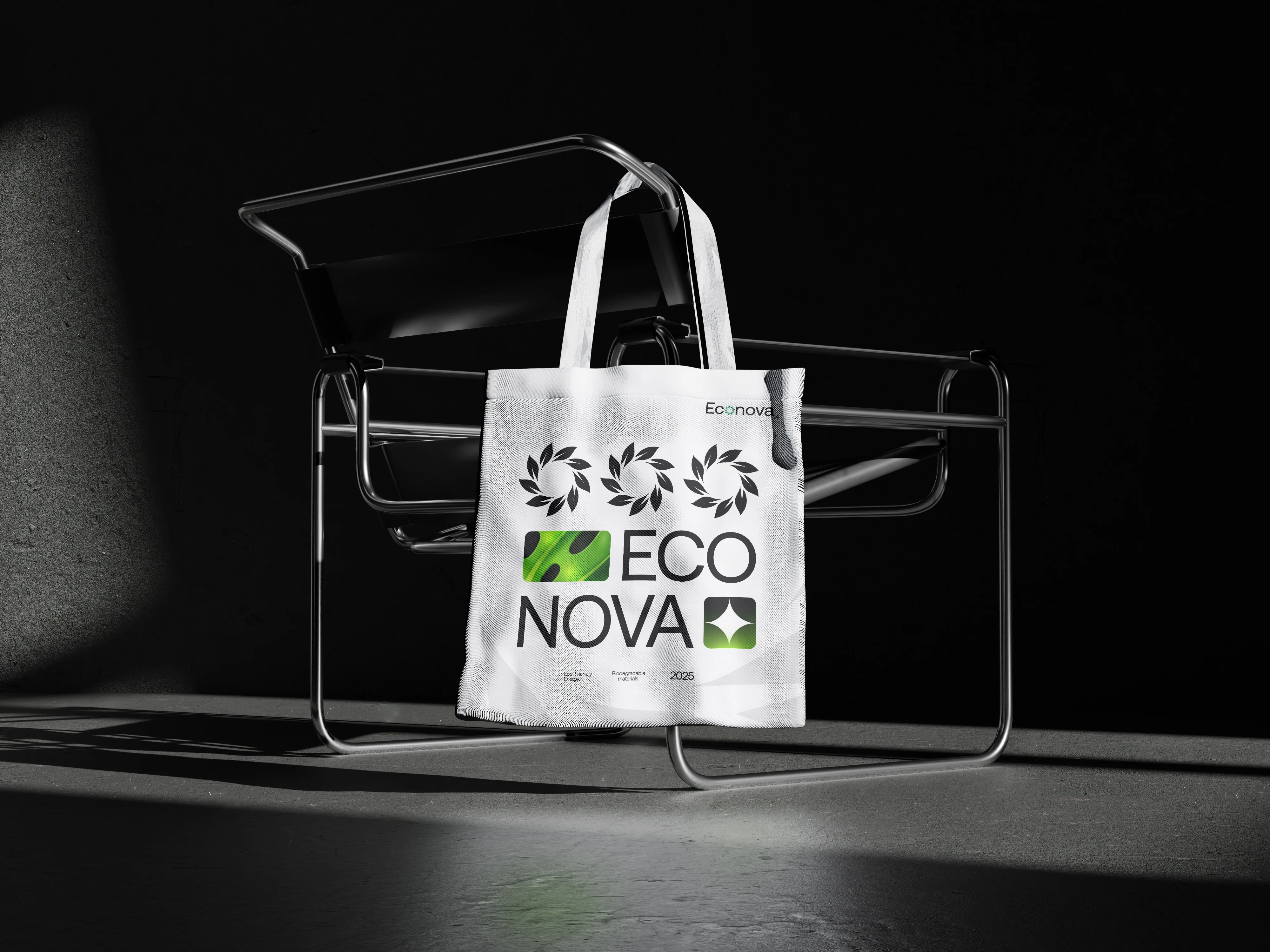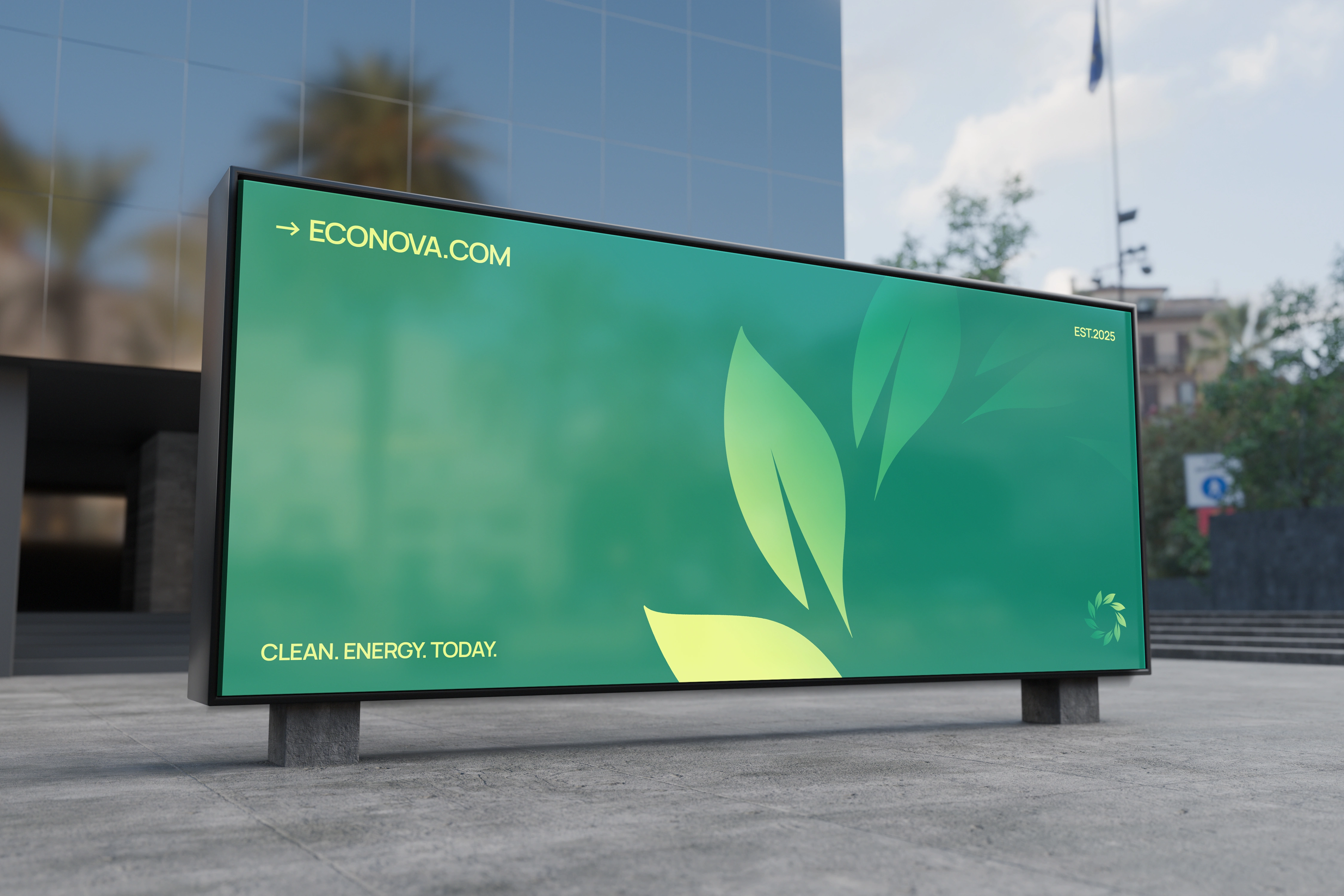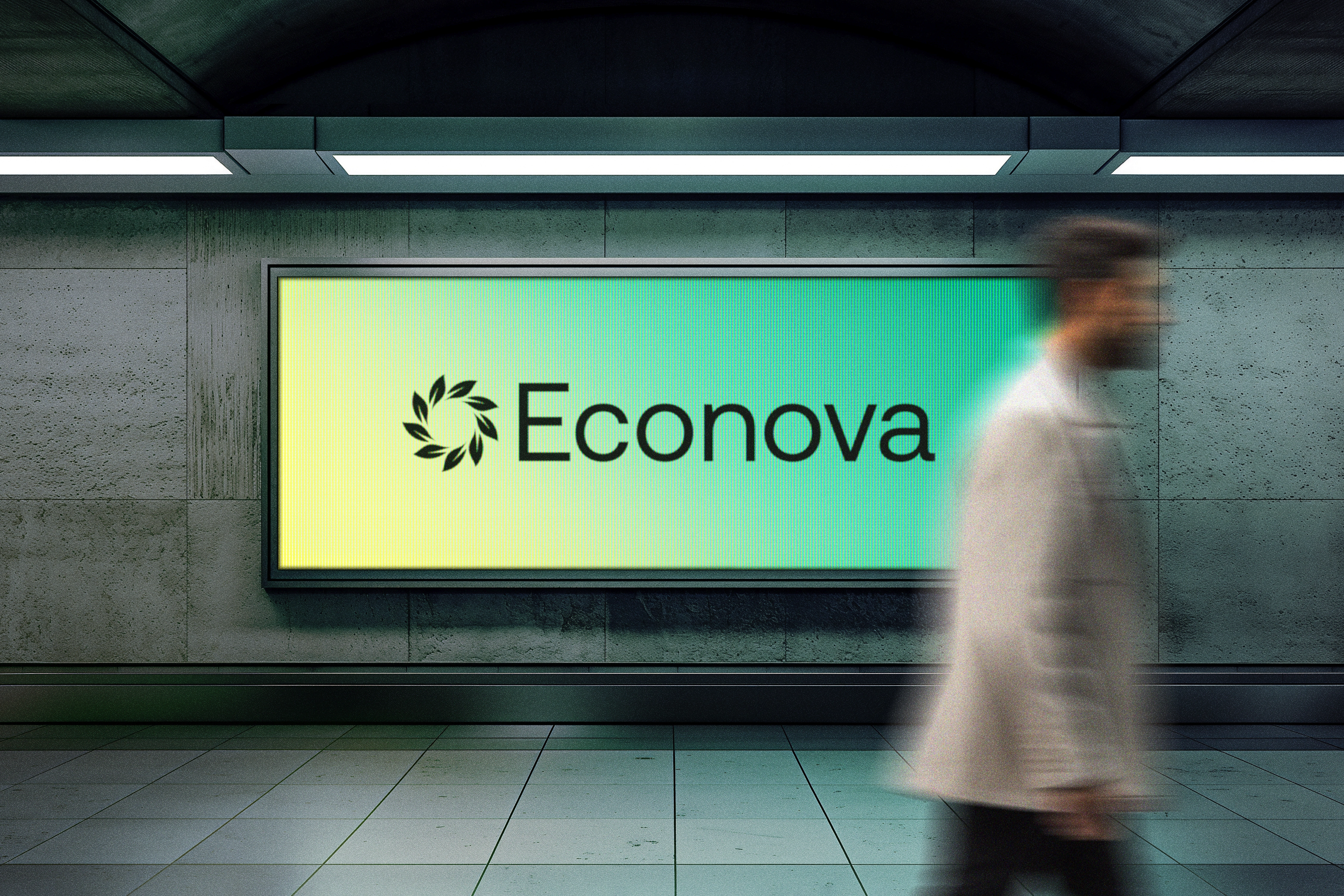 From logo to lifestyle, Econova’s design system speaks with calm authority and forward-thinking energy.