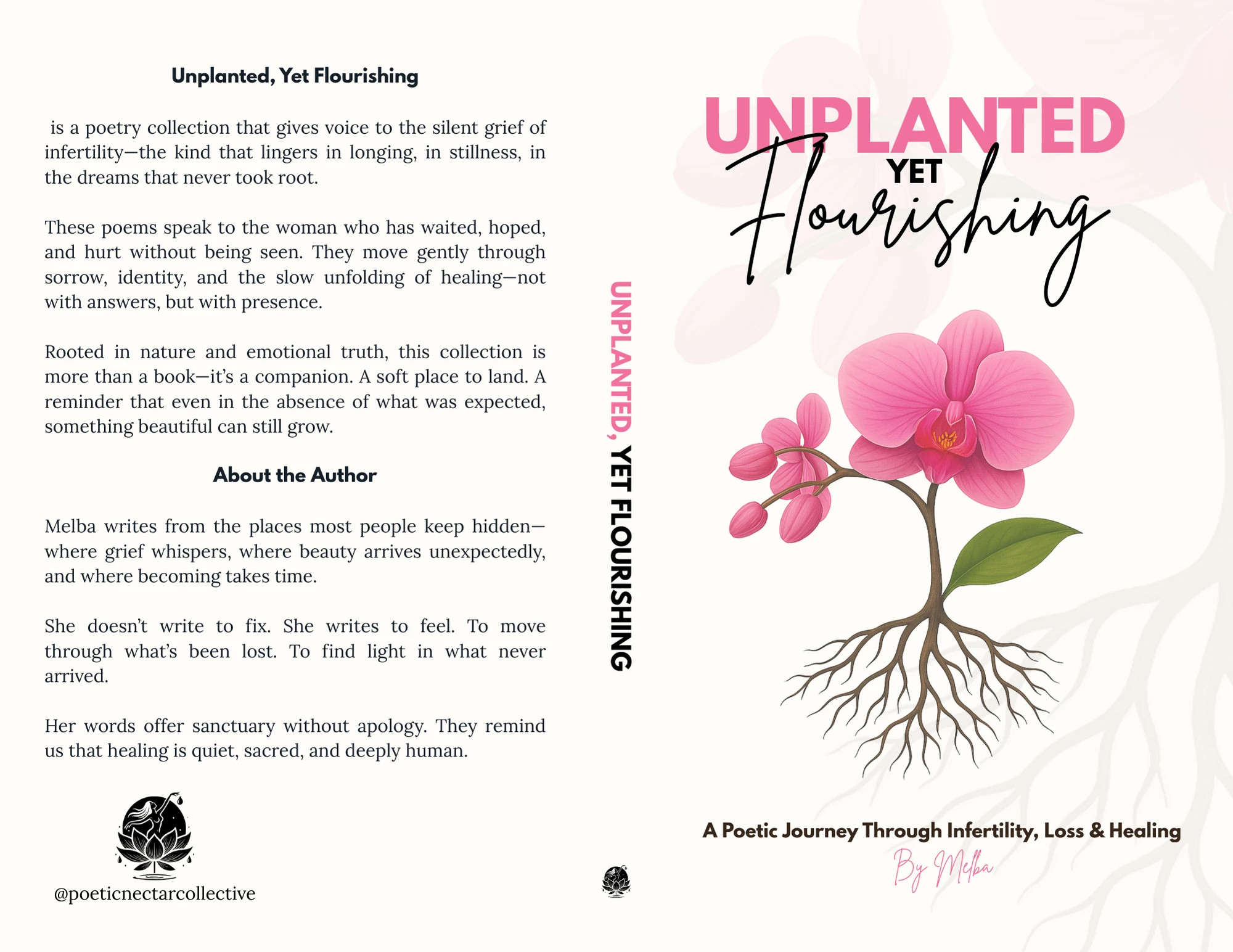 Full book design for “Unplanted Yet Flourishing” layout, typography & formatting for print and KDP, creating a clean, elegant poetry reading flow.