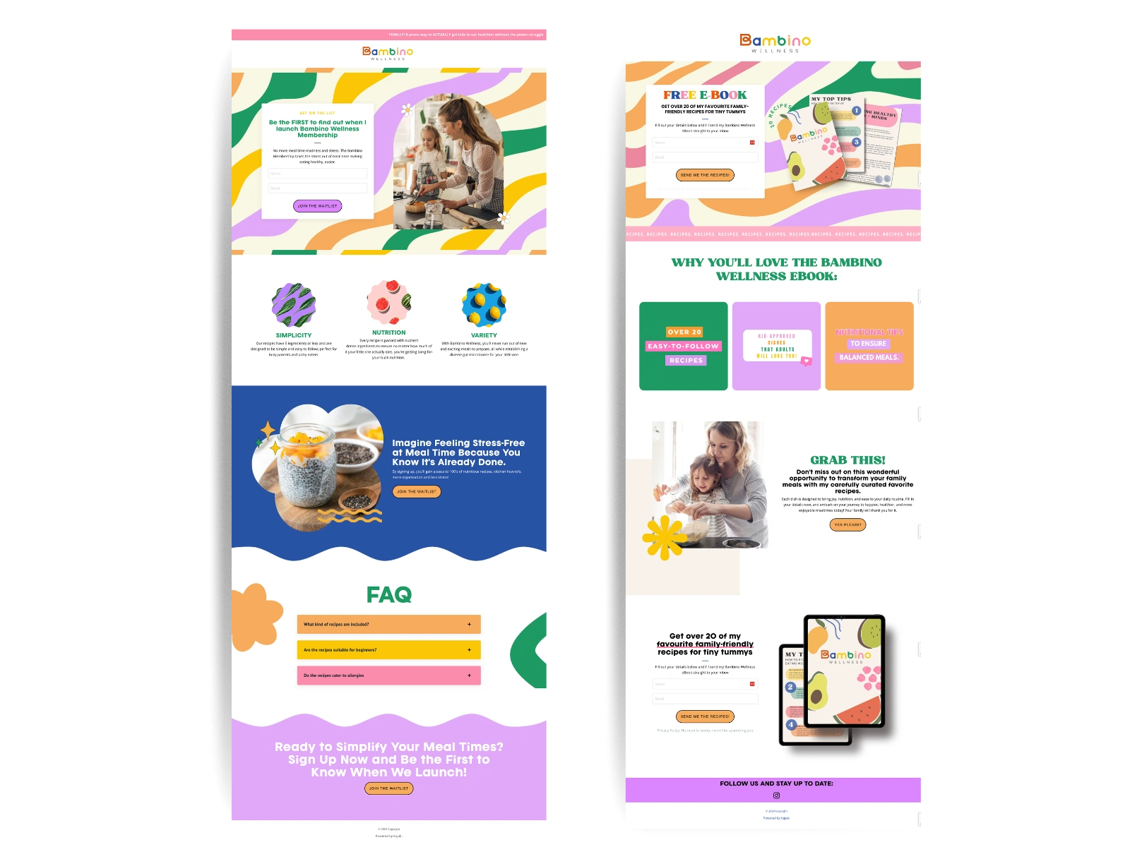 Colorful Kajabi opt-in page designed to showcase a recipe ebook, grab attention, and make signing up easy and inviting.
