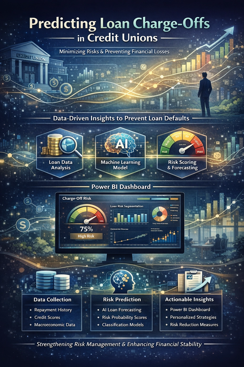 The objective of this project was to develop a predictive analytics solution to forecast loan charge-offs for a credit union. By analyzing historical loan performance, member financial behavior, and external economic indicators, the model enabled early identification of high-risk loans and supported proactive risk mitigation strategies.