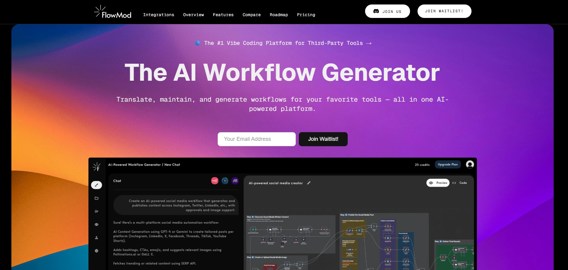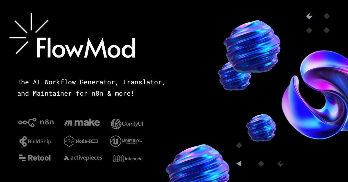 FlowMod.io is an AI-driven automation platform built to speed up and enhance workflow creation across tools like n8n, Make, ComfyUI, and more. The platform can generate automation workflows, translate them across systems, and even maintain them in real time, helping businesses and developers save hours of manual work.
