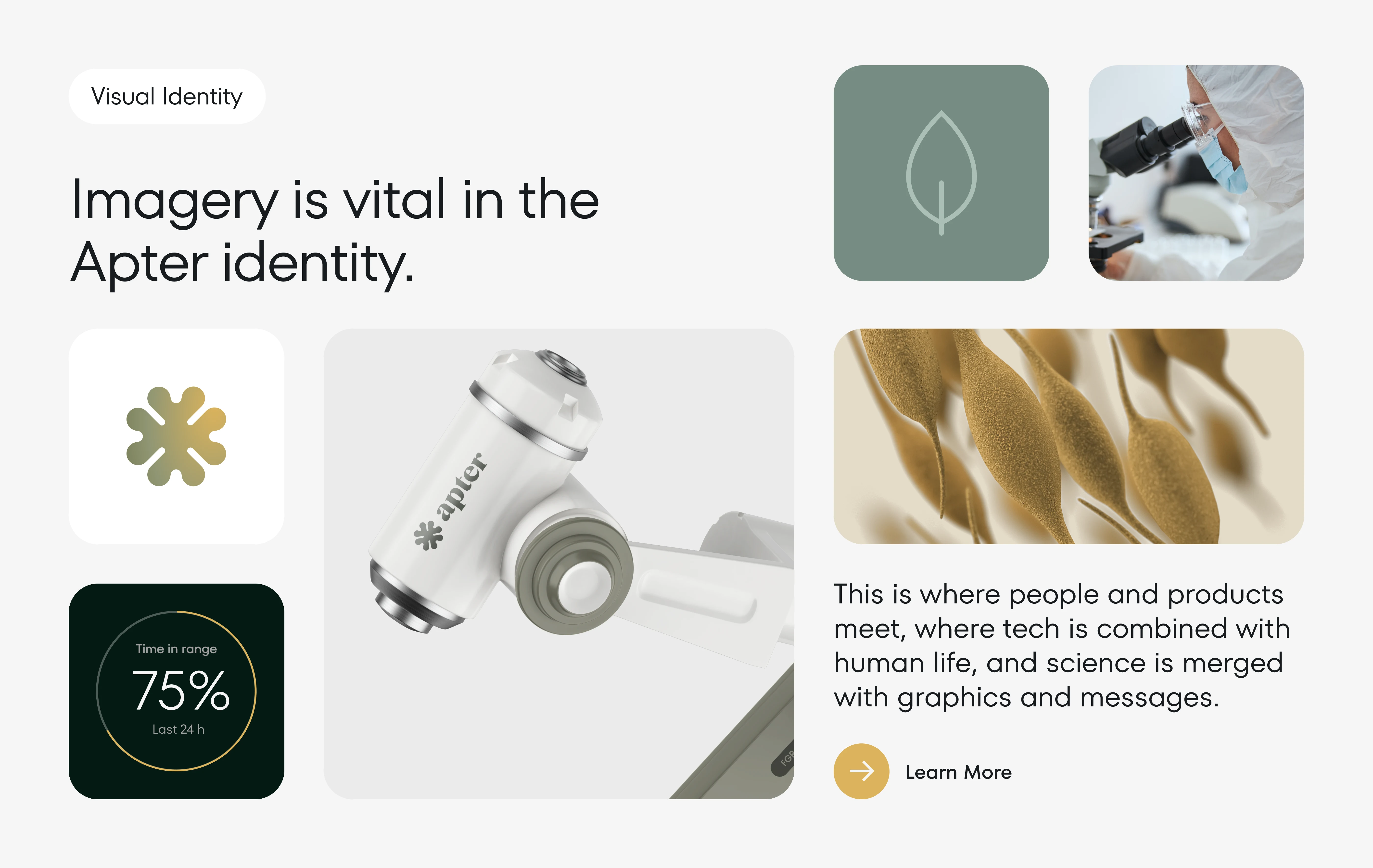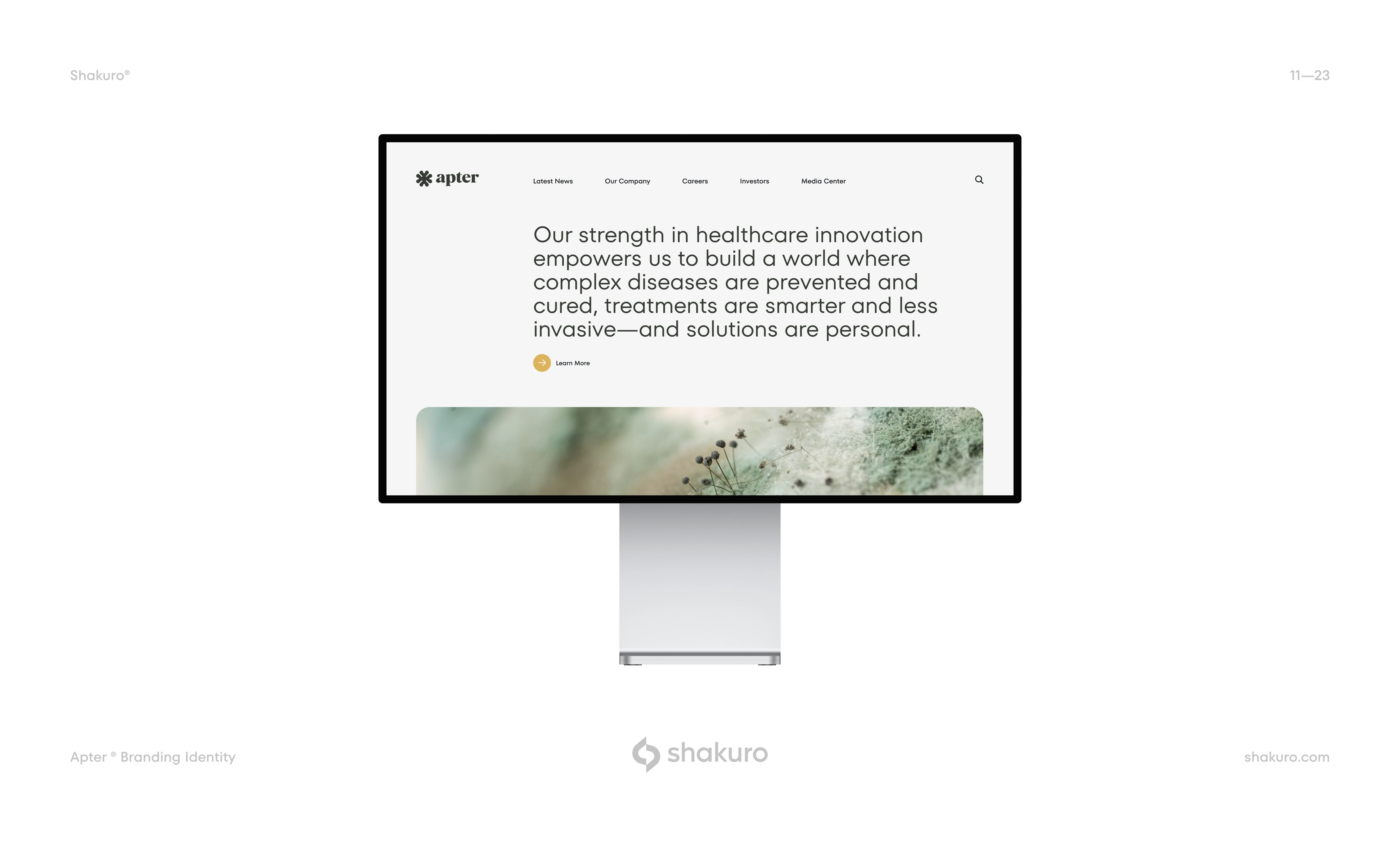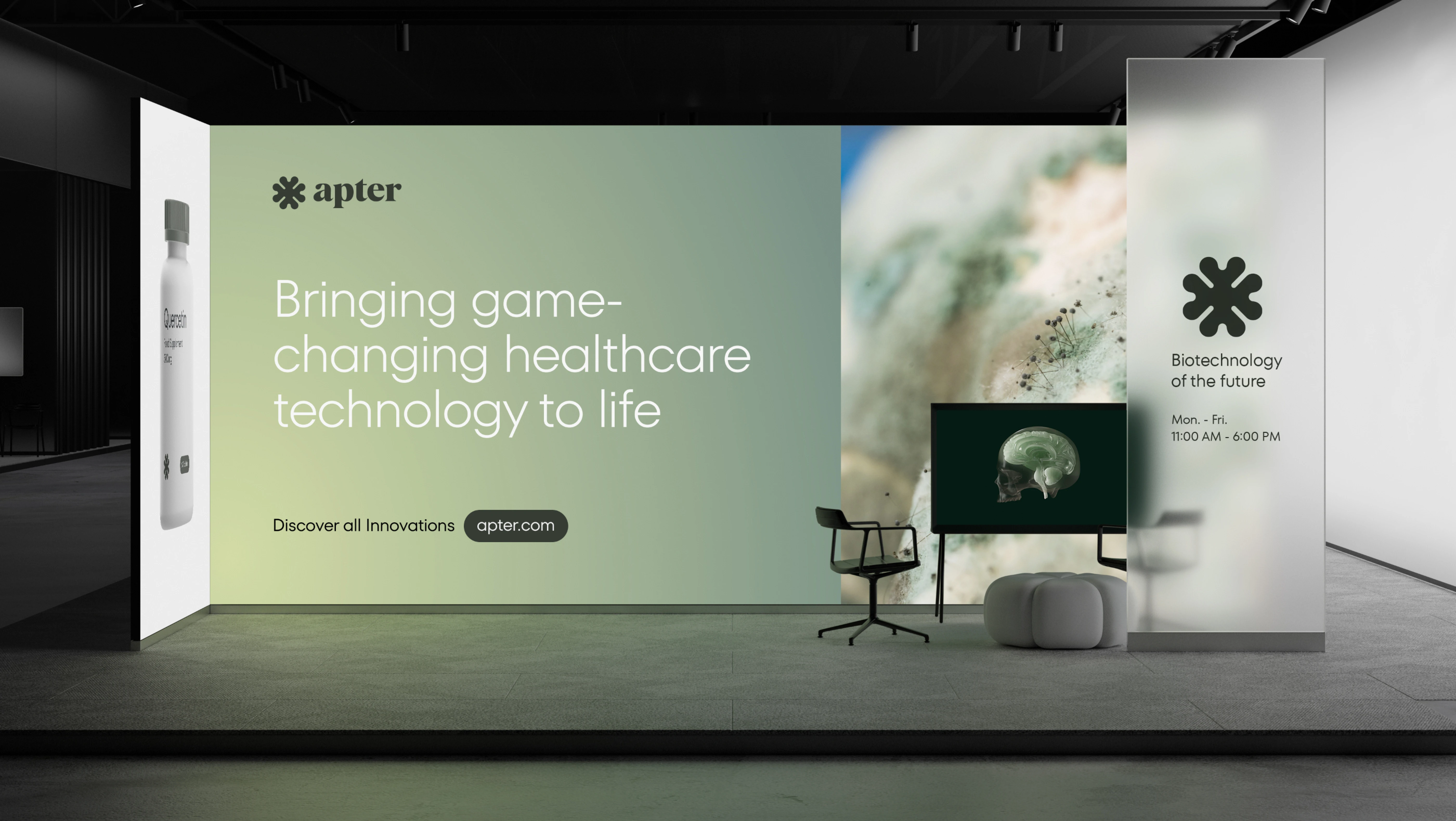 Apter’s website design uses penicillin-inspired biotech visuals and clean minimal style to convey trust, clarity, and professionalism while showing its impact.
