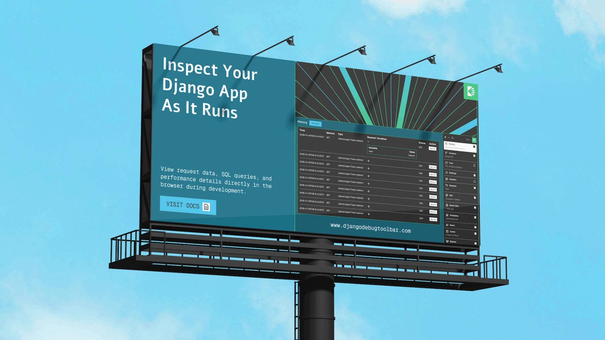 Django Debug Toolbar sits in a different space. It is a practical inspection tool used during development. It surfaces information that developers already understand, but organizes it in a way that makes debugging faster and clearer.