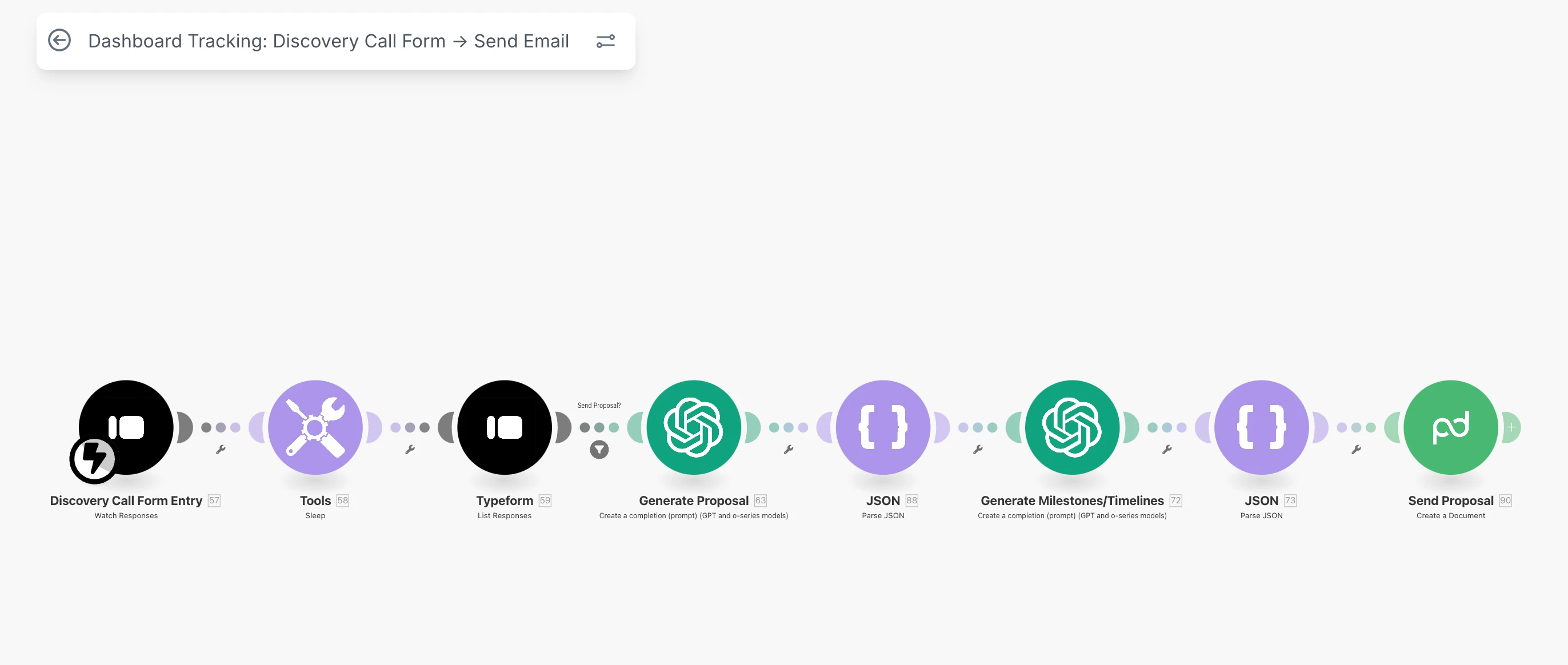 I built an end-to-end automation in Make.com that transforms raw discovery call responses into a professional, client-ready proposal in minutes.