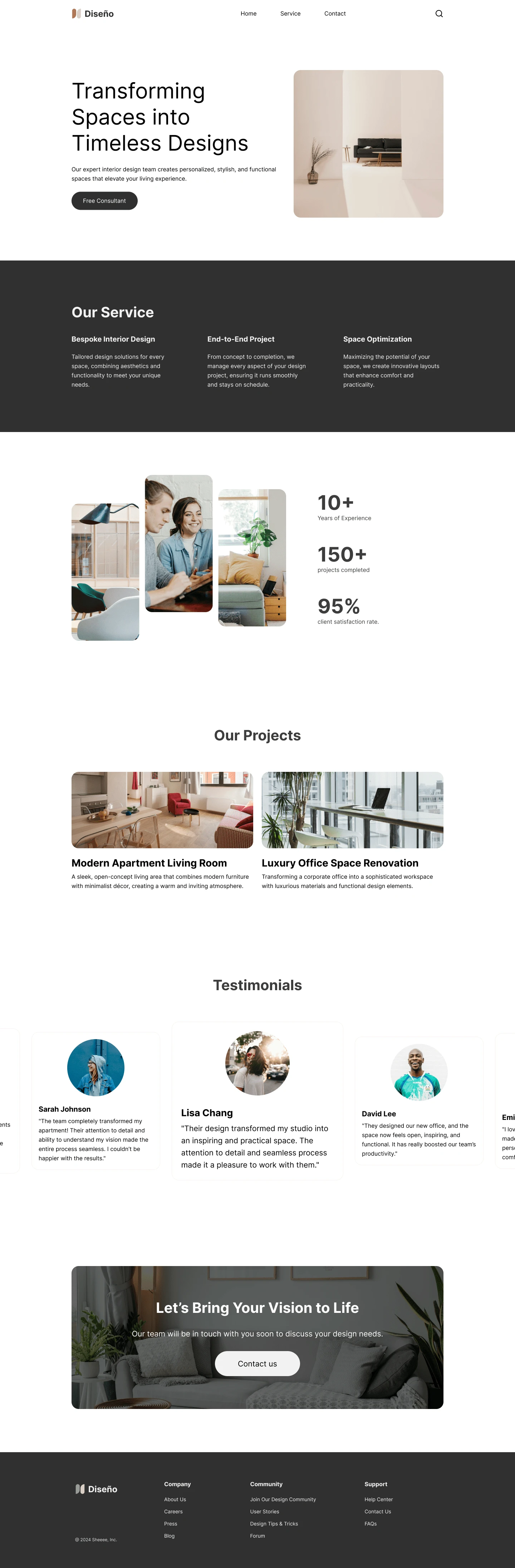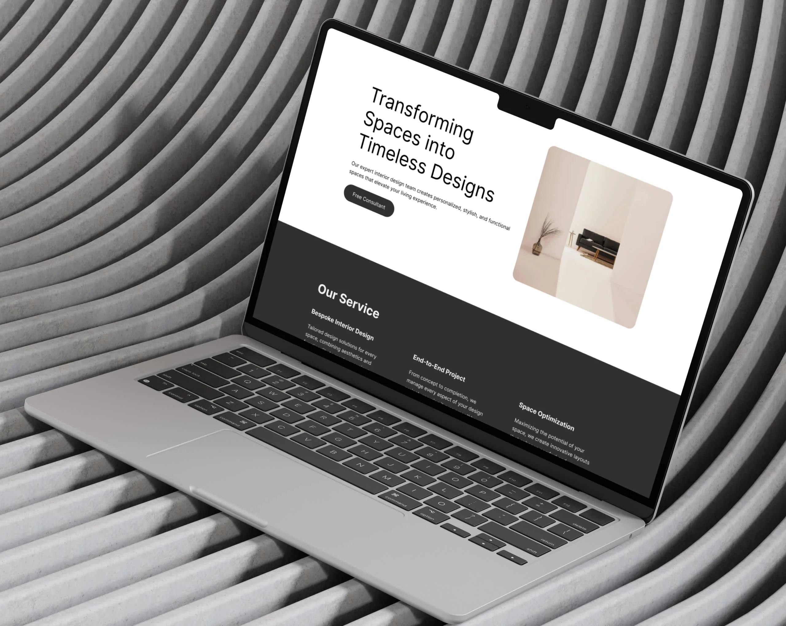 Crafted a landing page for an interior design studio, emphasizing a modern aesthetic design and clear navigation to showcase their services