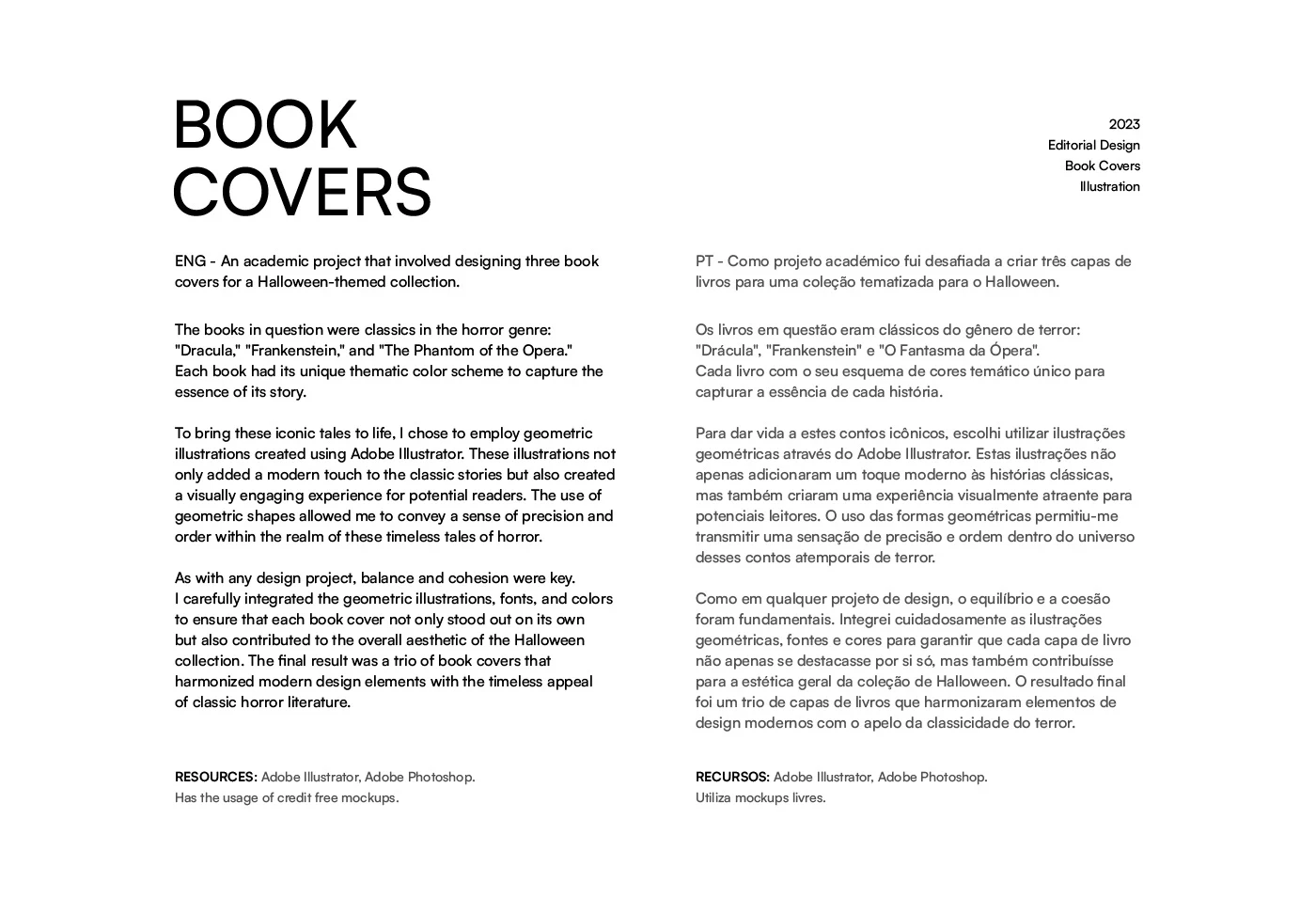 An academic project that involved designing three book covers for a Halloween-themed collection.The books in question were classics in the horror genre.