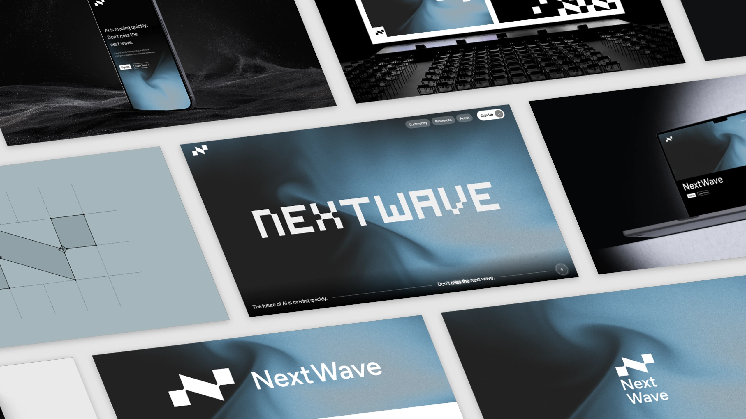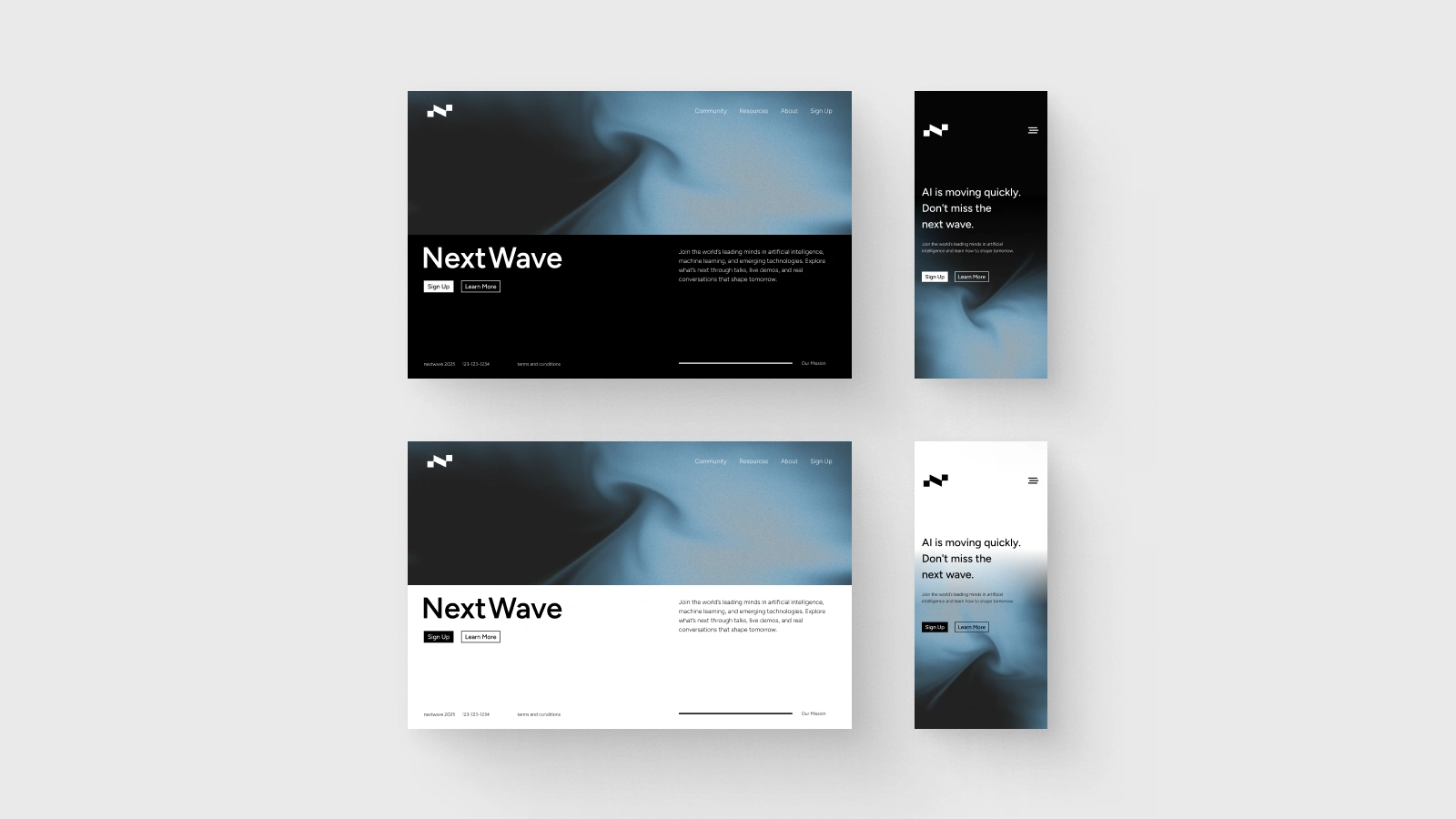 I designed a high-impact landing page with both light and dark mode options to accommodate user preferences. The page features a dynamic modular grid system that showcases NextWave's key value propositions—research, events, and community. Key decisions included implementing bold typography hierarchy to guide users through the content, interactive elements that demonstrate the platform's innovative nature, and a clear call-to-action structure that drives conversions. The design balances technical credibility with visual appeal, standing out from generic competitor sites.
