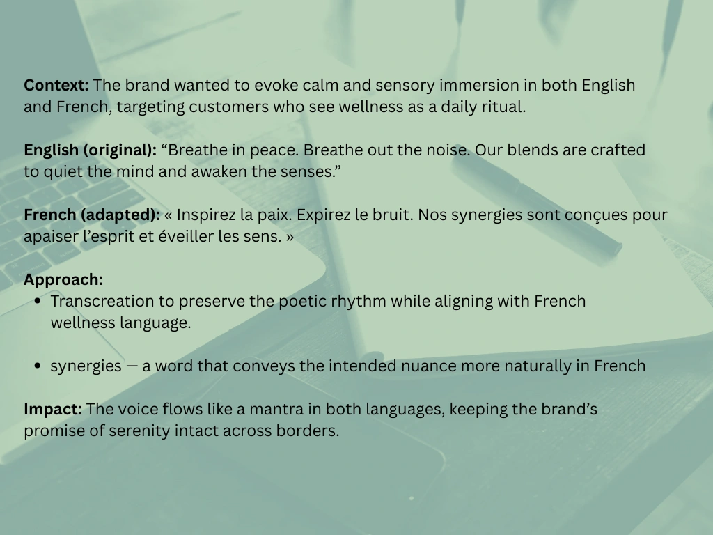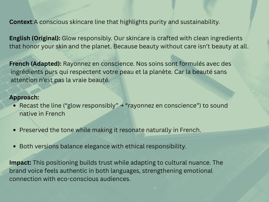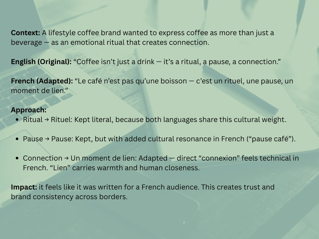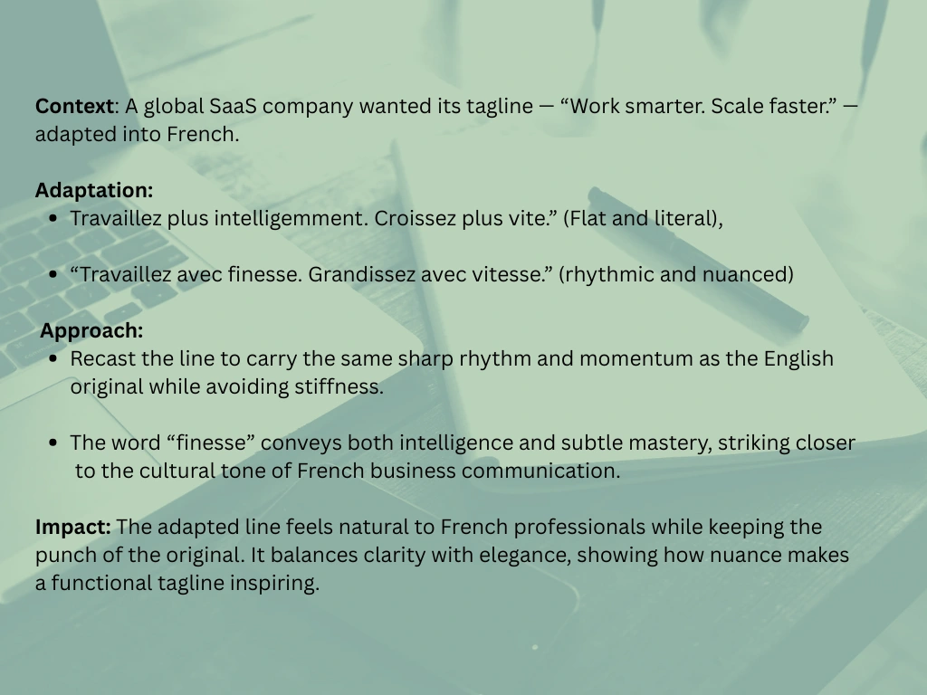 Showing how small tweaks and thoughtful usage of expressions can make a message sound native to the target audience without losing the original context