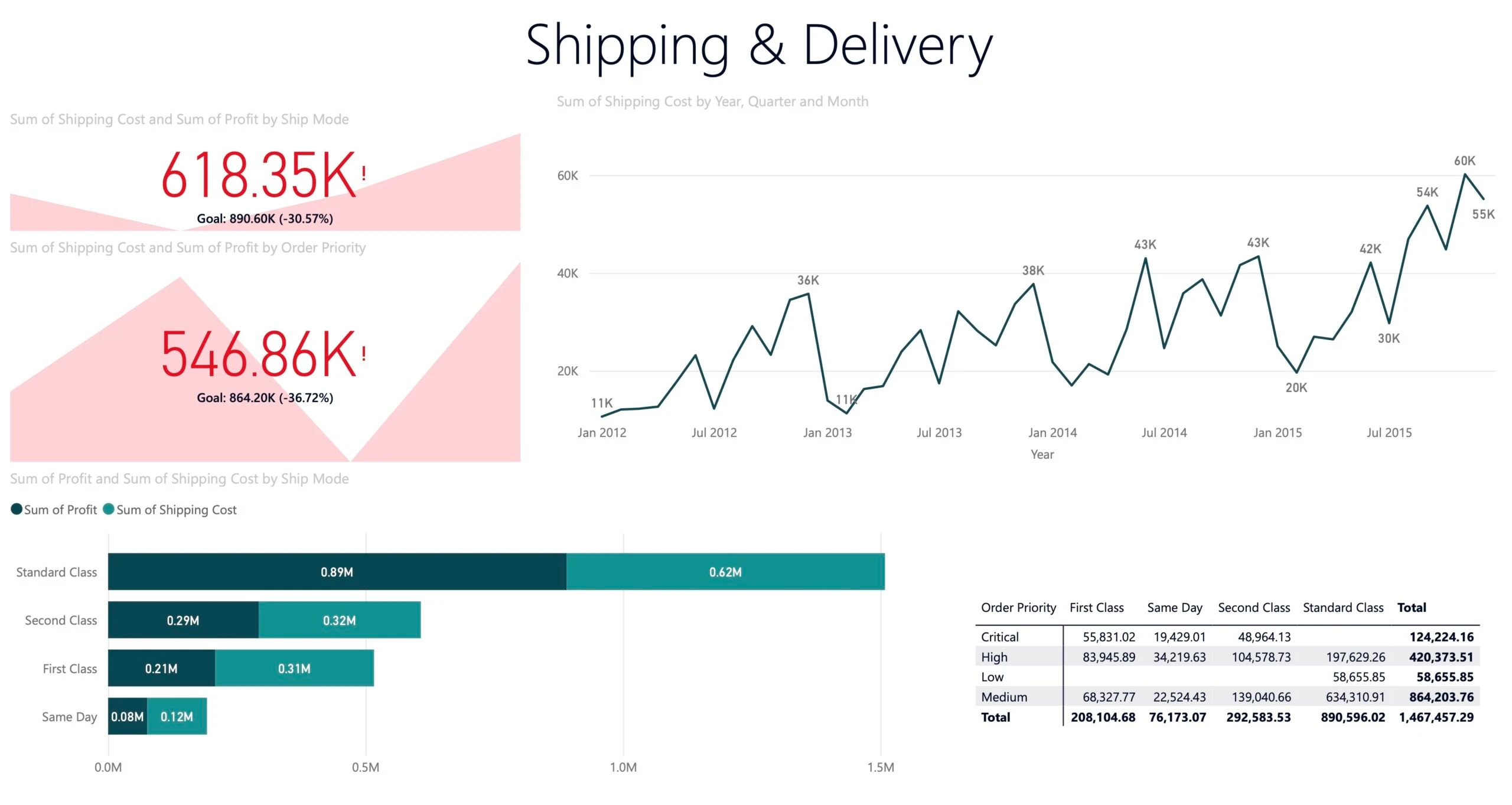This dashboard explores the impact of shipping cost on profit margins, broken down by shipping mode and order priority.