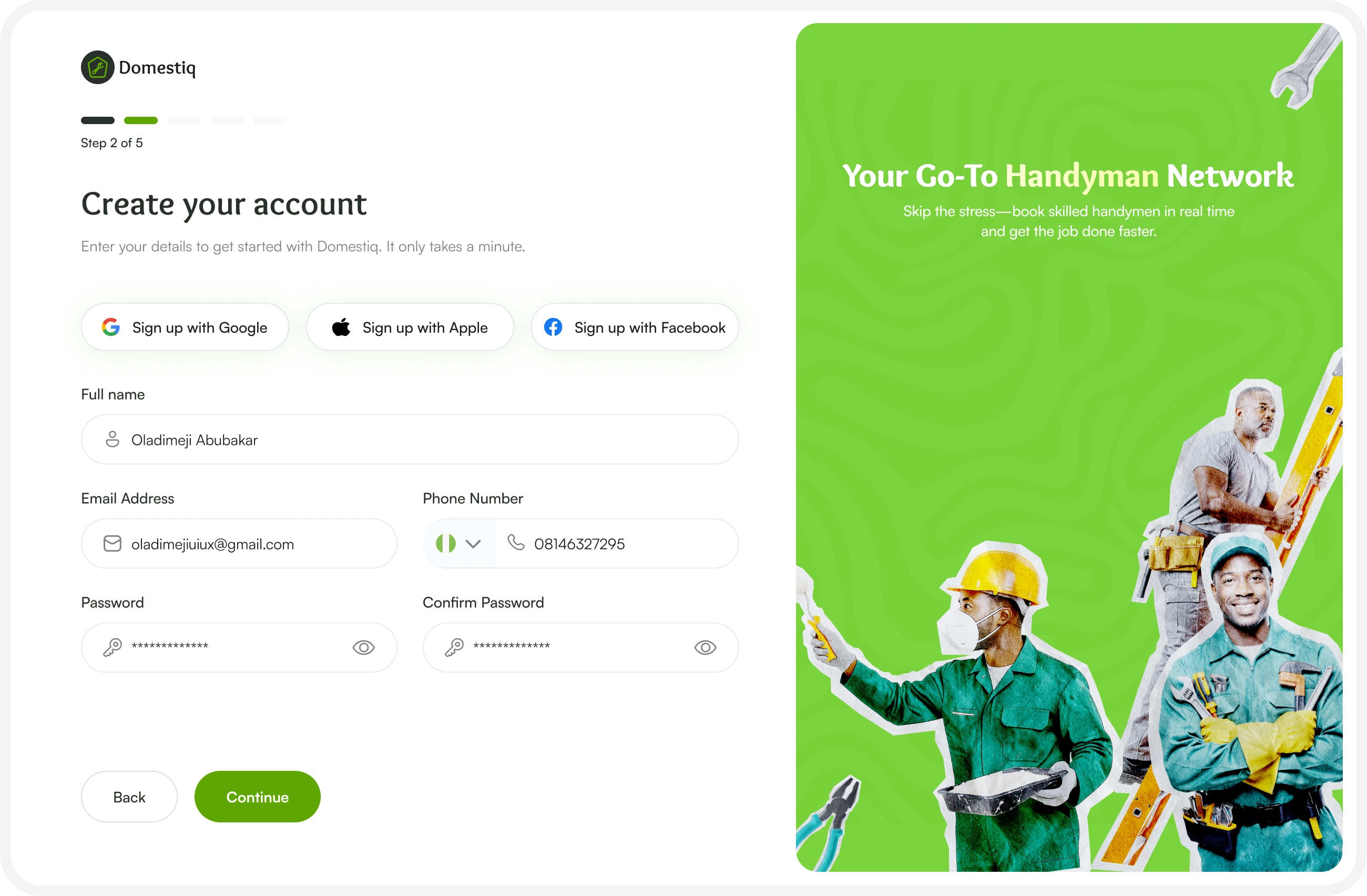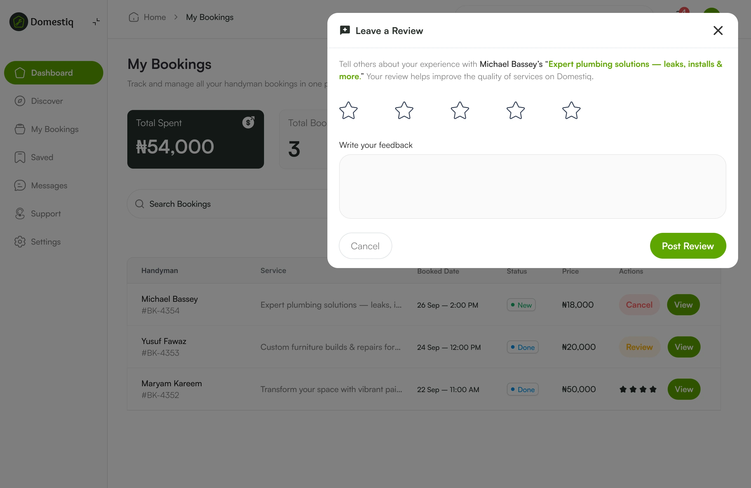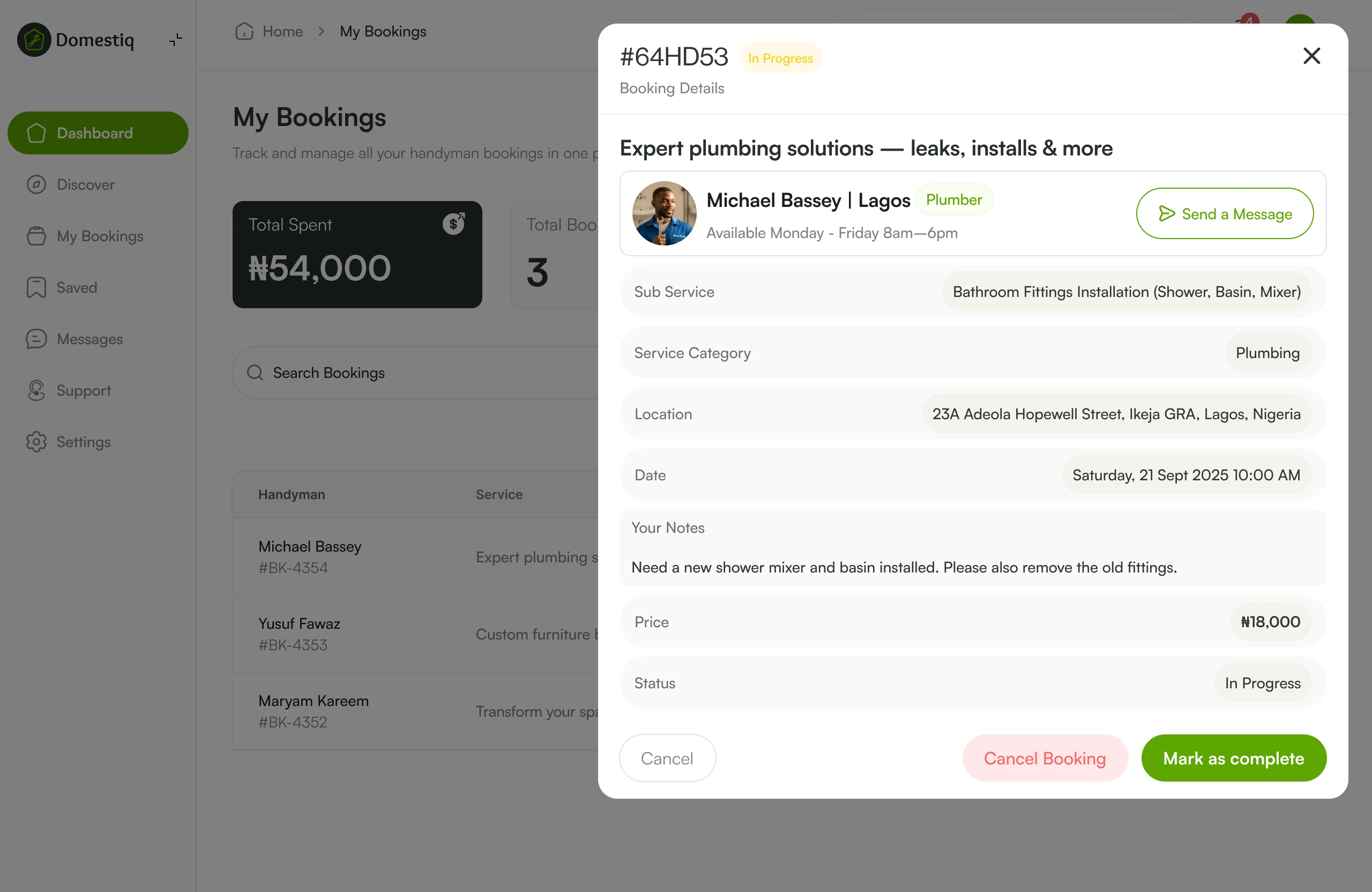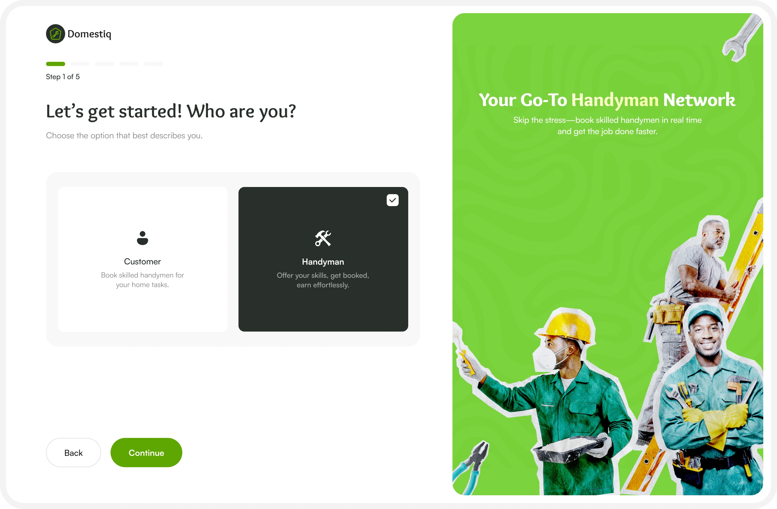 Designed a platform for Domestiq to connect homeowners with trusted handymen, focusing on trust, clarity, and efficiency.