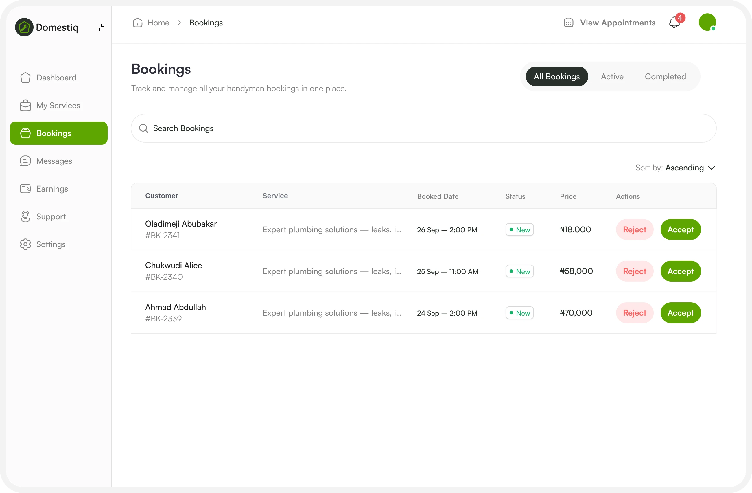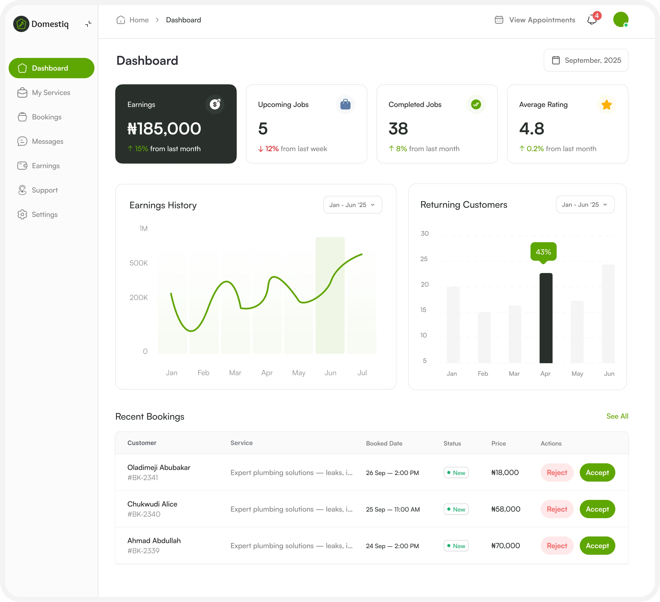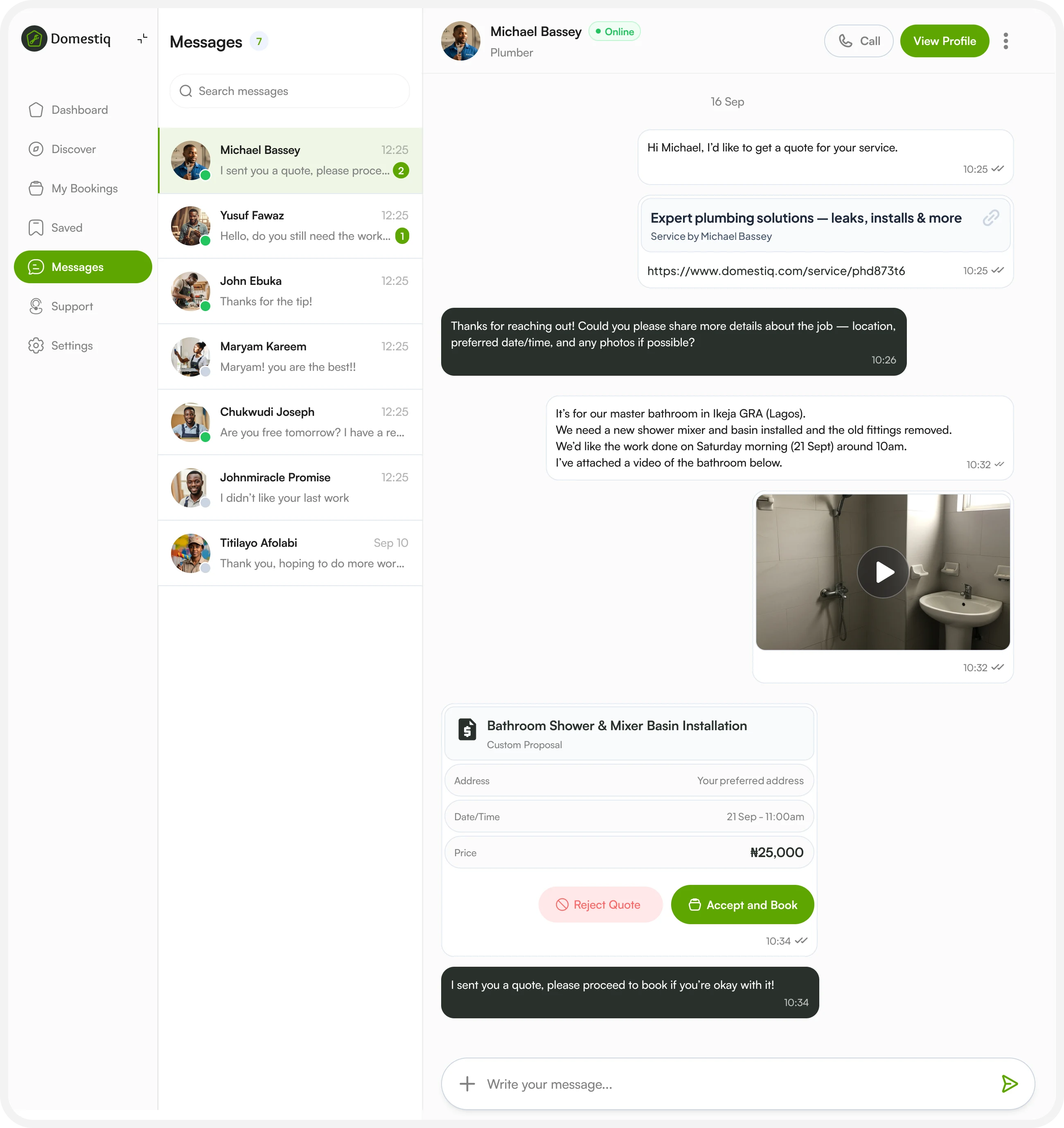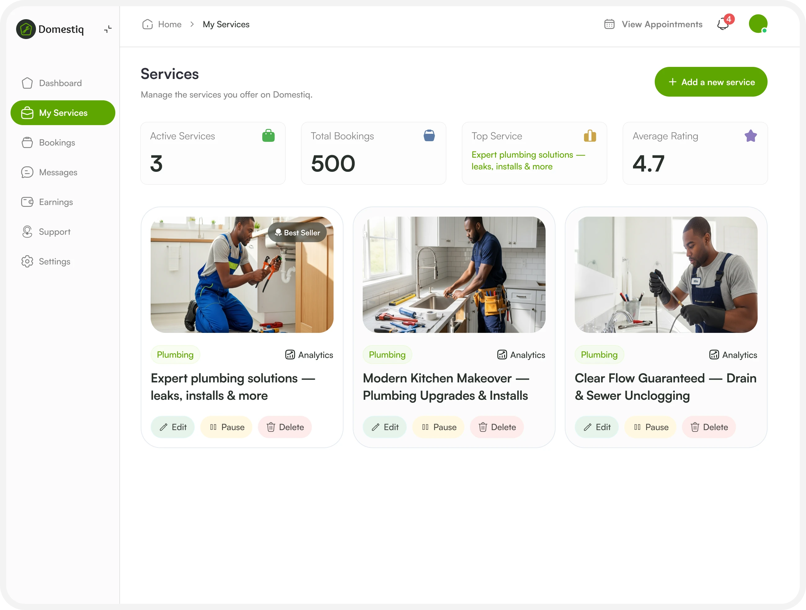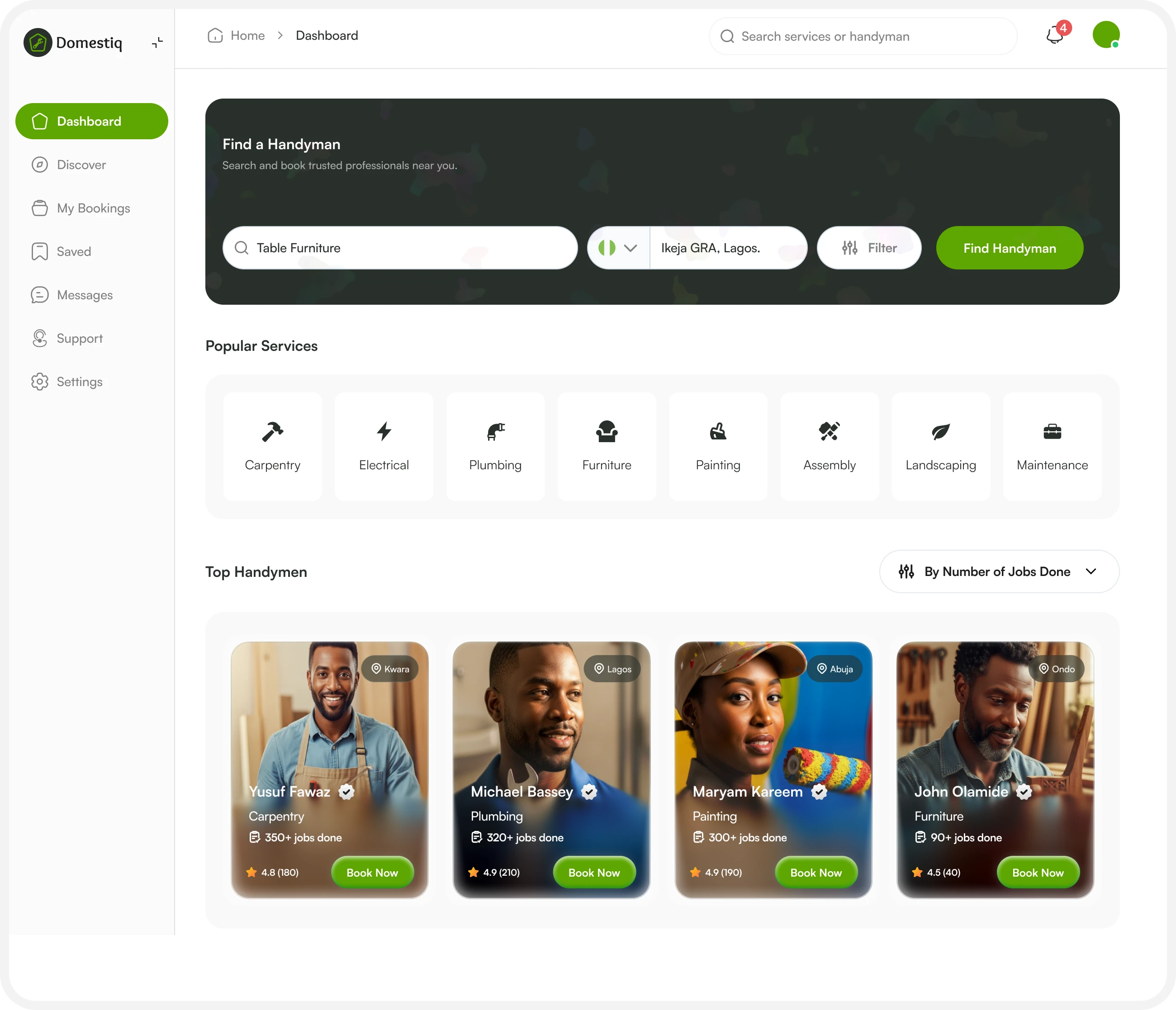 Domestiq is a handyman marketplace that connects homeowners with trusted service providers for everyday needs — from plumbing and carpentry to painting and landscaping.